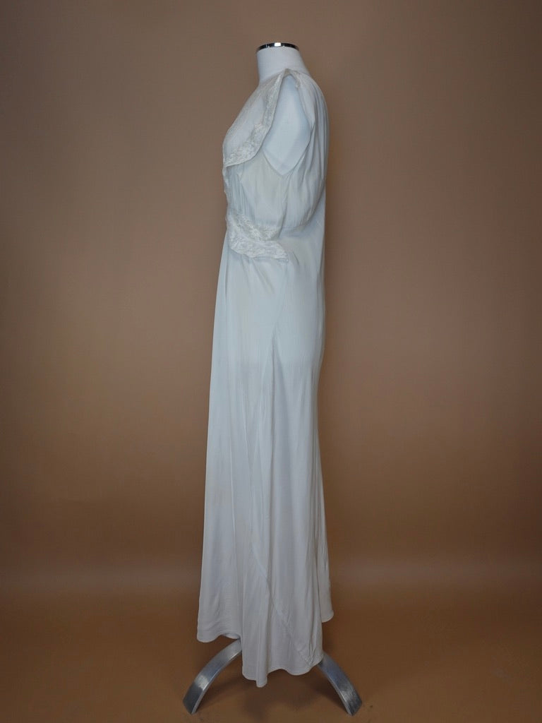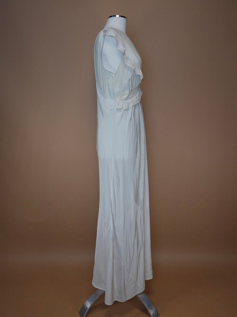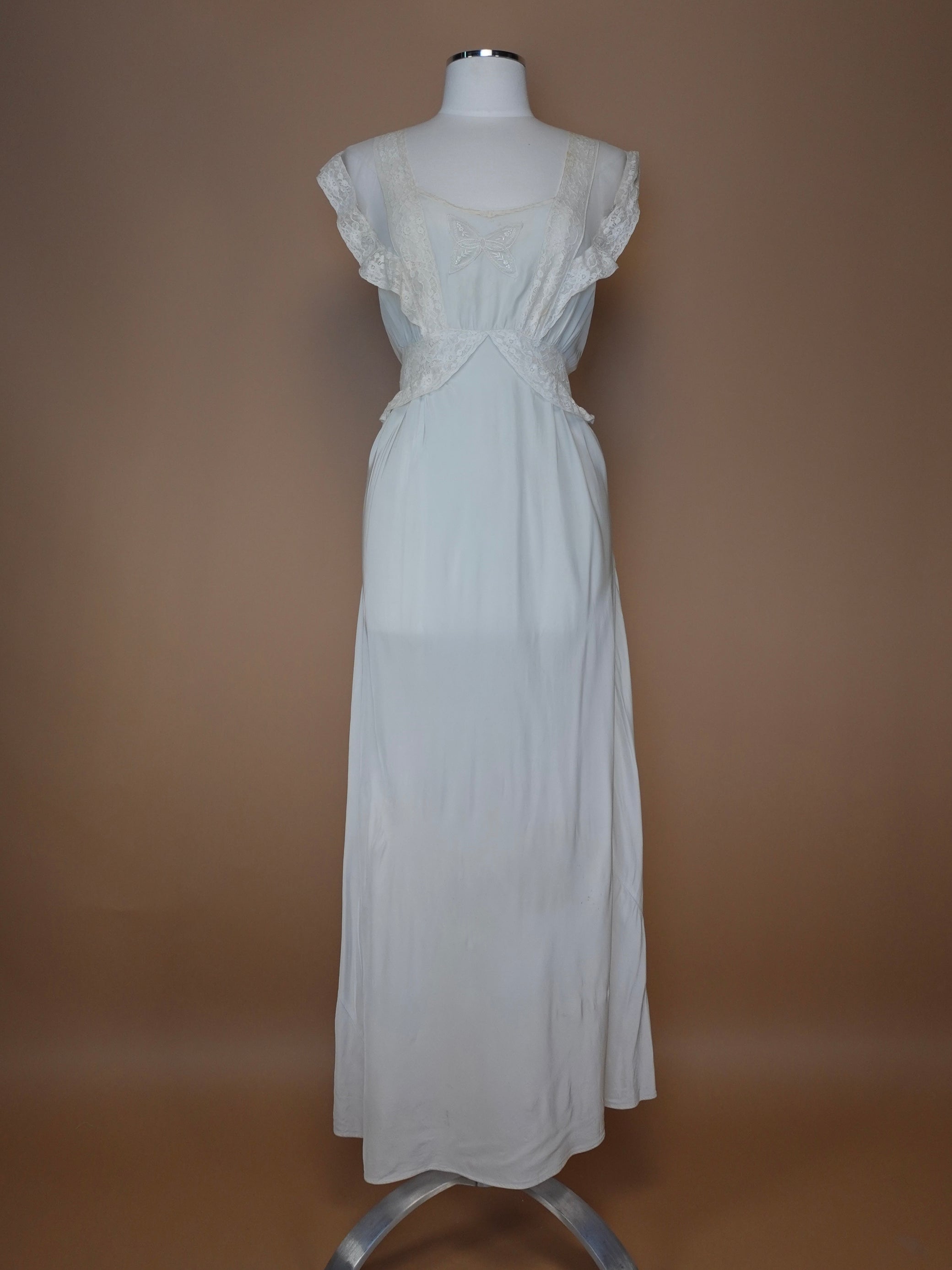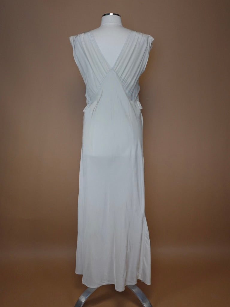 1930S - MINT SILK SATIN NIGHTGOWN WITH UNIQUE FINISHED SCALLOPED HEM