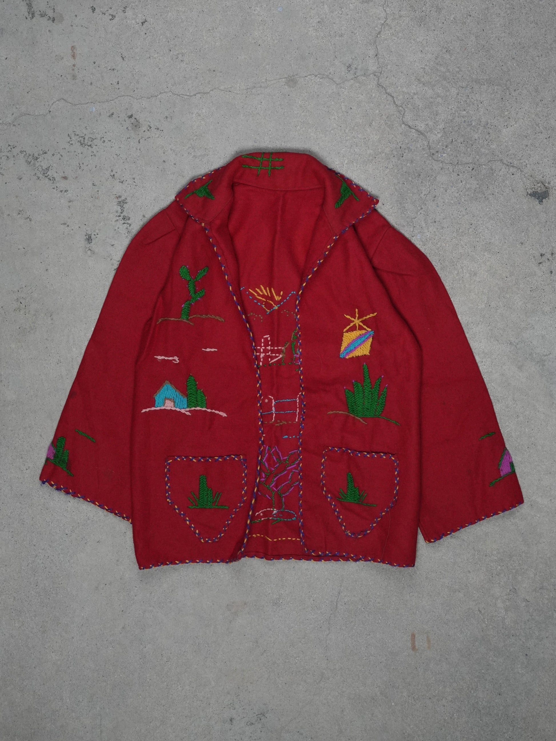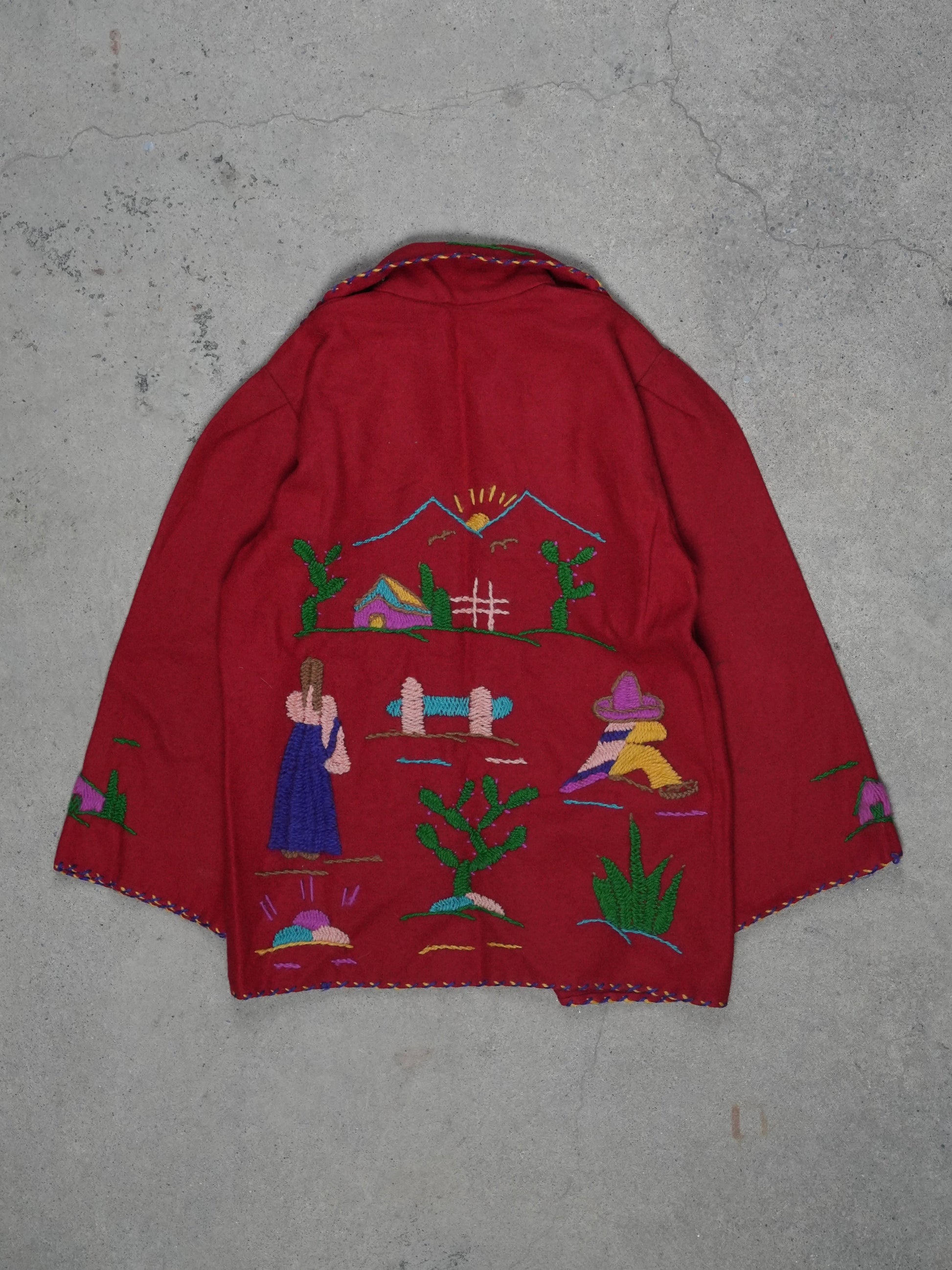 1940S/1950S - MEXICAN SOUVINER HAND EMBROIDERED WOOL JACKET