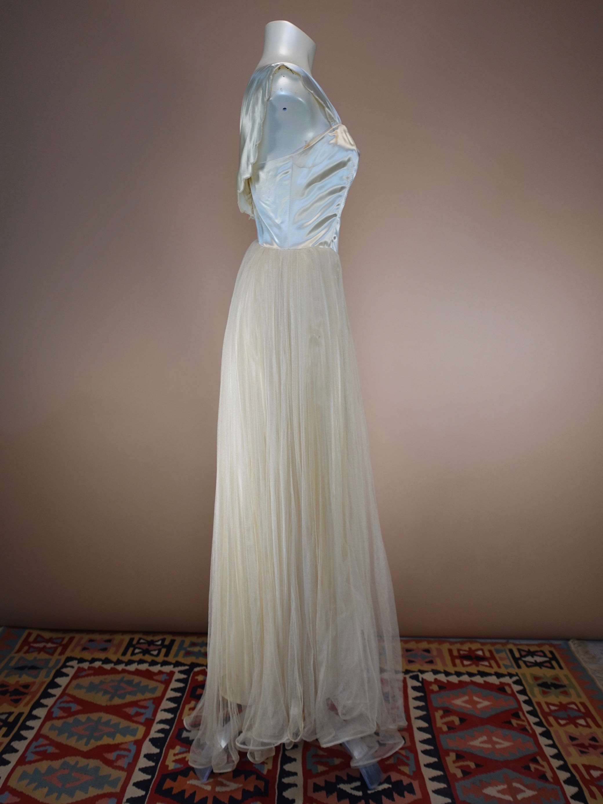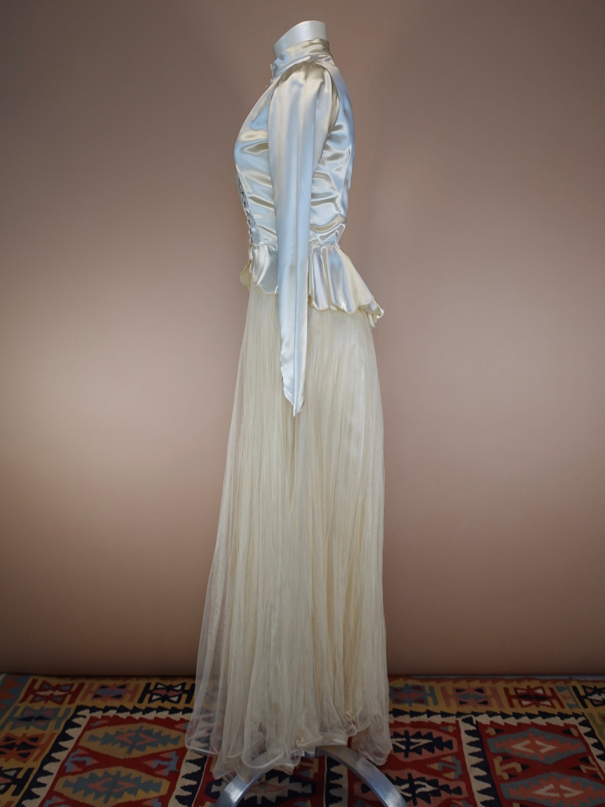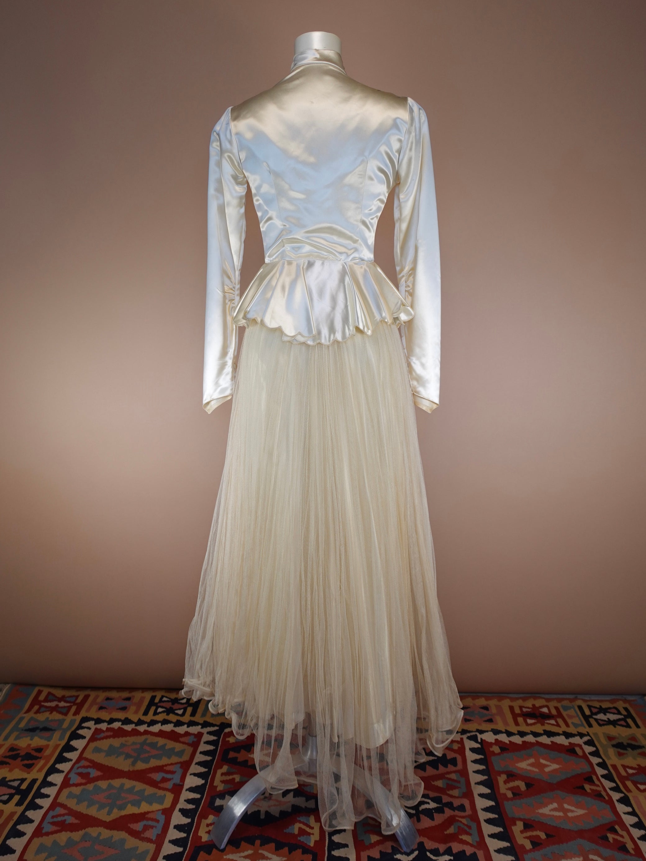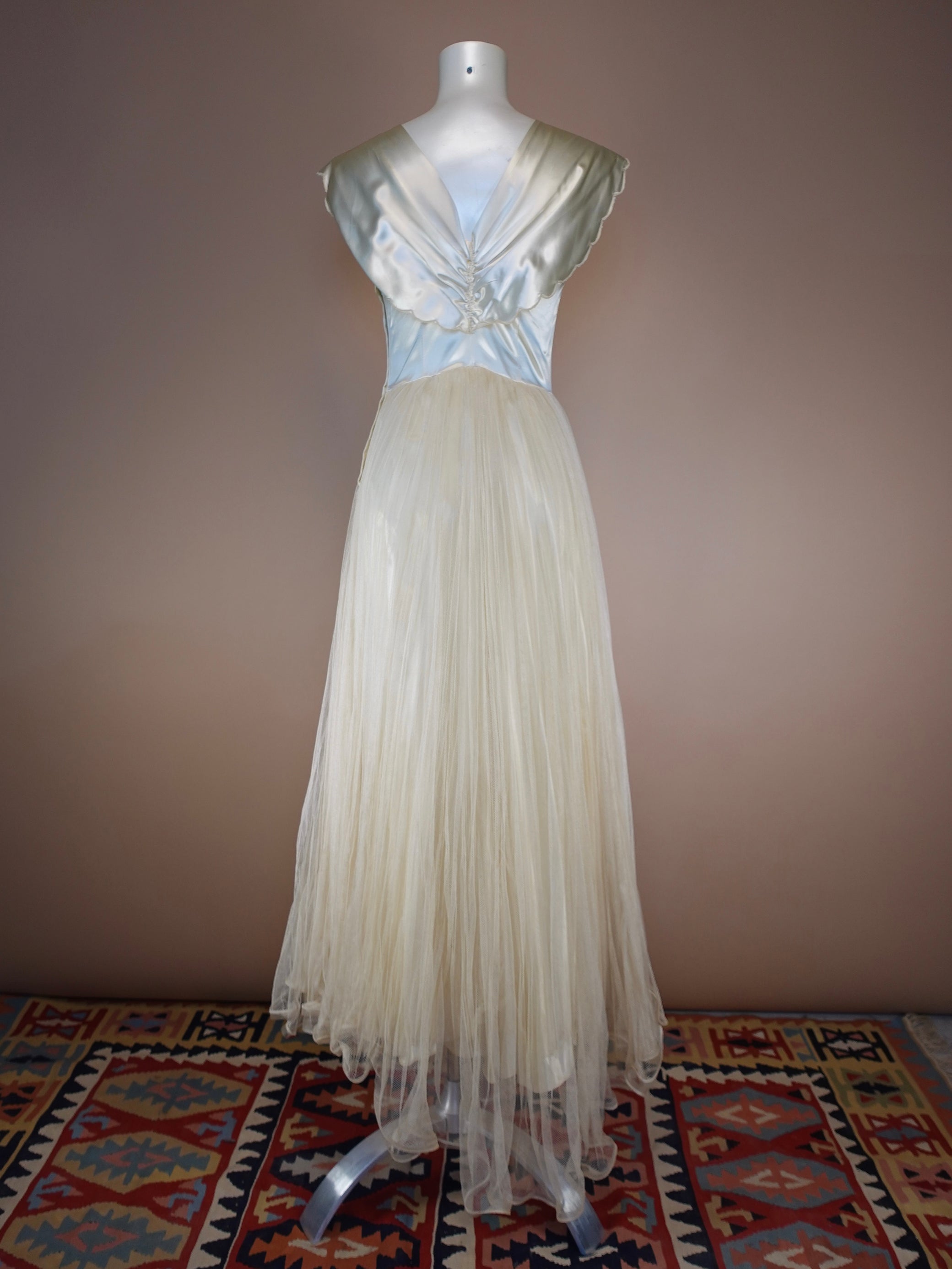 1940S - 2 PIECE IVORY LIQUID SATIN SILK CRINKLE WEDDING GOWN