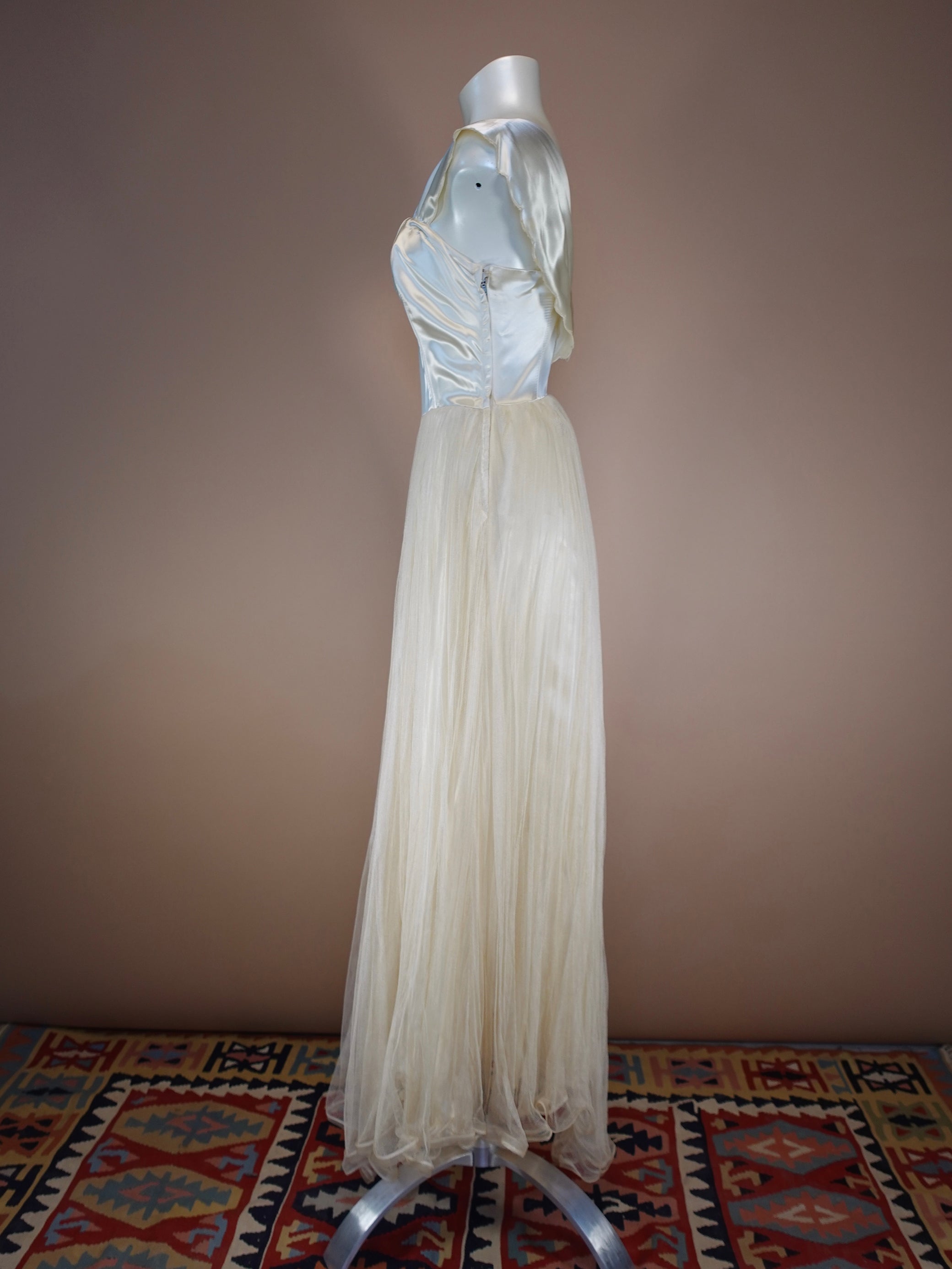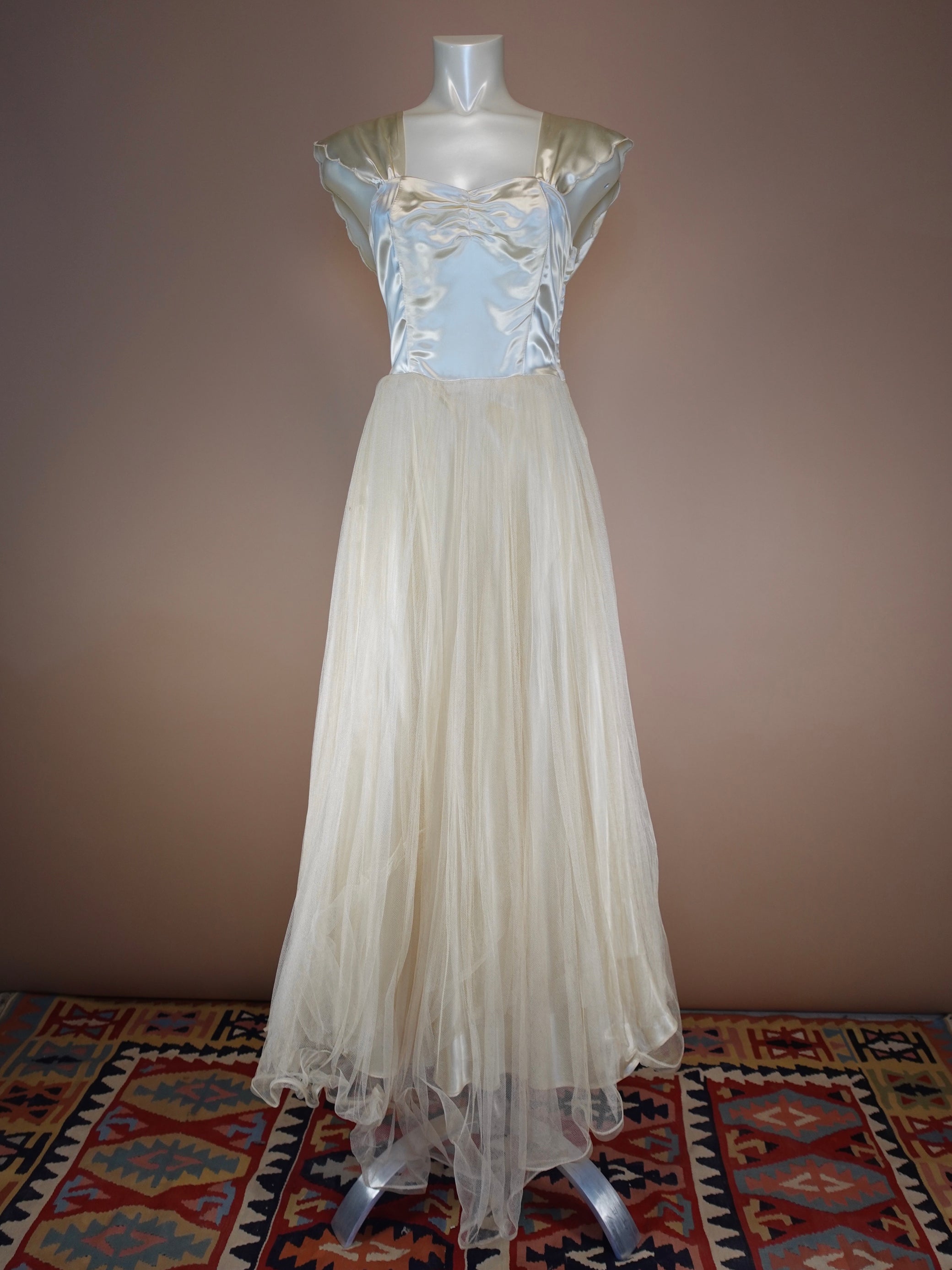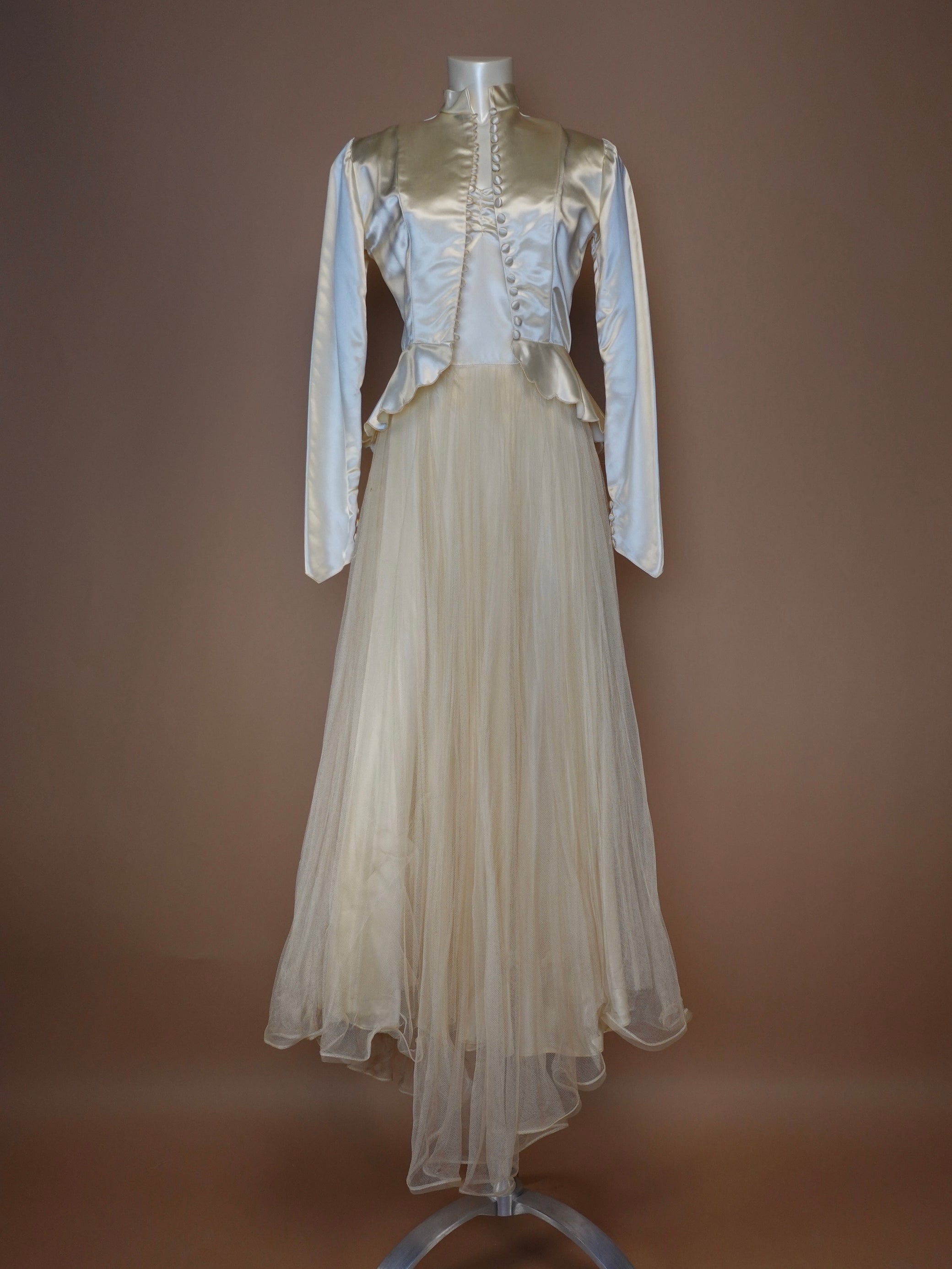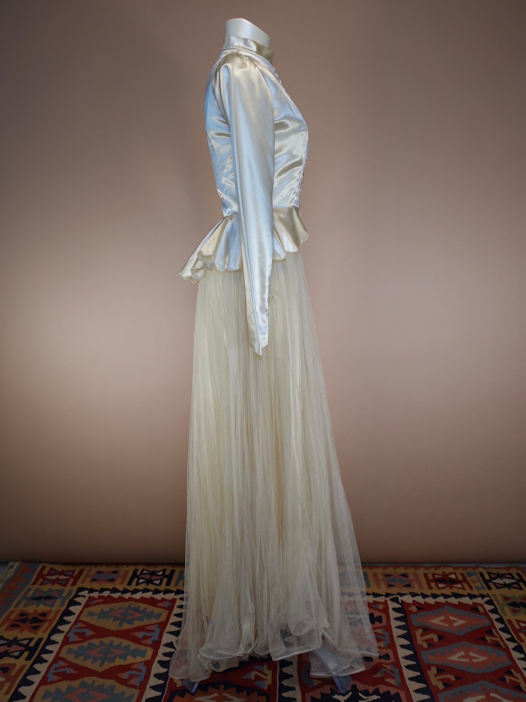 1940S - 2 PIECE IVORY LIQUID SATIN SILK CRINKLE WEDDING GOWN