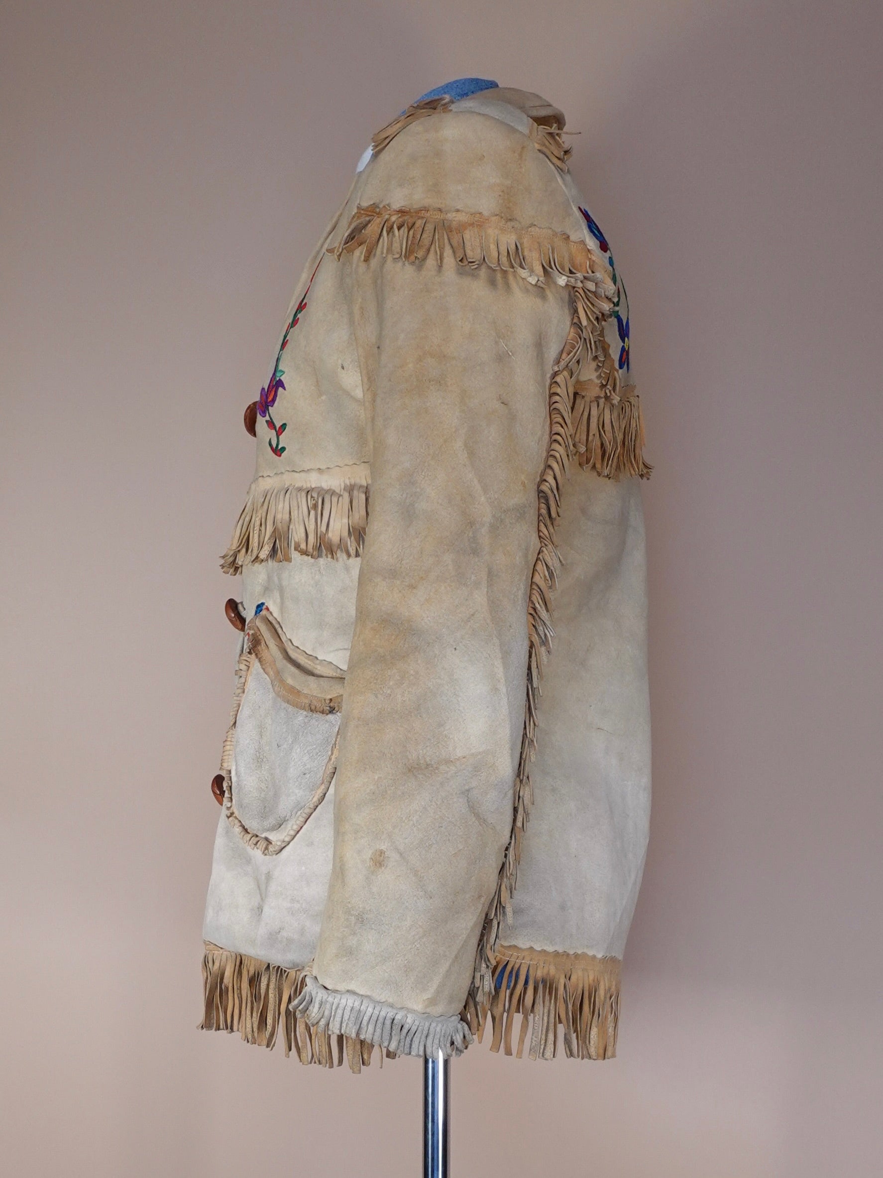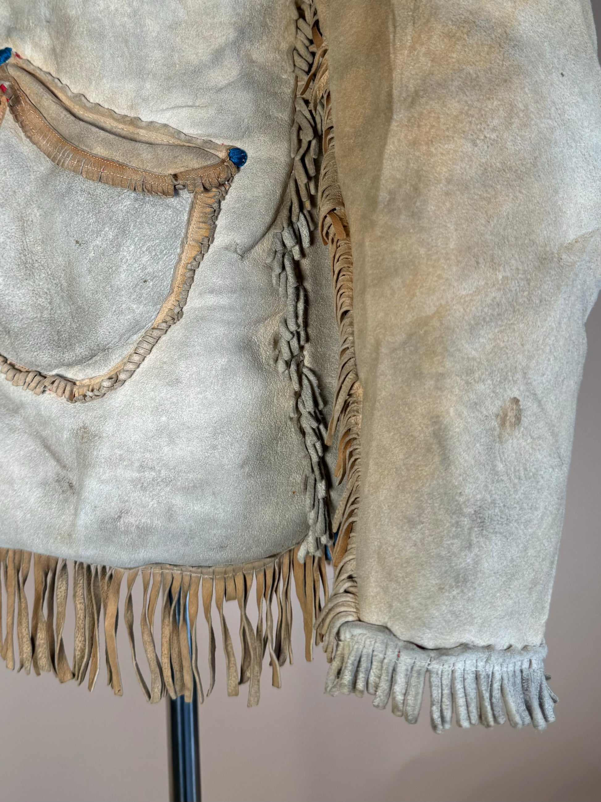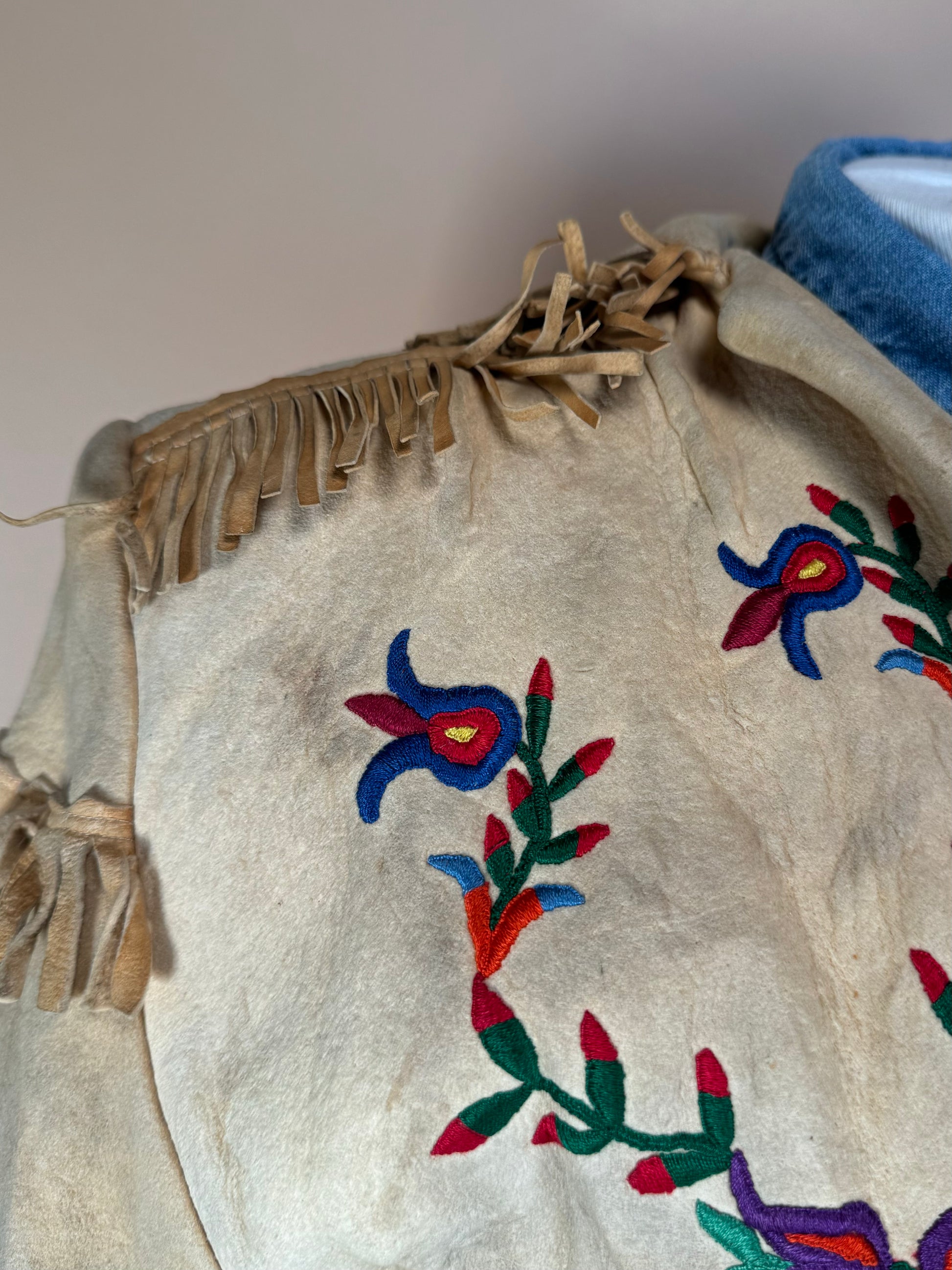 Vintage 1940s - Cree First Nations Hand Made Hand Embroidered Buckskin Fringe Jacket
