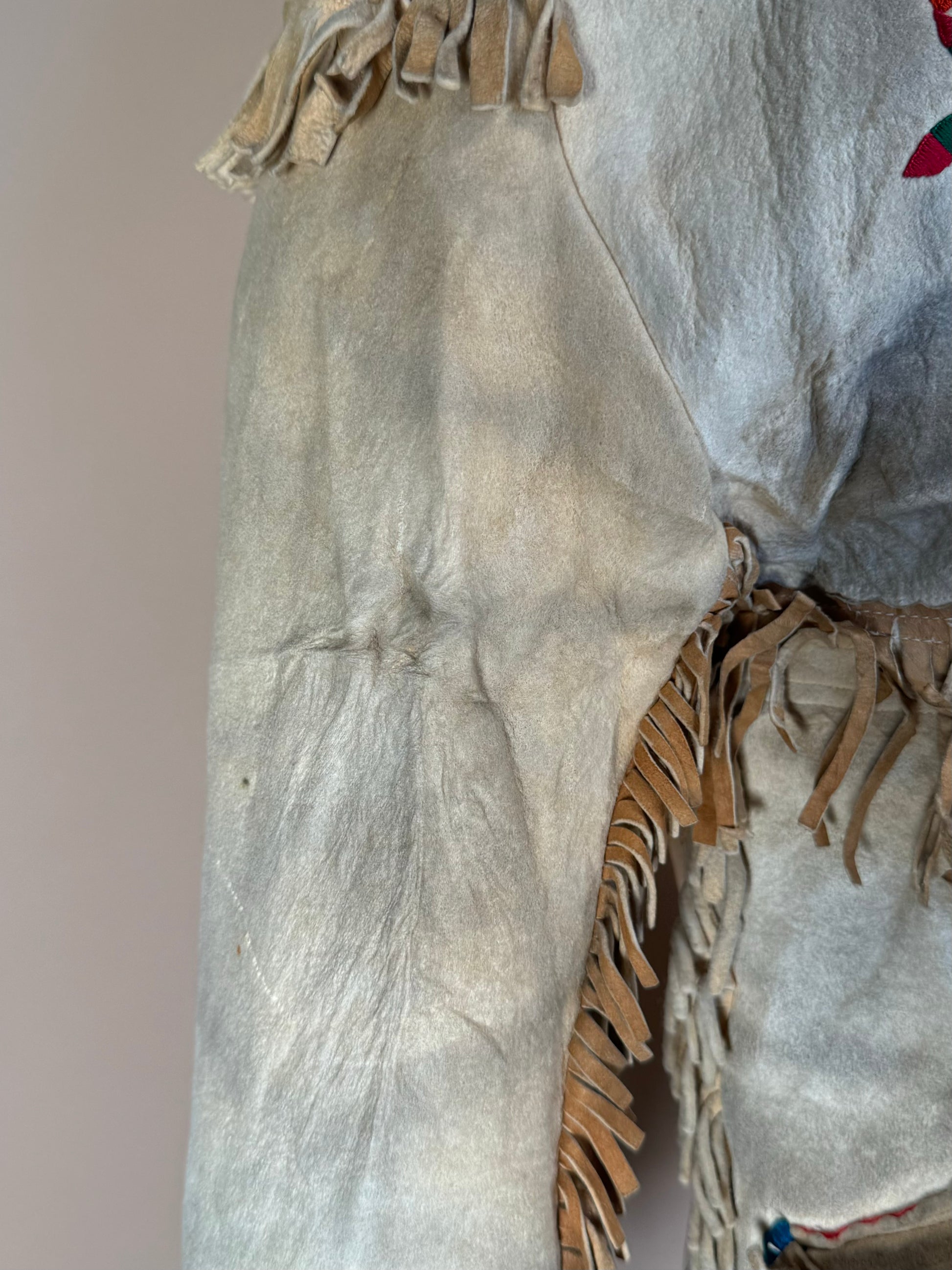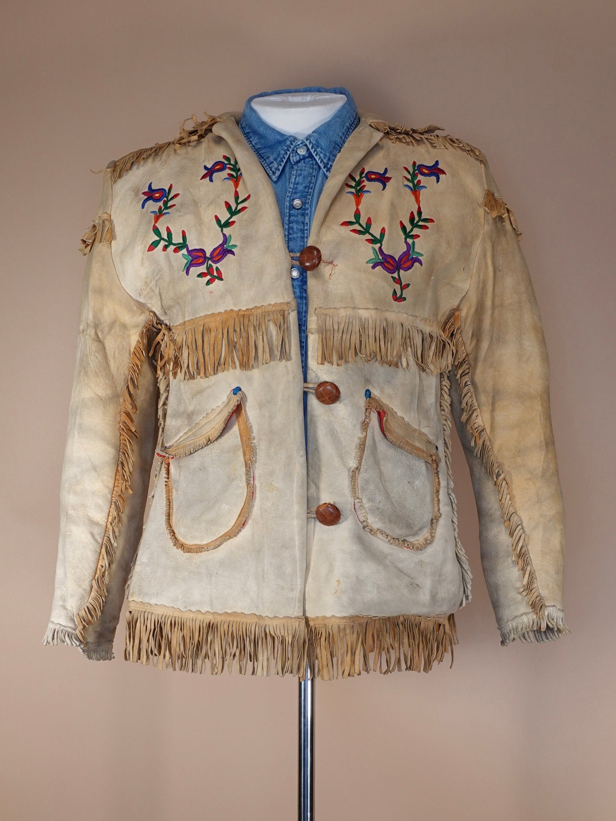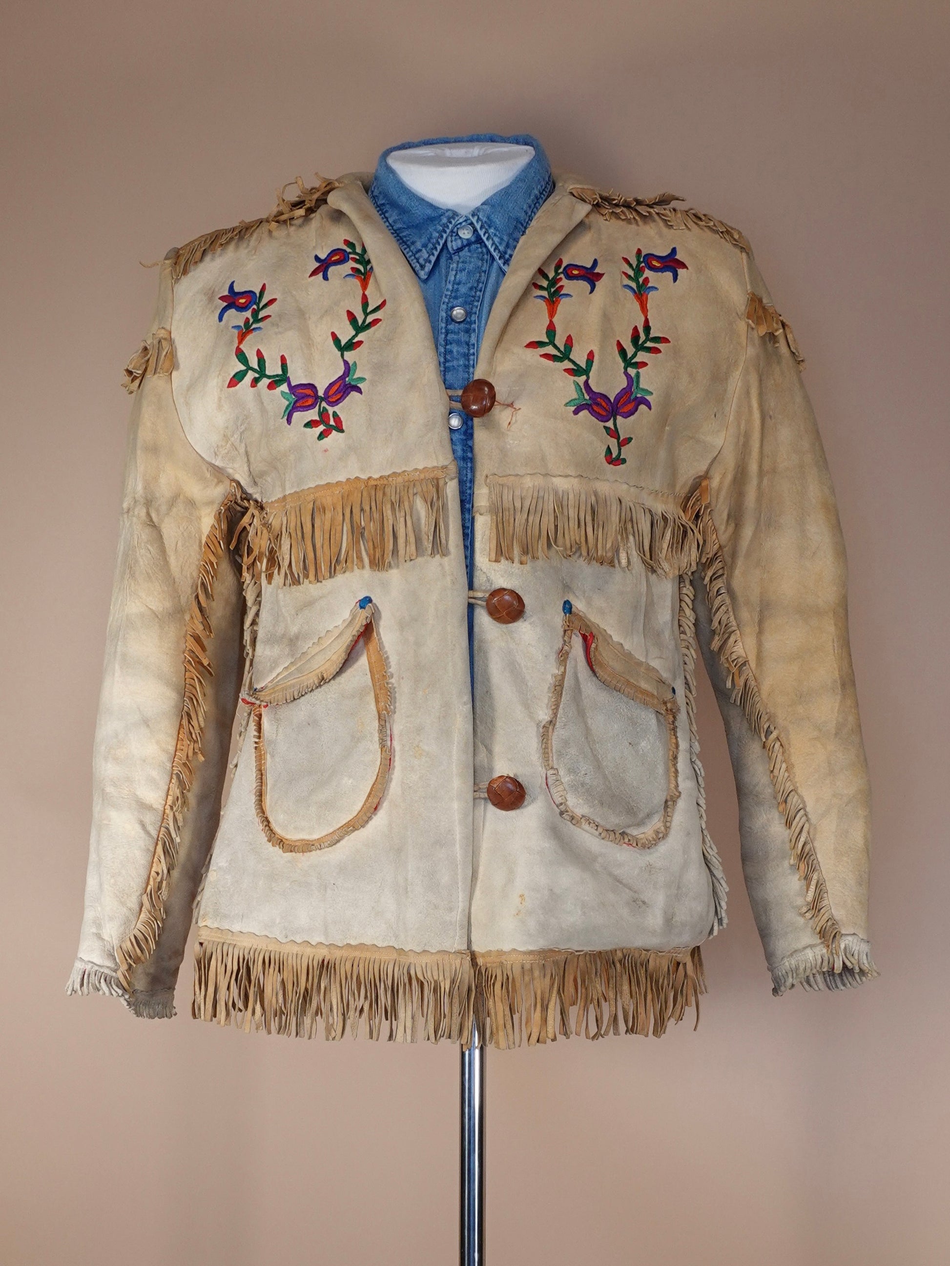 Vintage 1940s - Cree First Nations Hand Made Hand Embroidered Buckskin Fringe Jacket