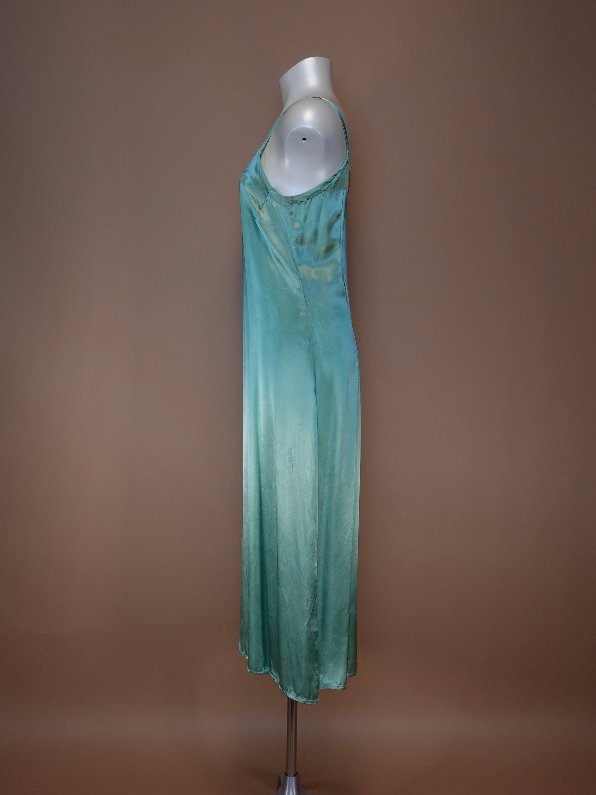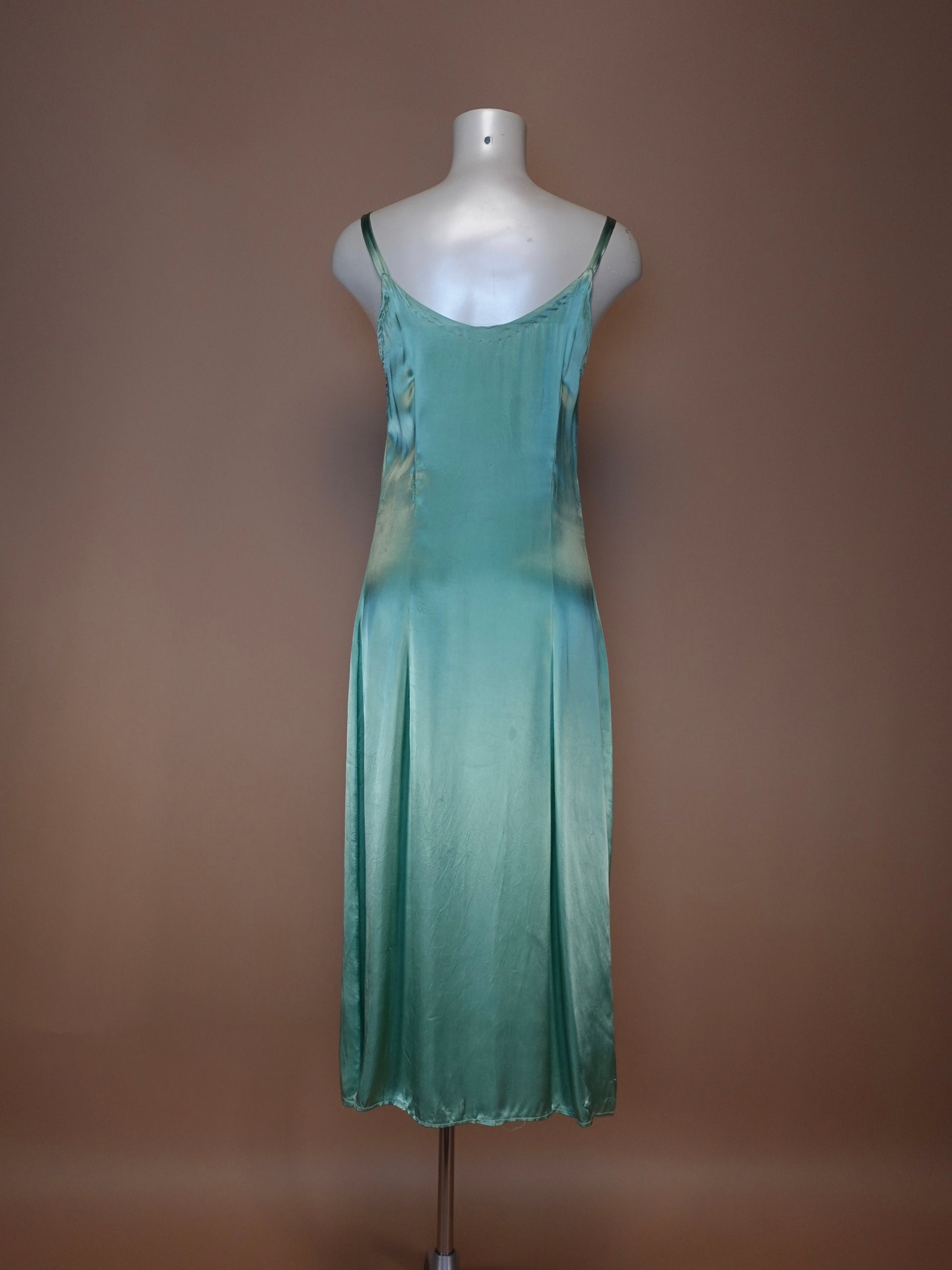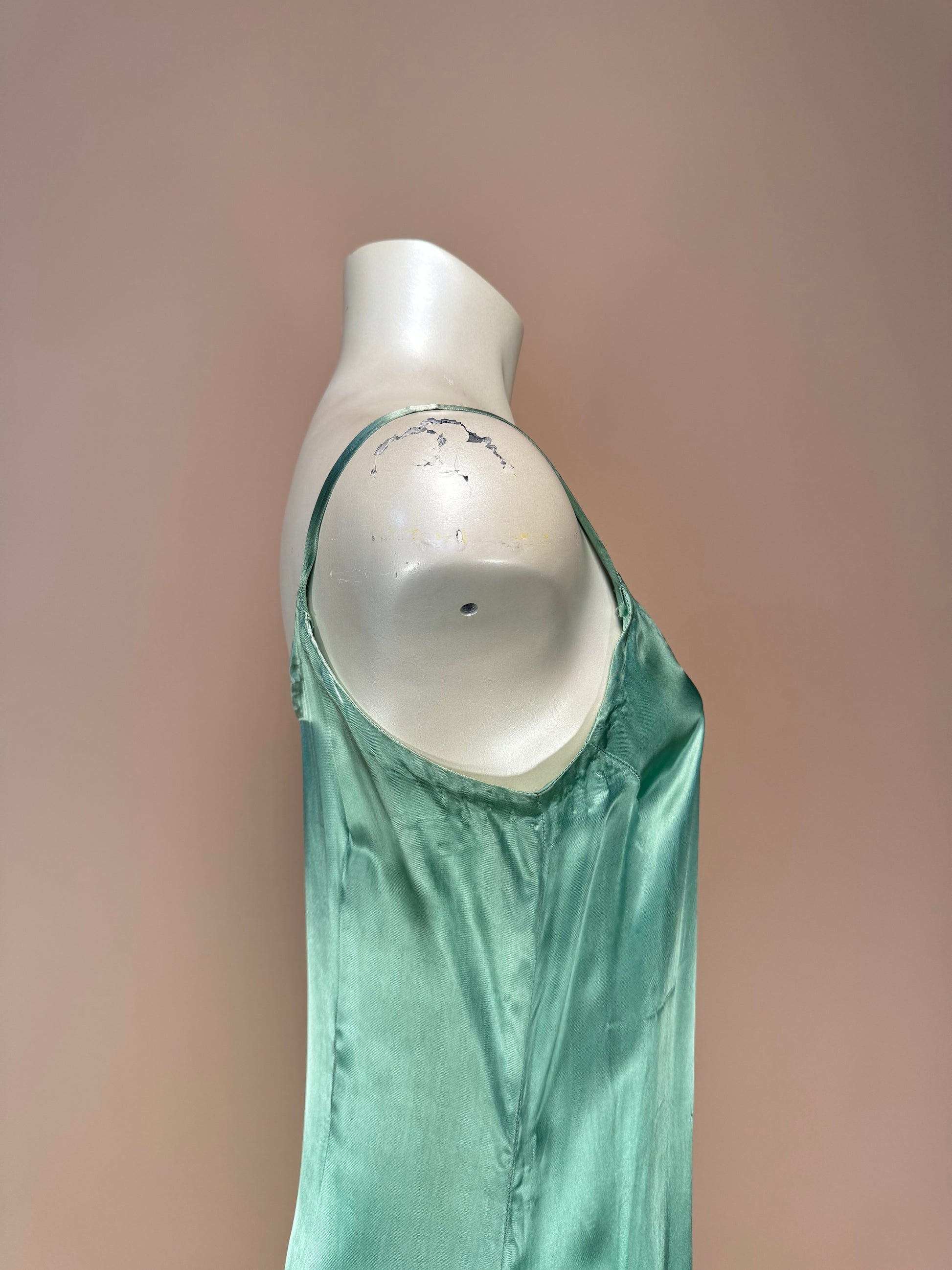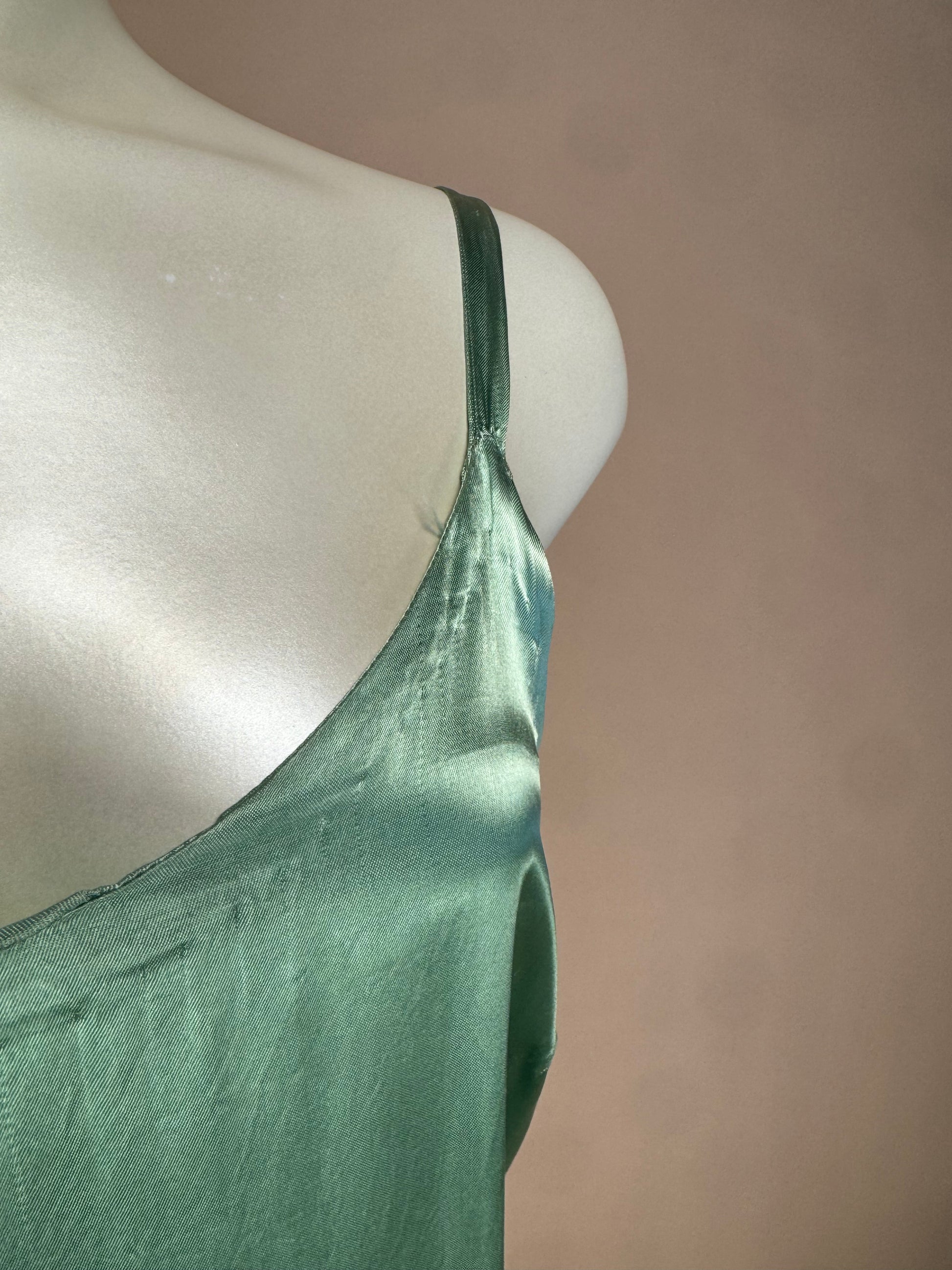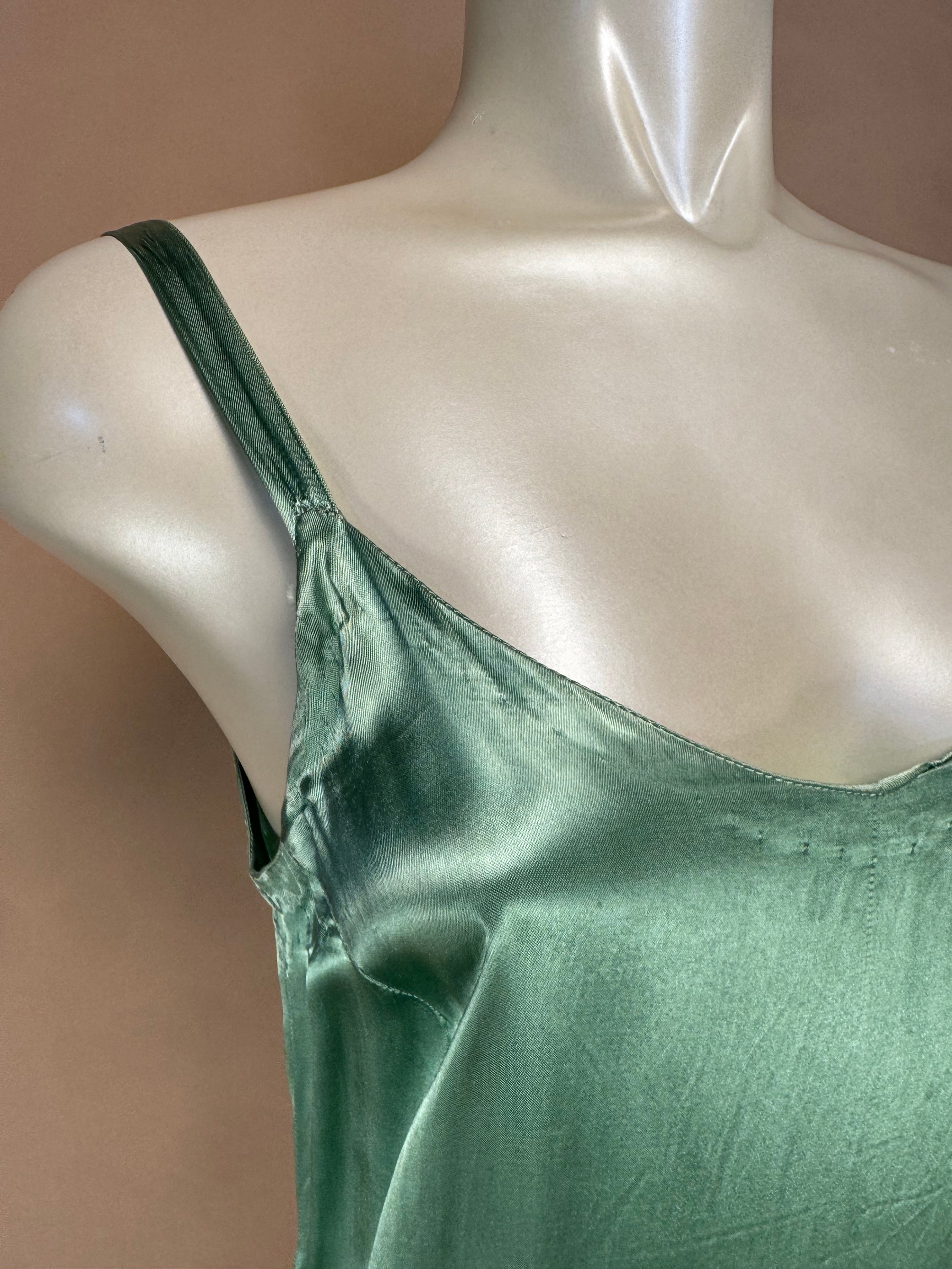1940S - EMERALD GREEN SILK SATIN SLIP
