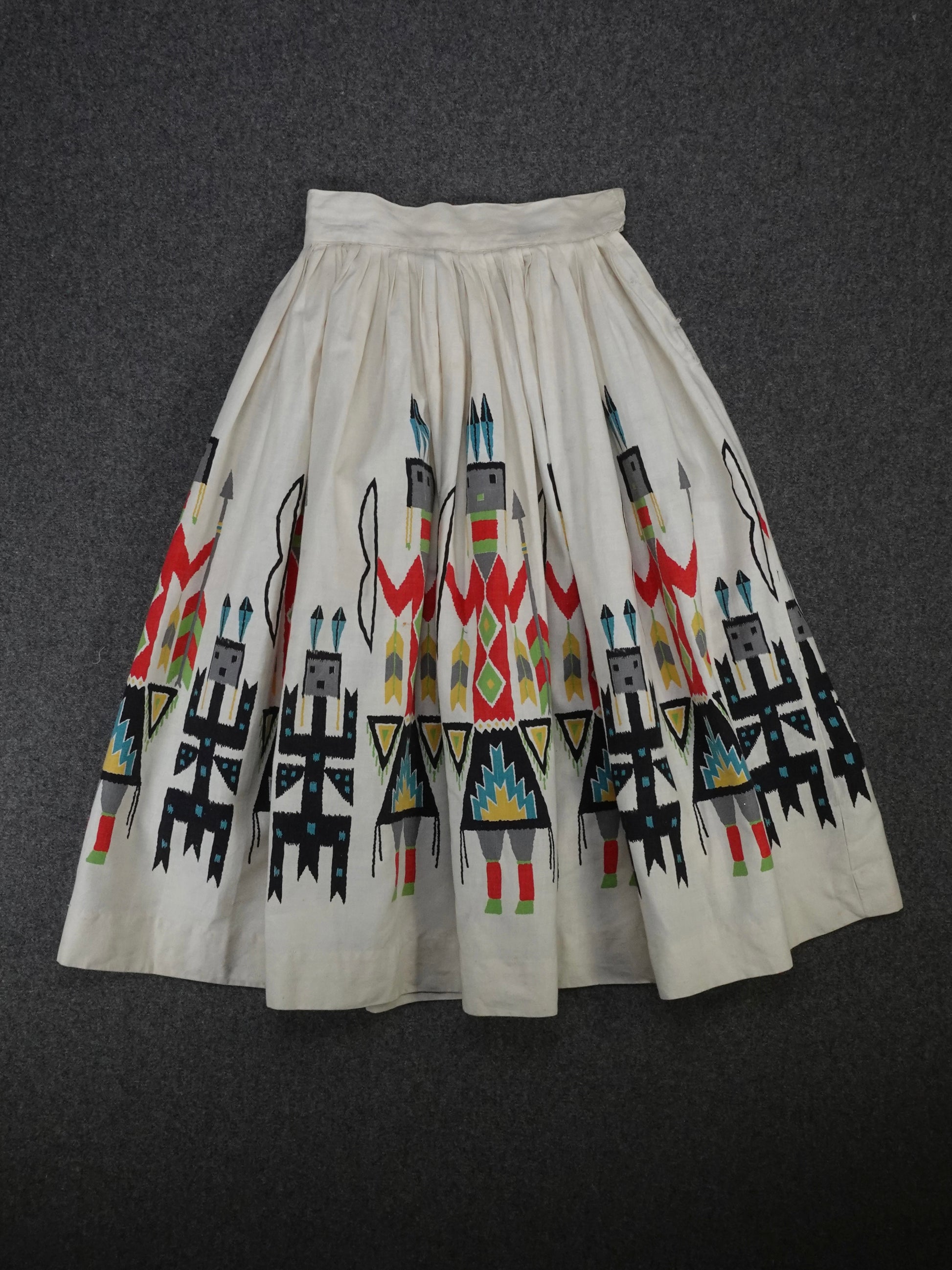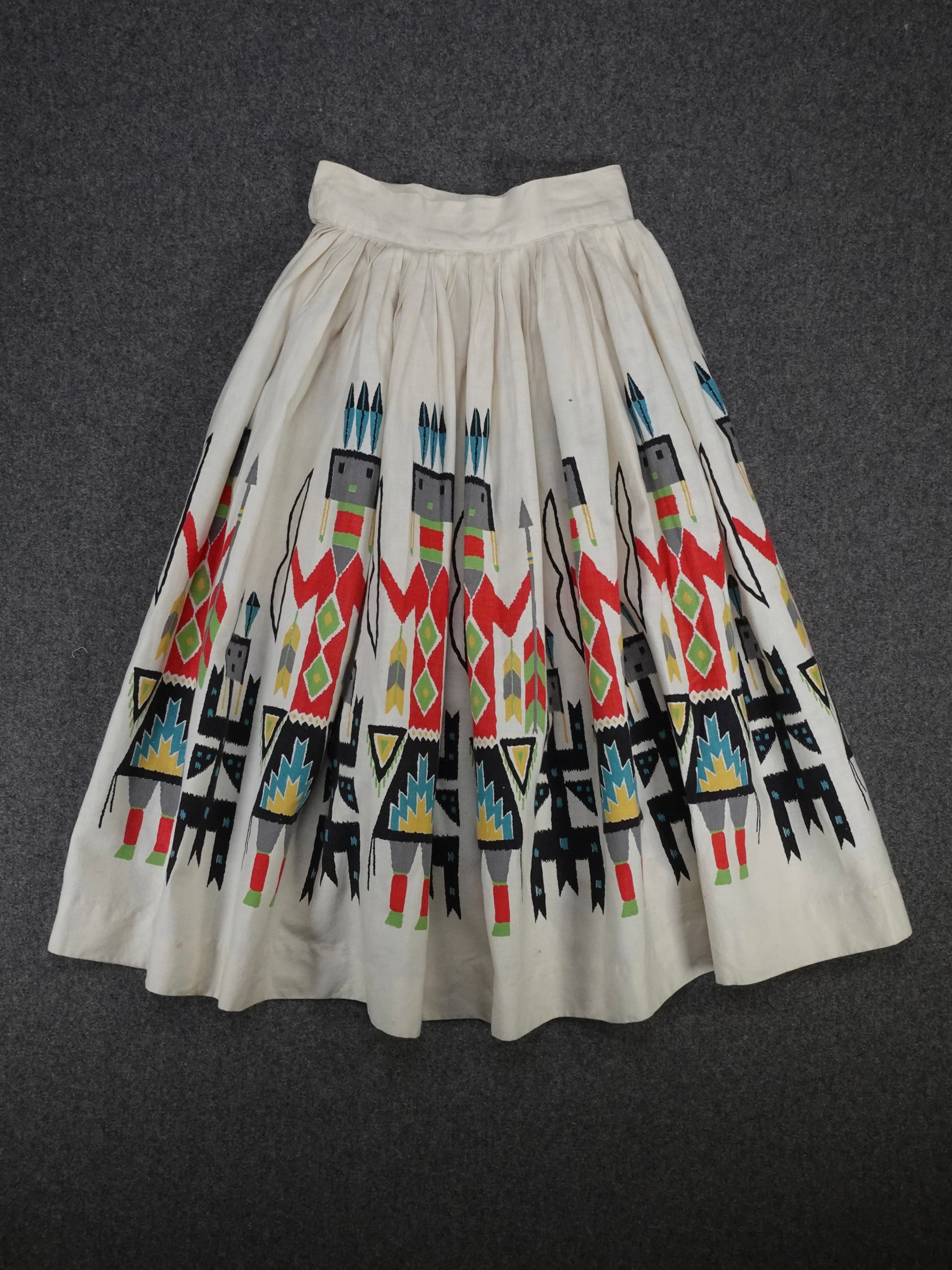 Vintage 1950s/60 - Hopi Kachina Doll Native American Southwestern Midi Skirt