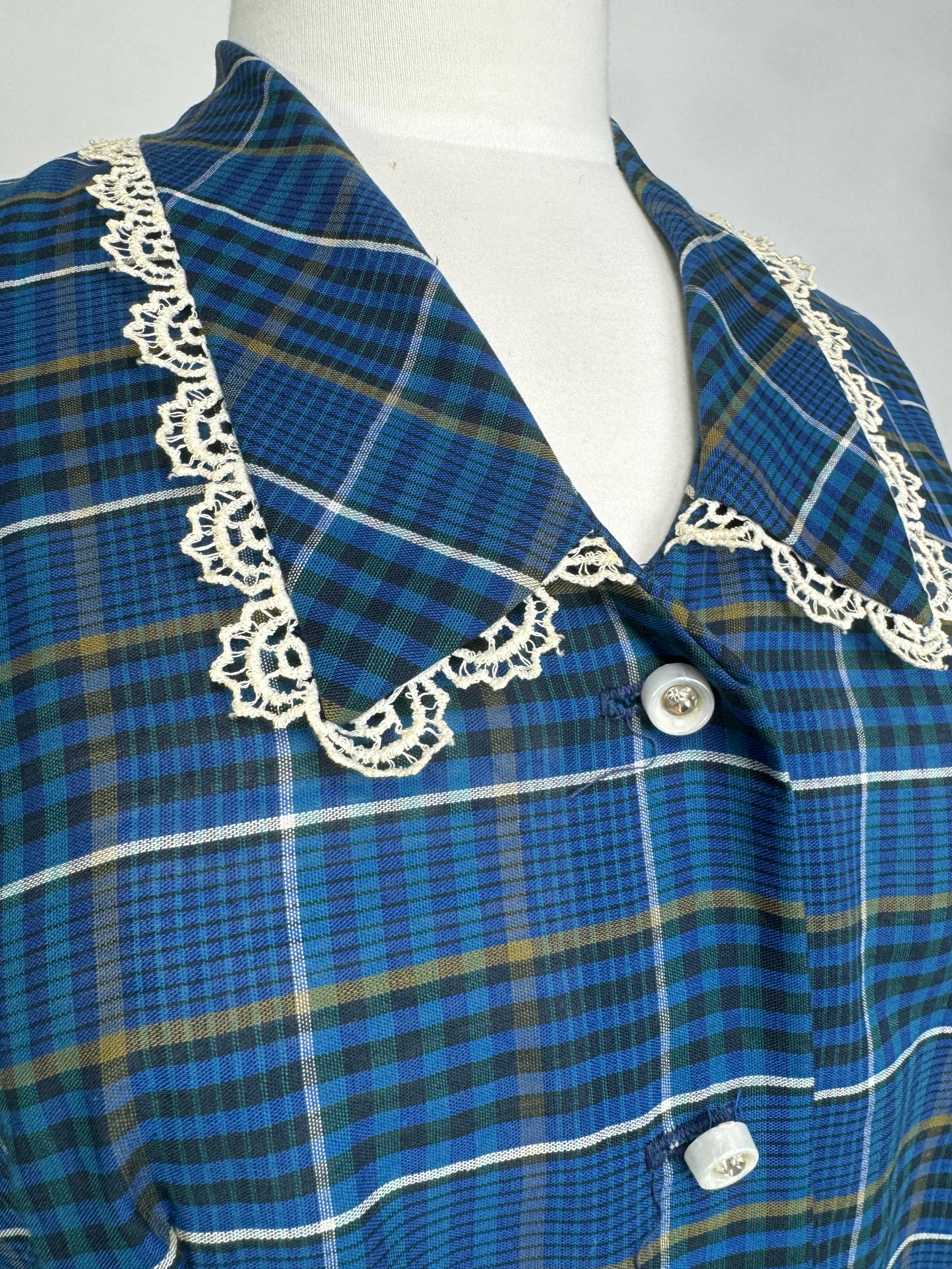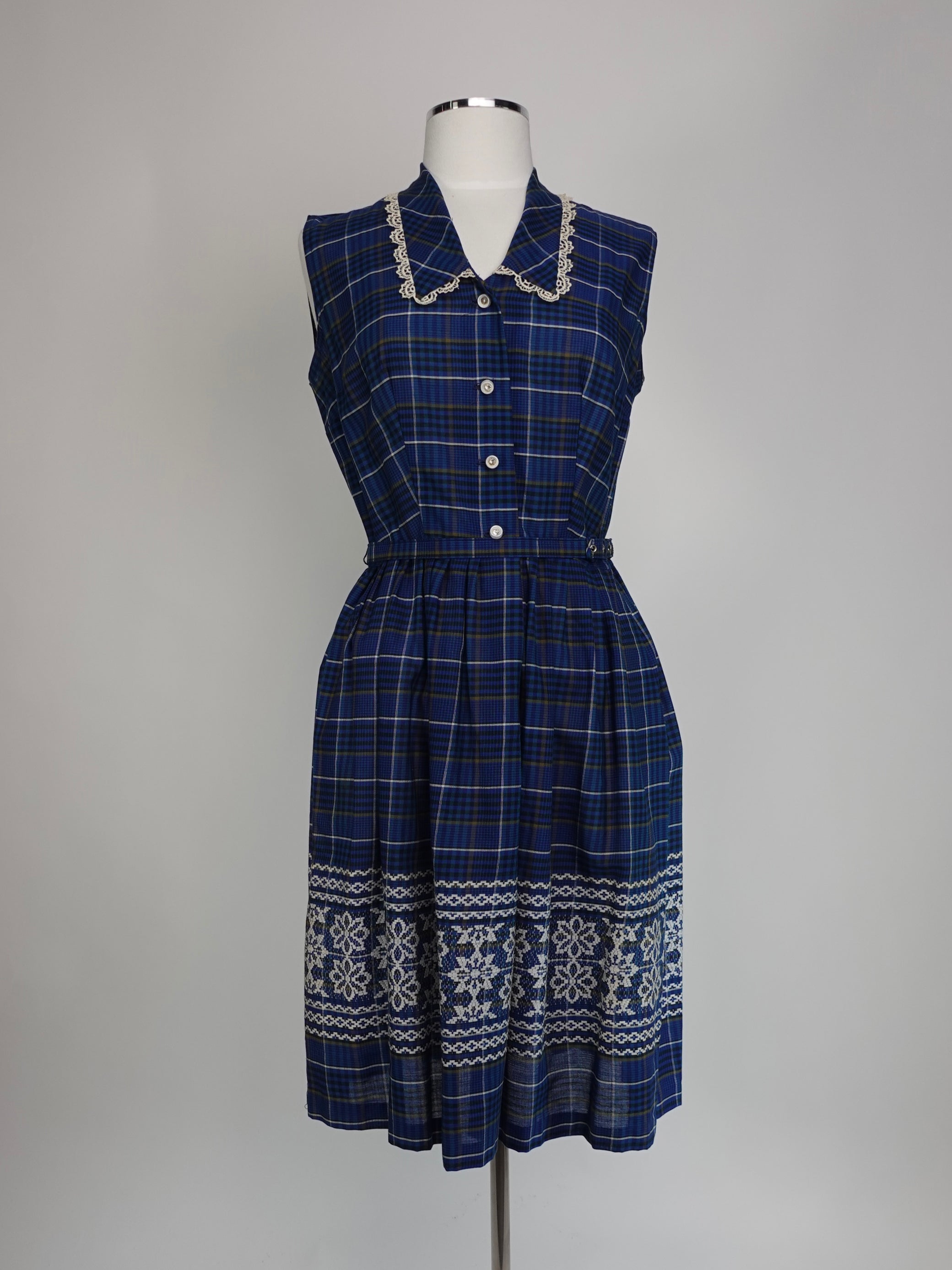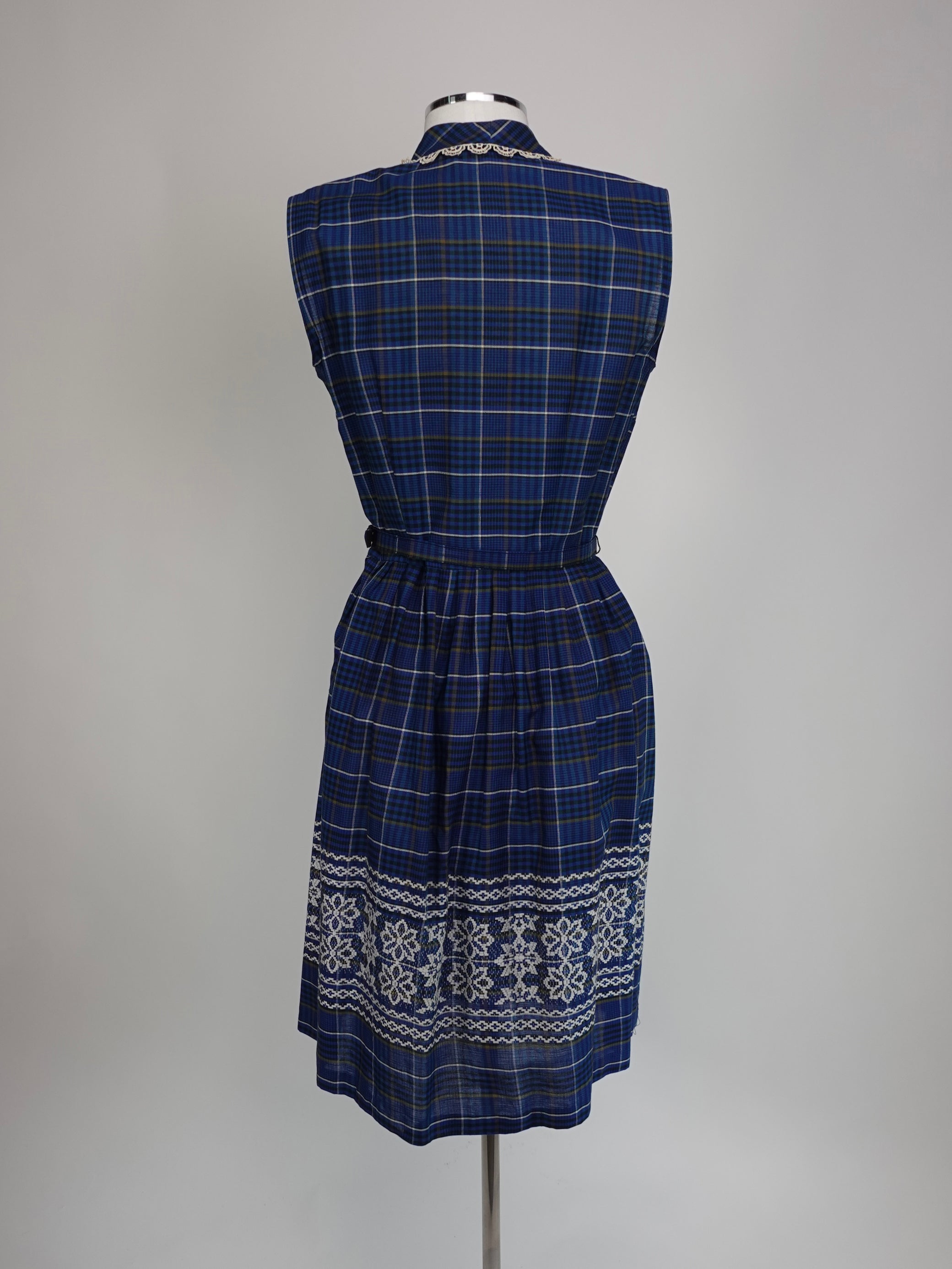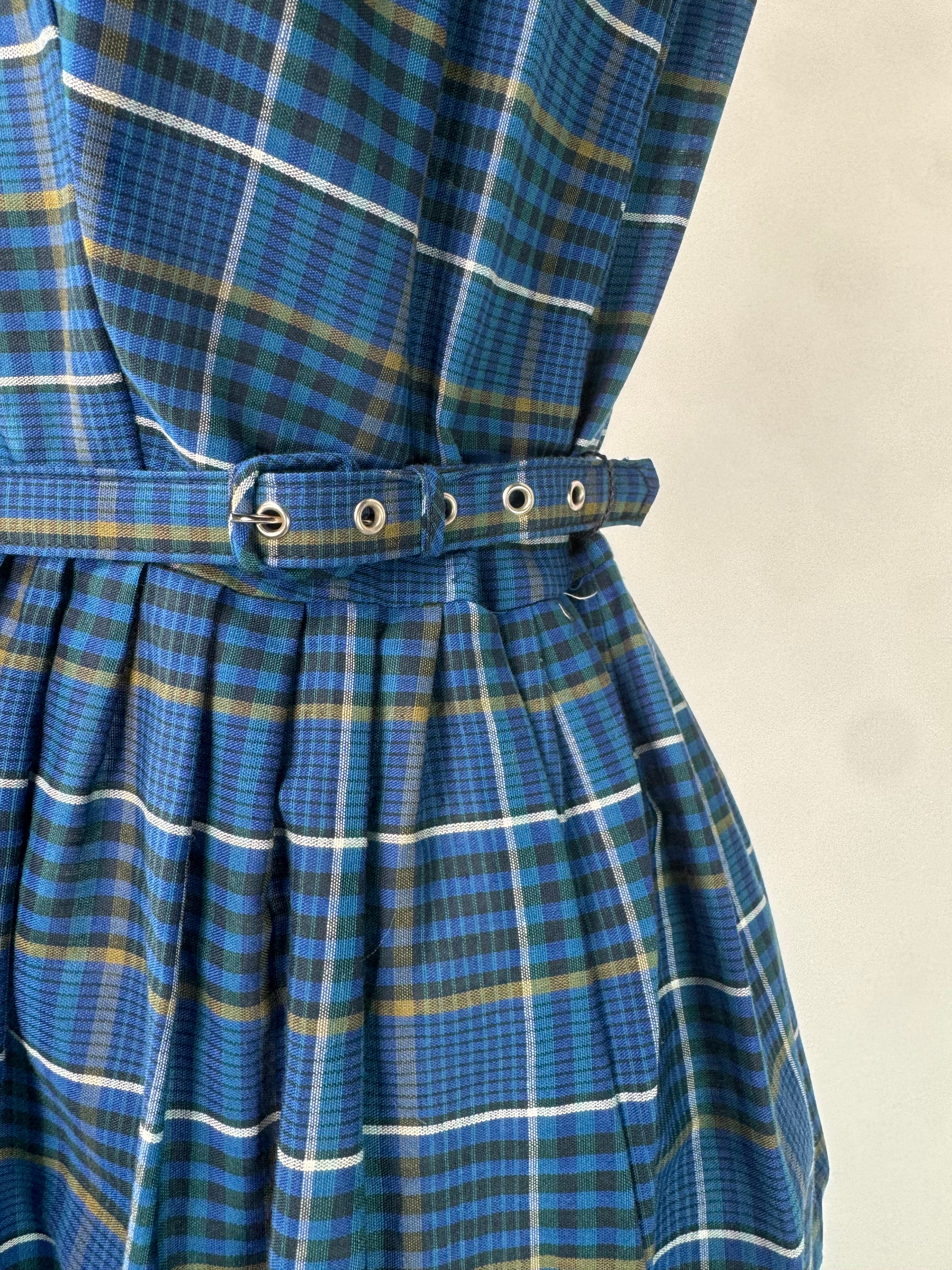 1950S/60S - SLEEVELESS COTTON/PLAID DAY DRESS DRESS
