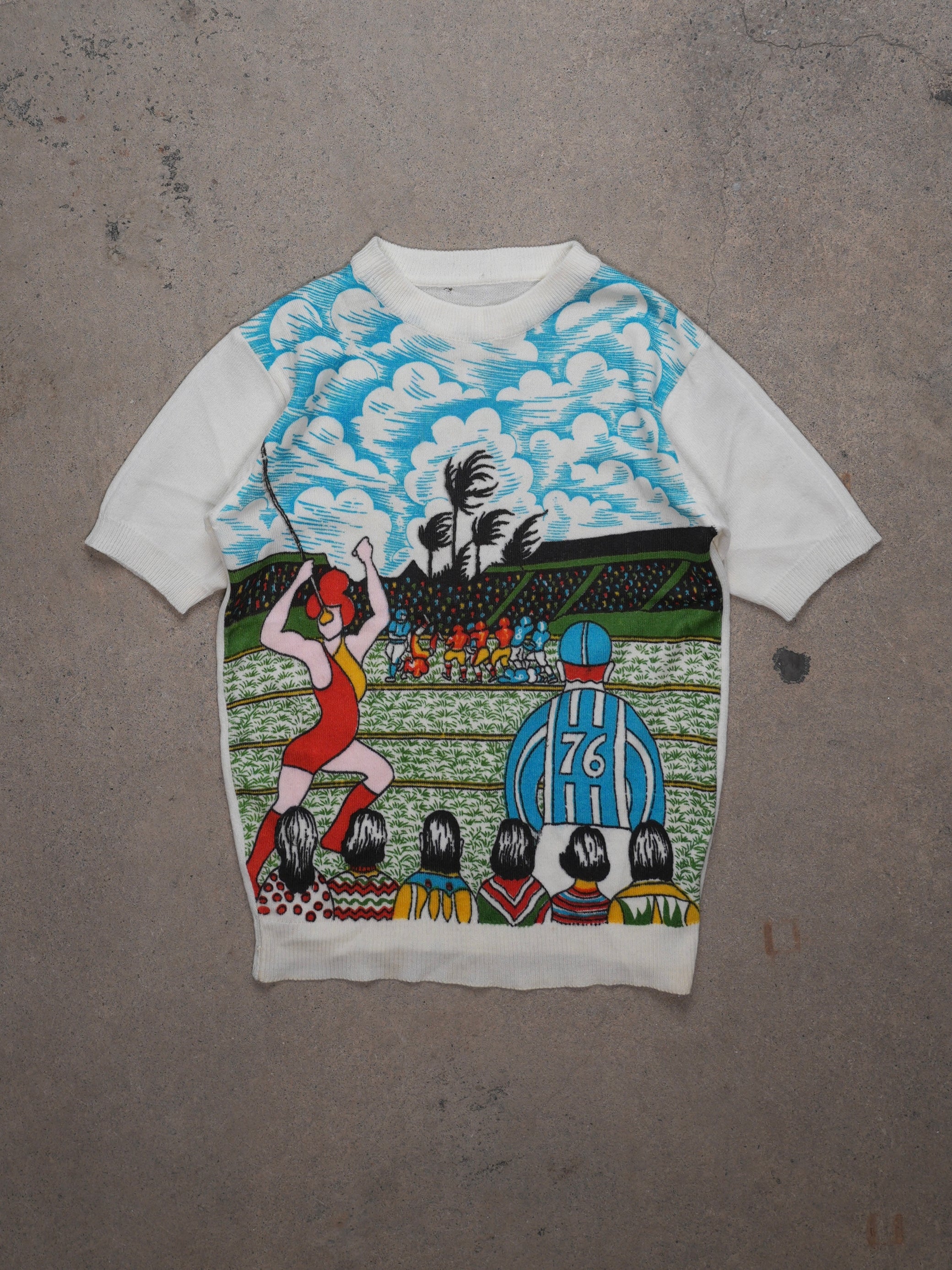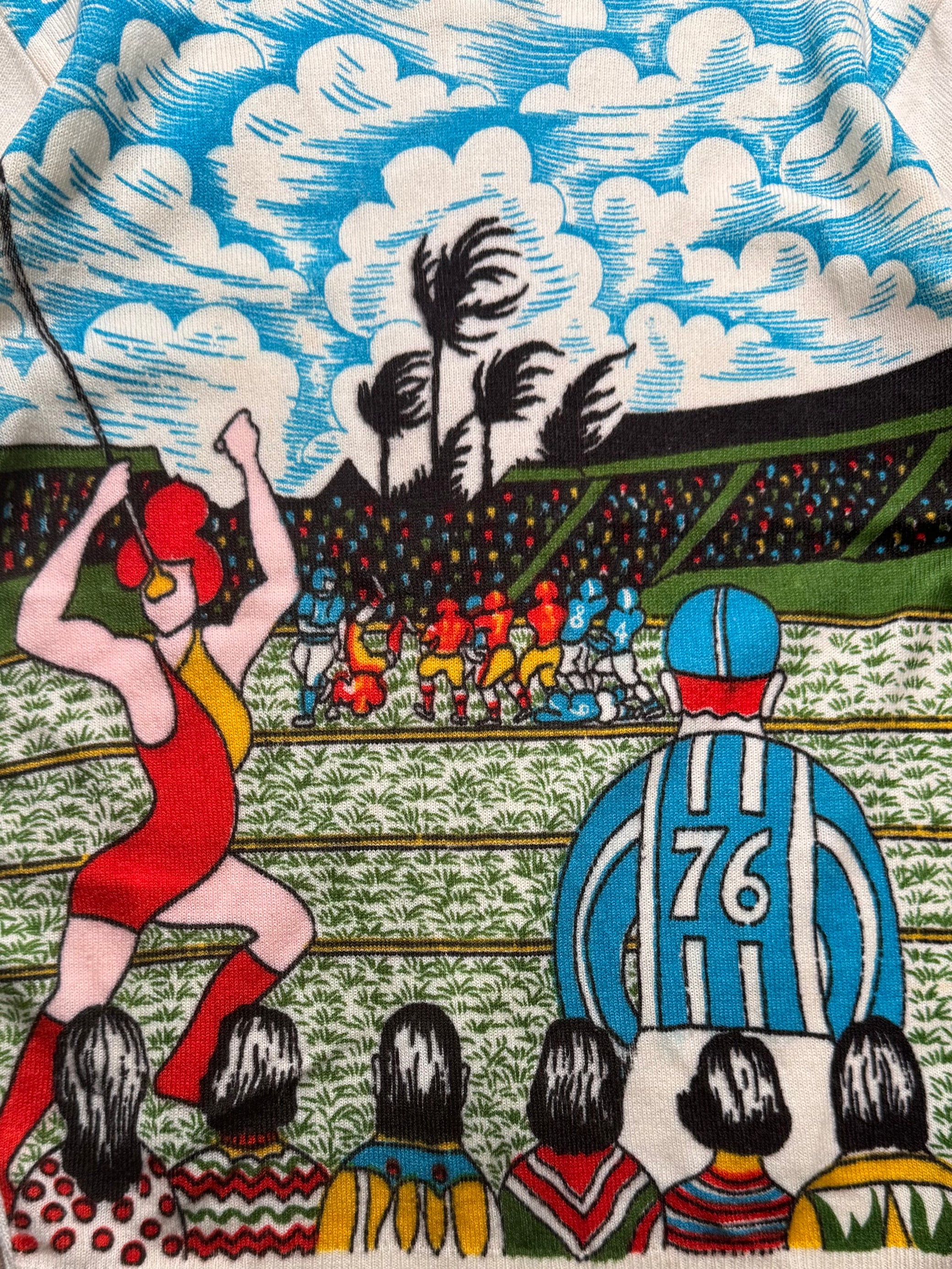1950S - KNIT "FOOTBALL SCENE" T-SHIRT