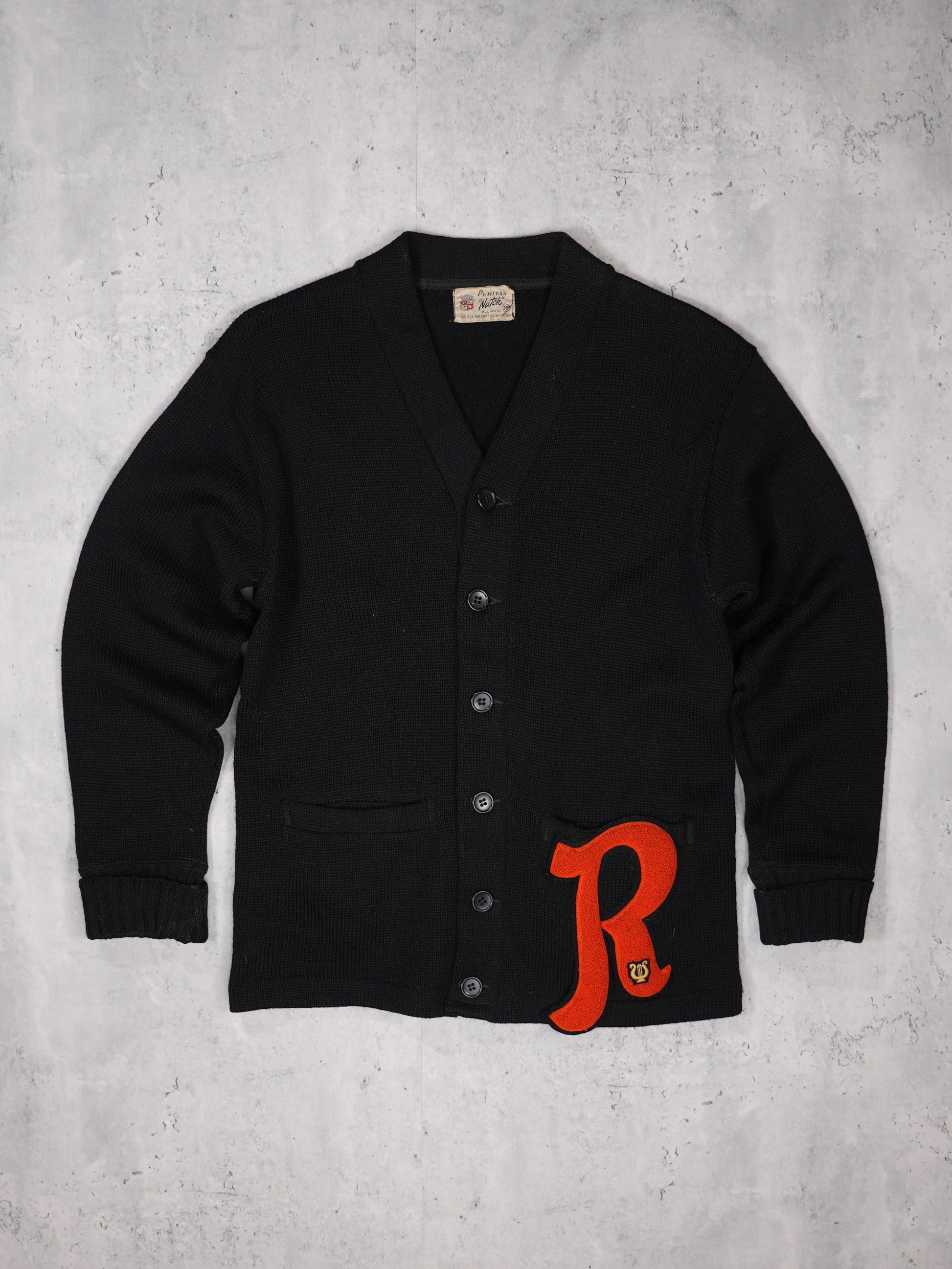 1950S - PURITAN "M" WOOL CARDIGAN