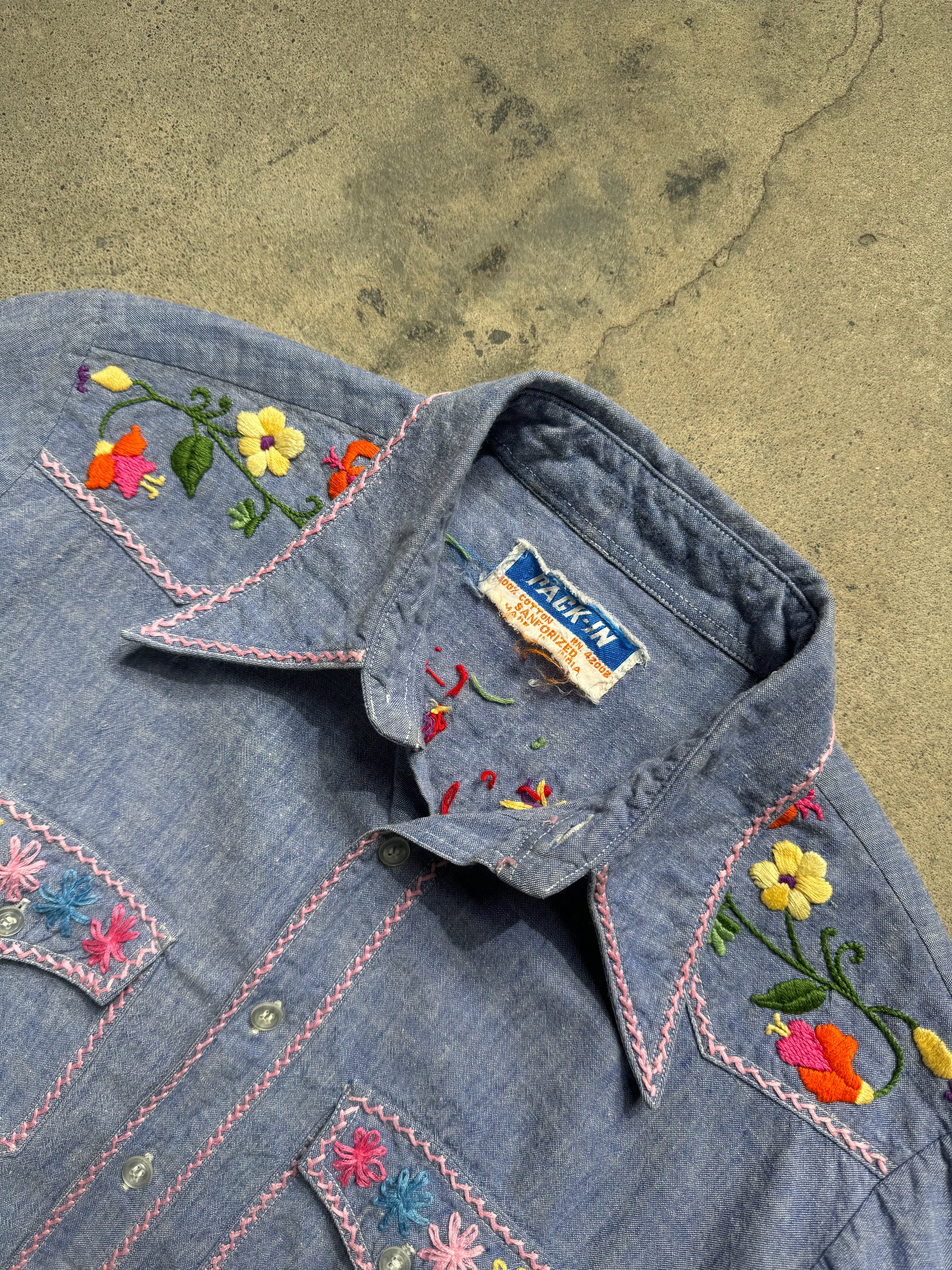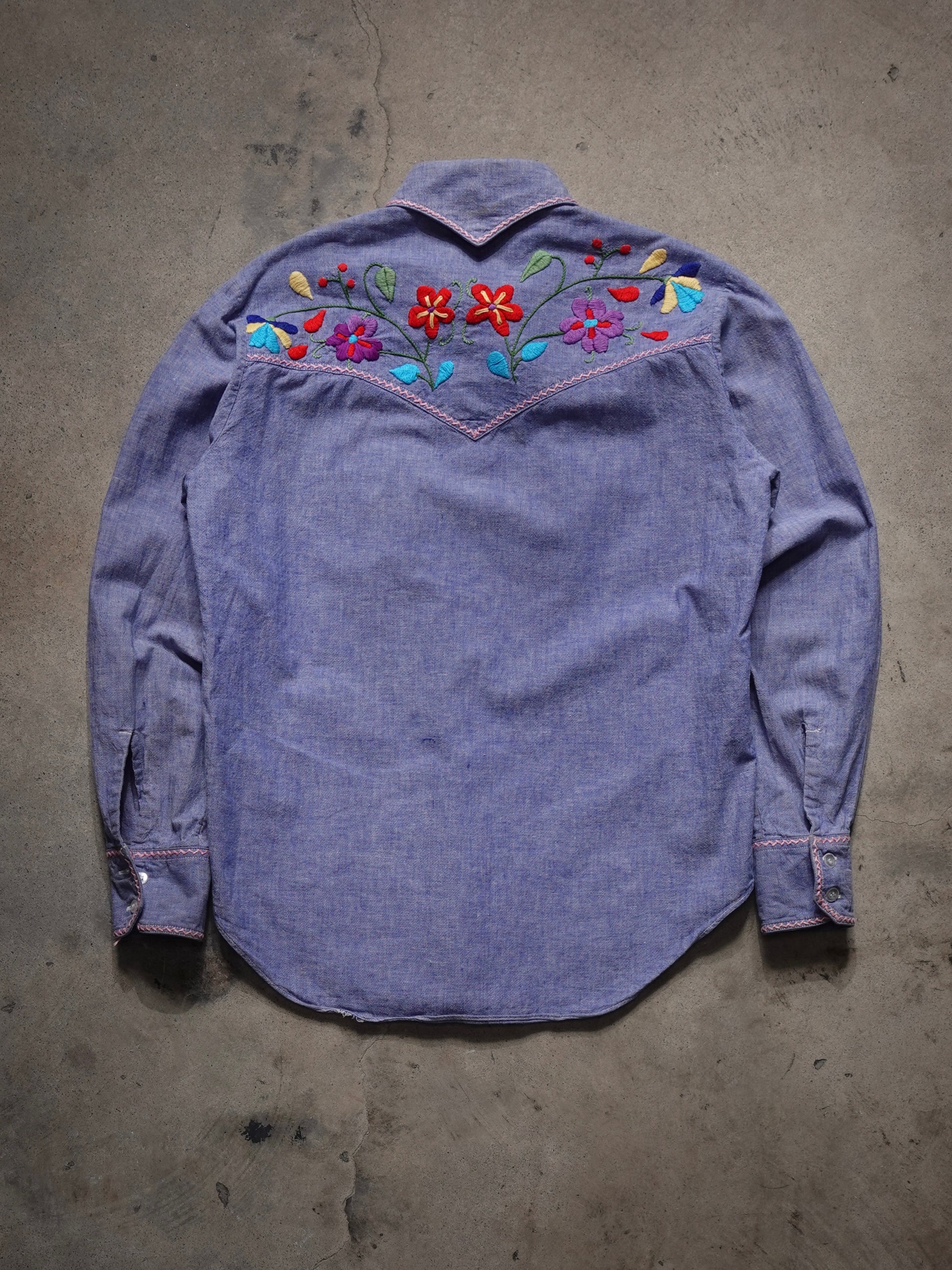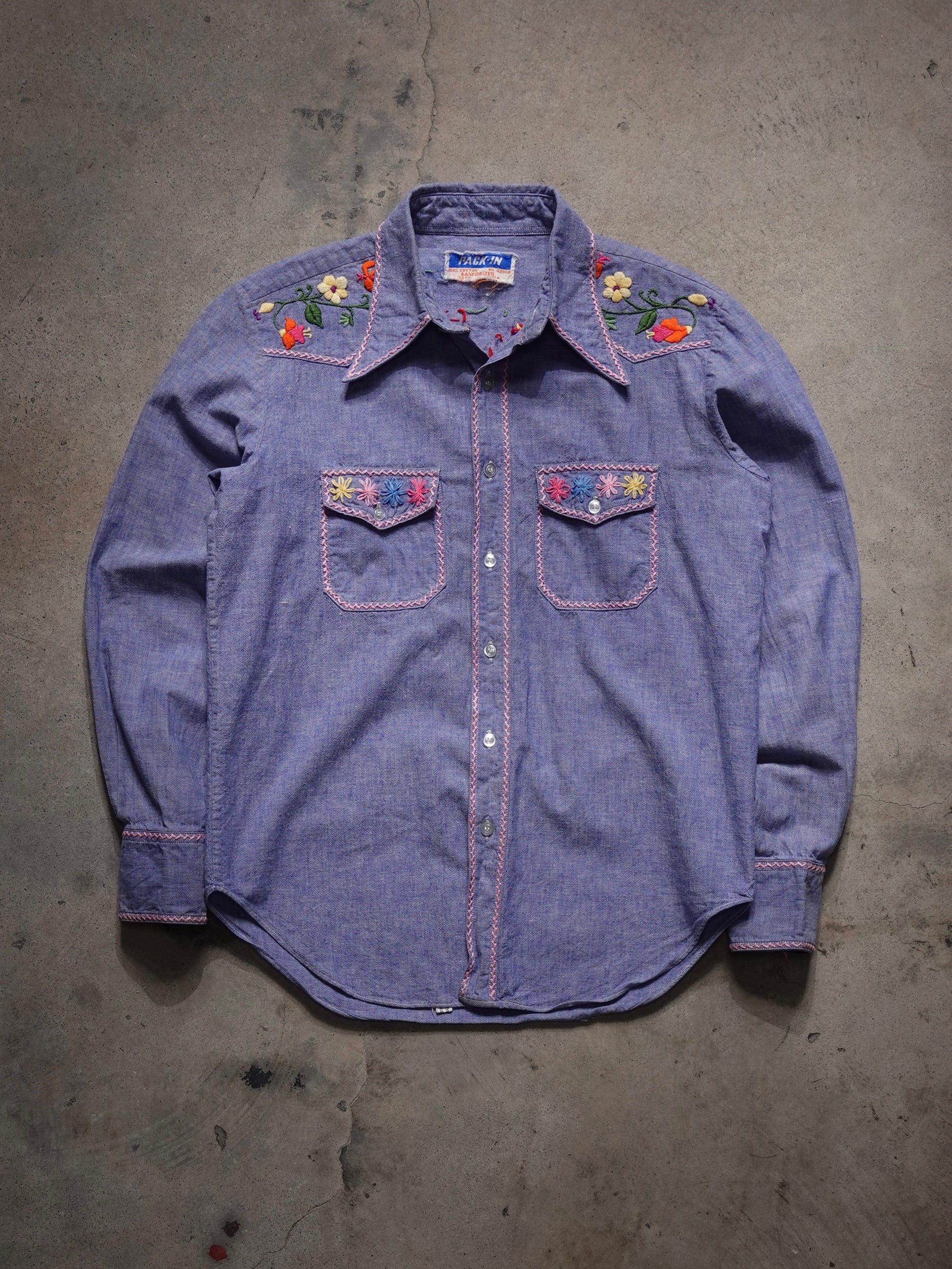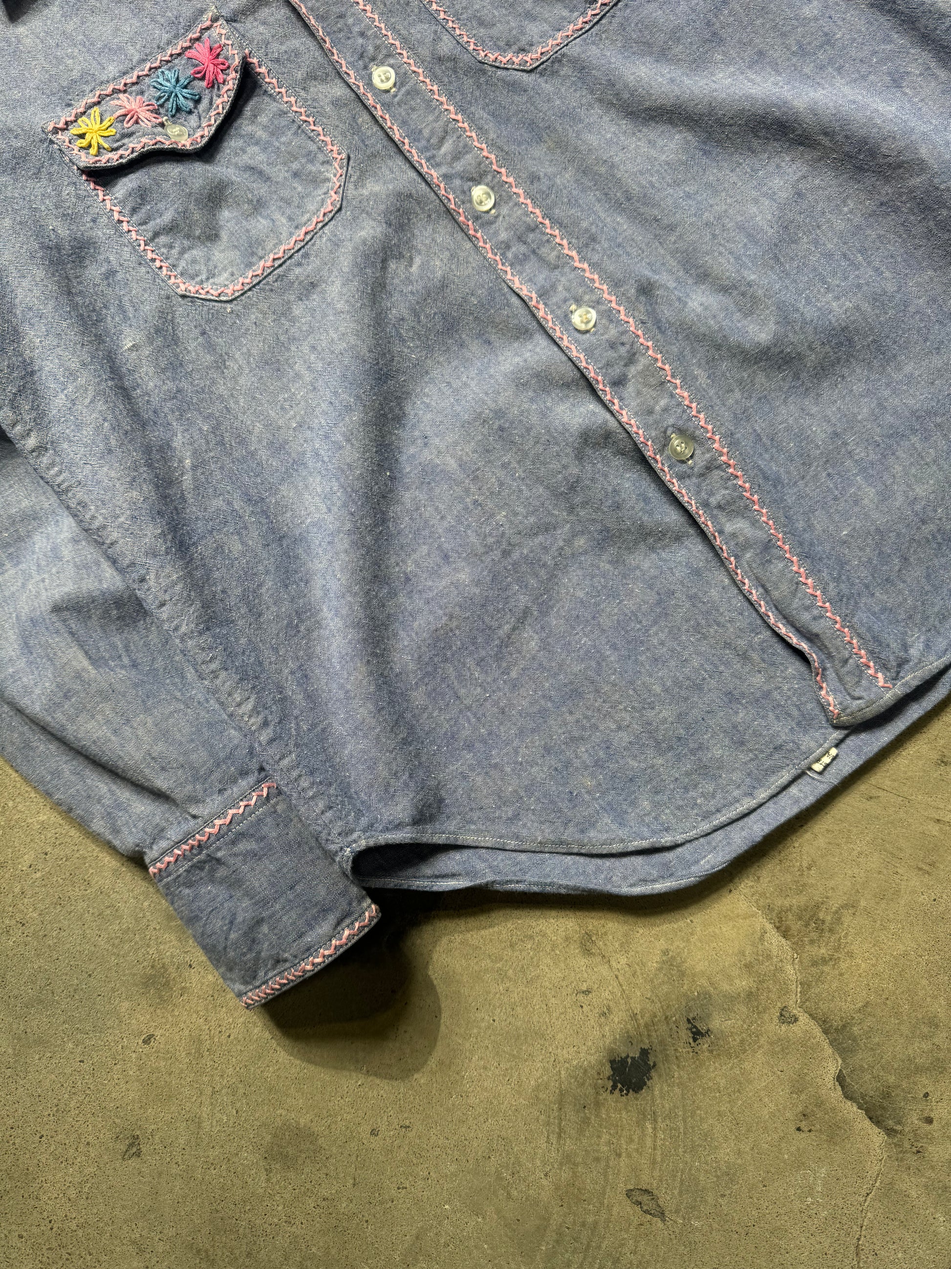 Vintage 1960s/70s Made In India Embroidered Chambray