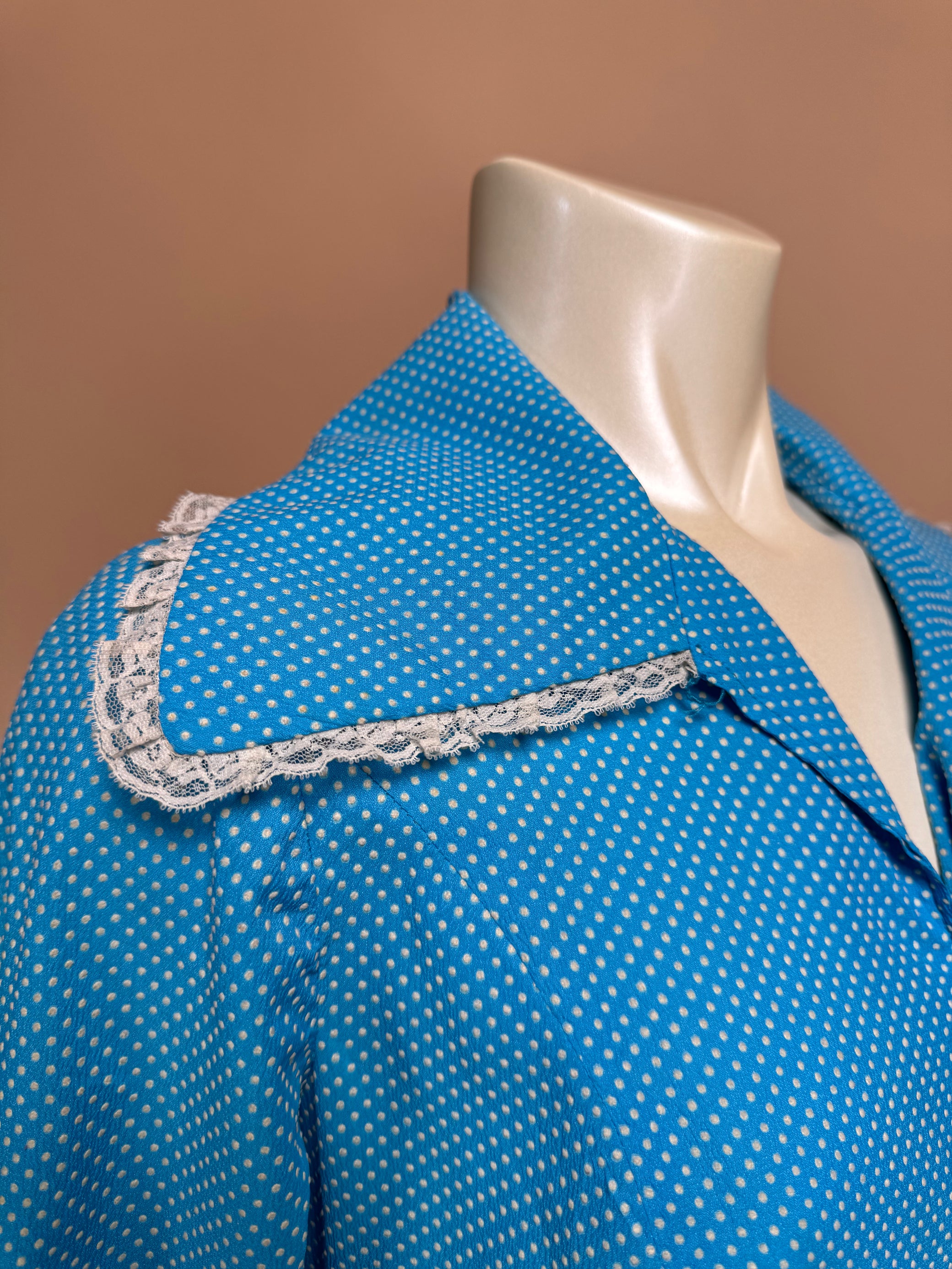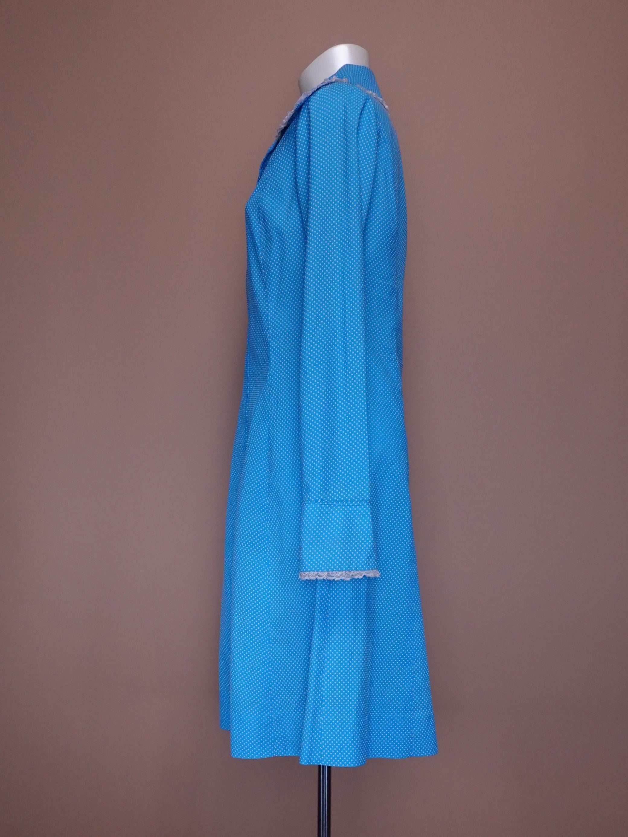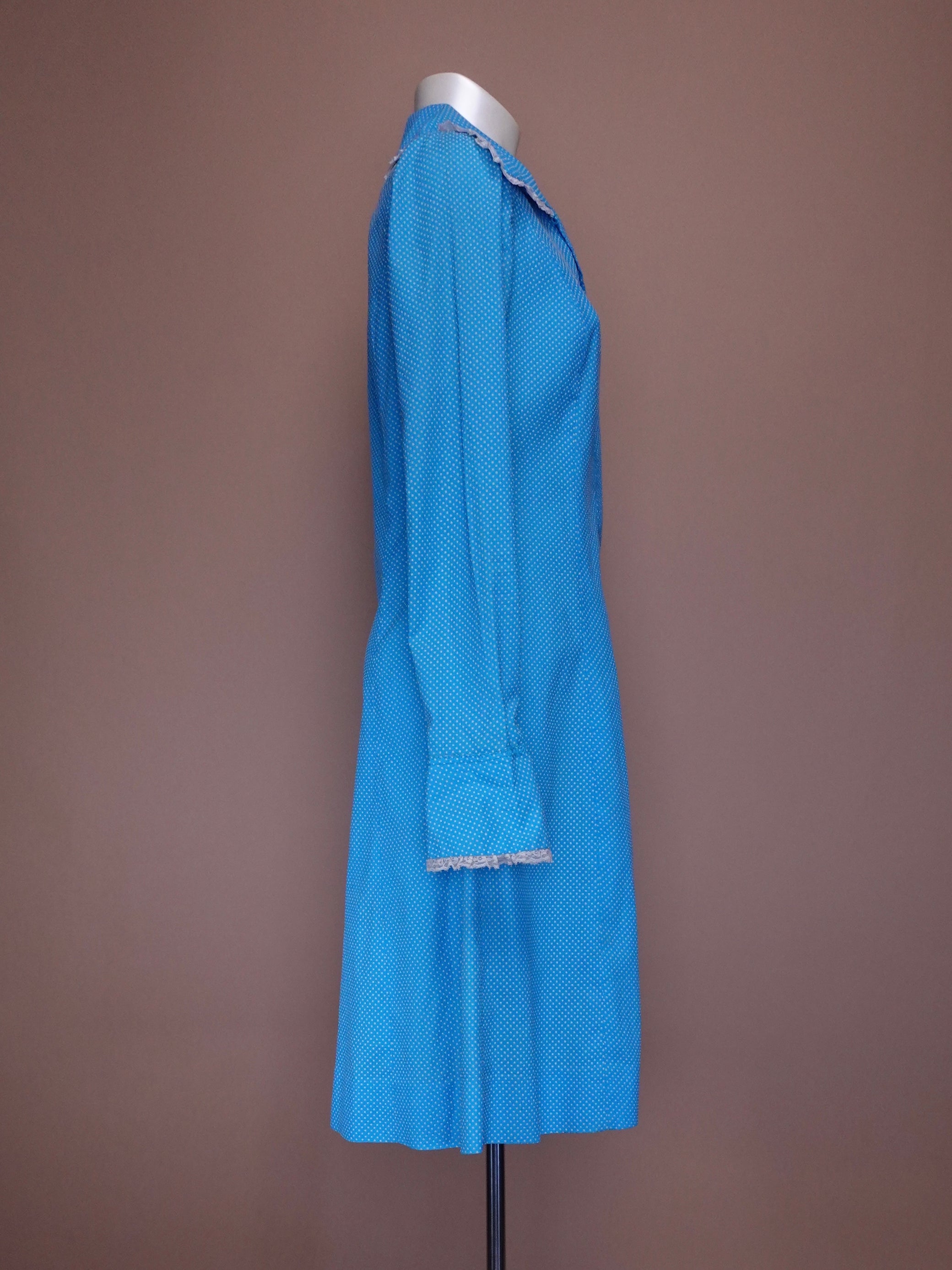 1960s - Baby Blue Swiss Dot Midi Length Dress