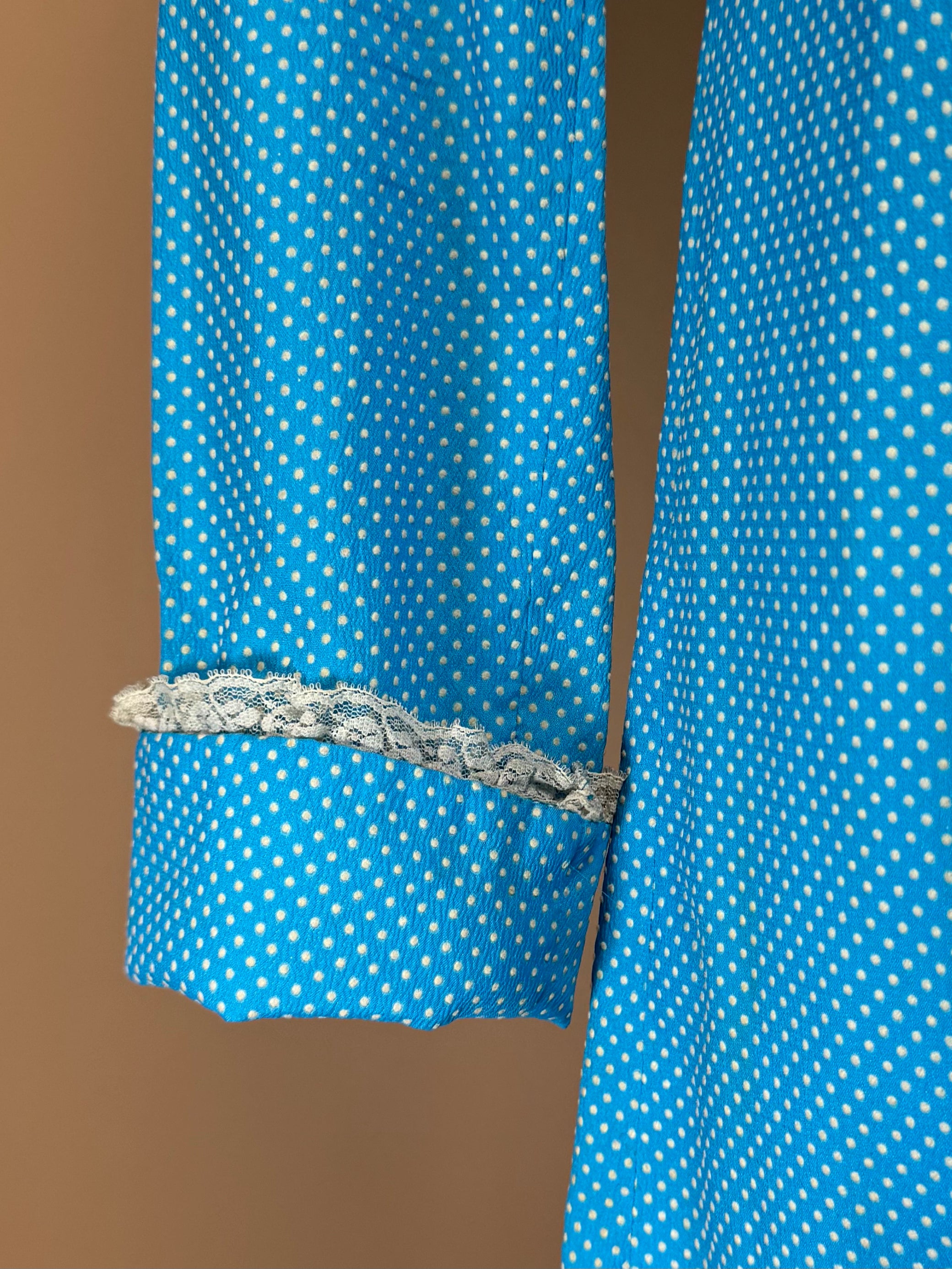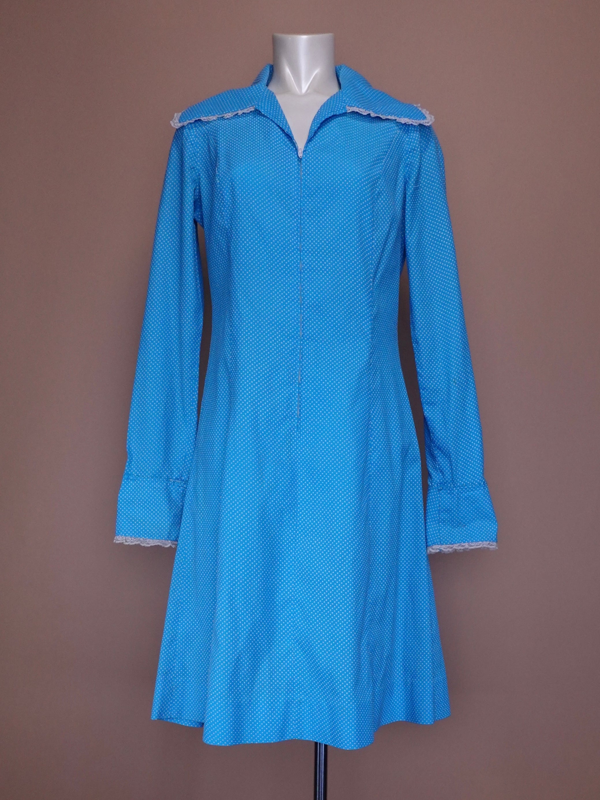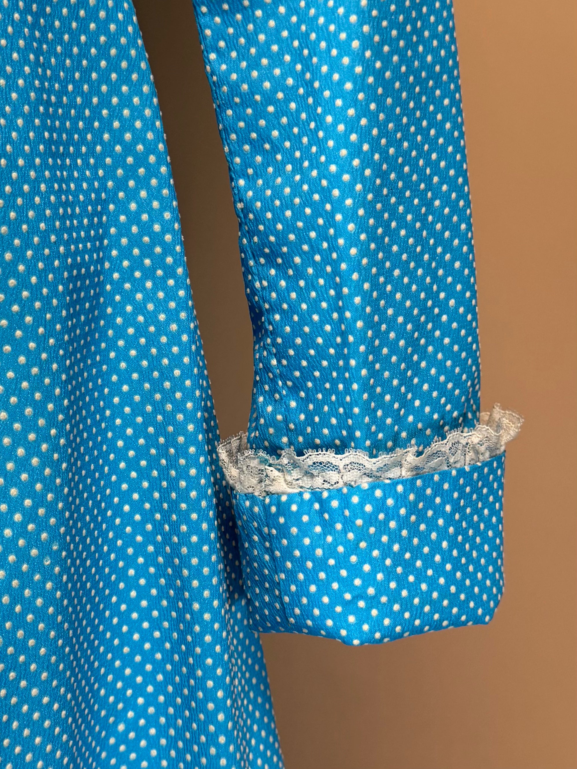 1960s - Baby Blue Swiss Dot Midi Length Dress