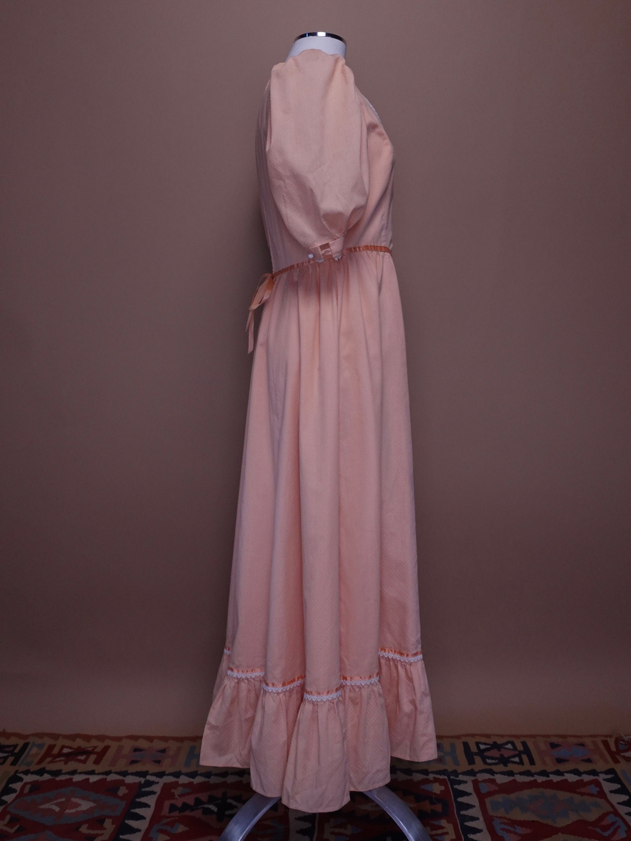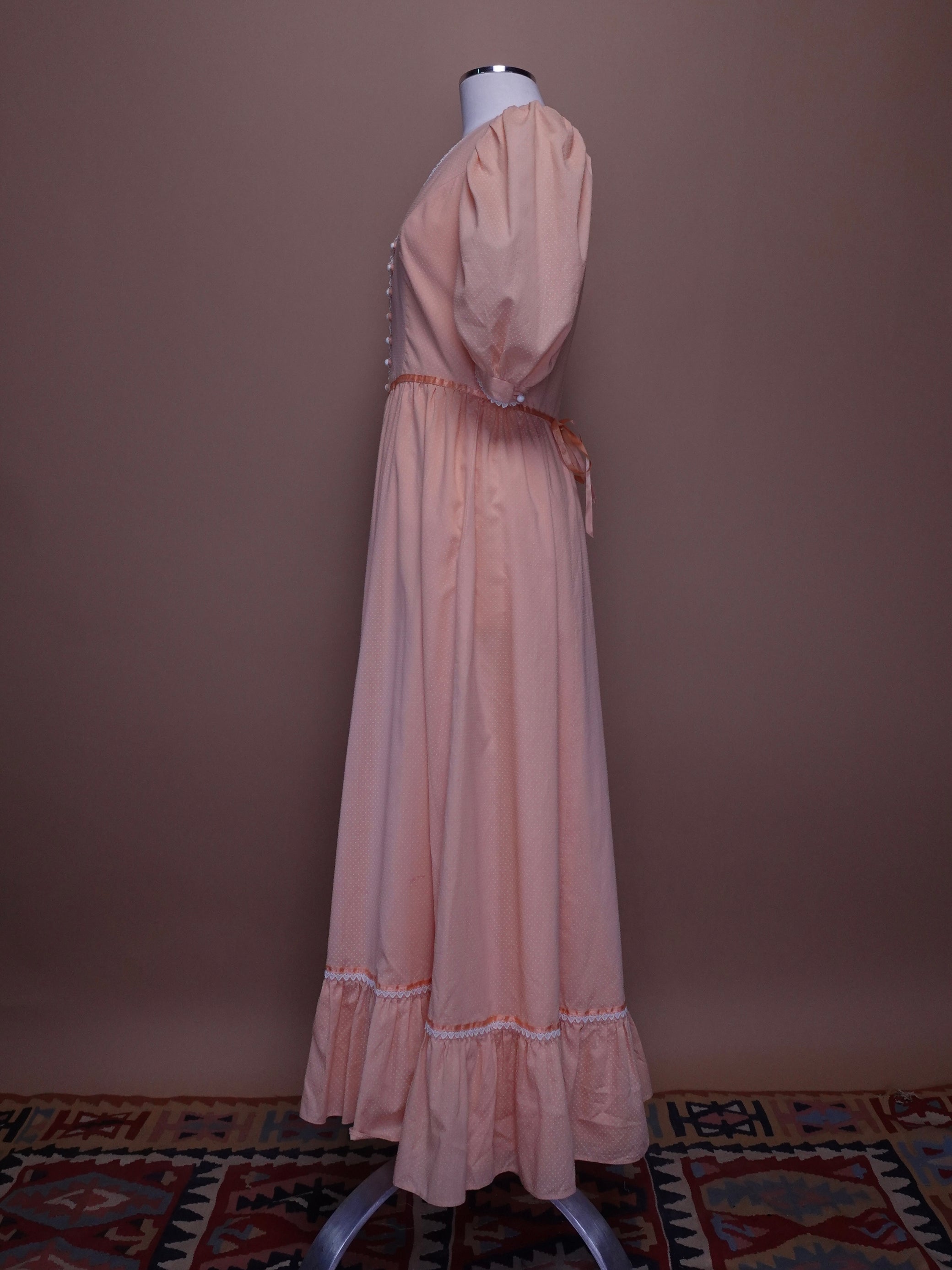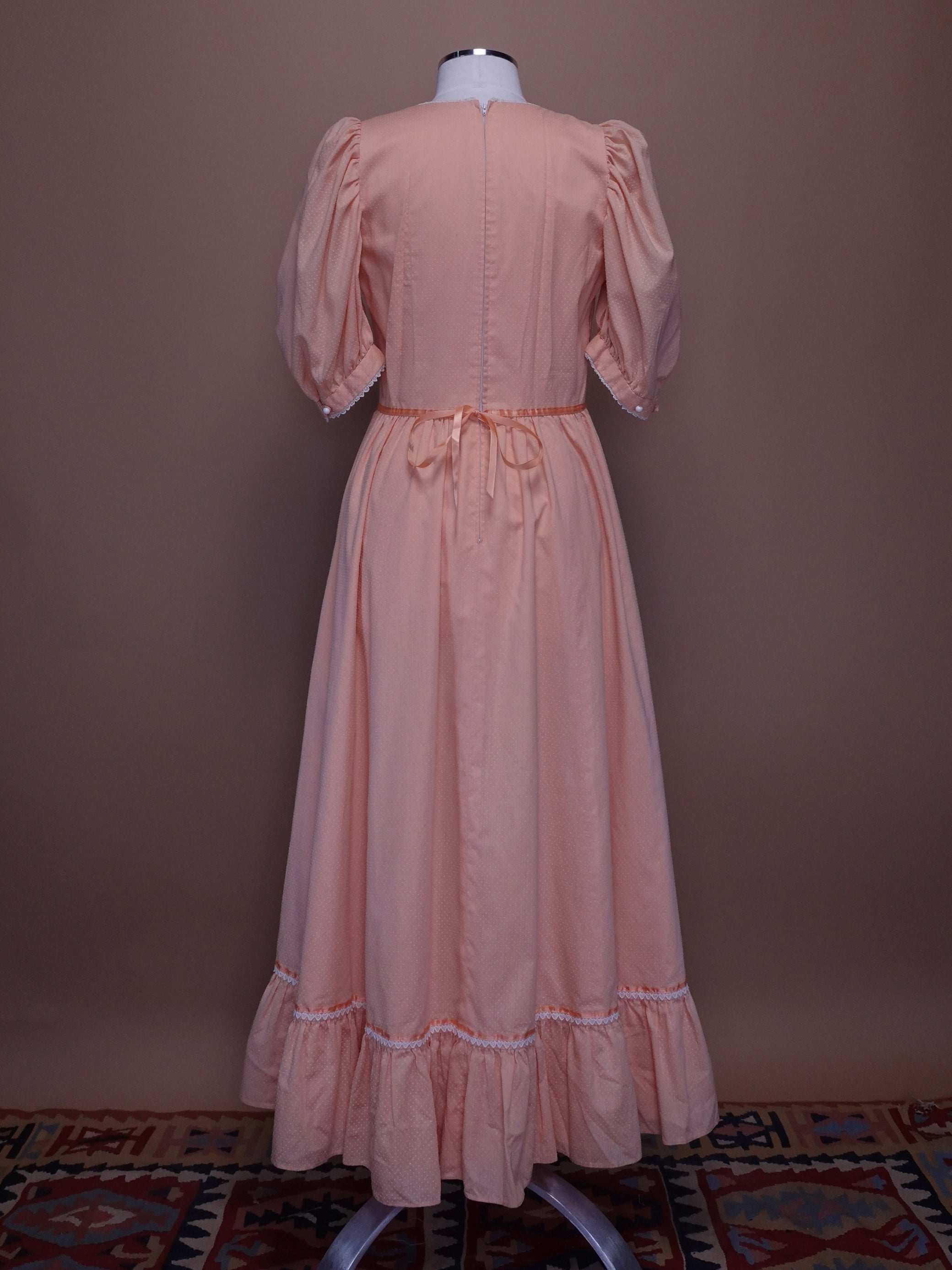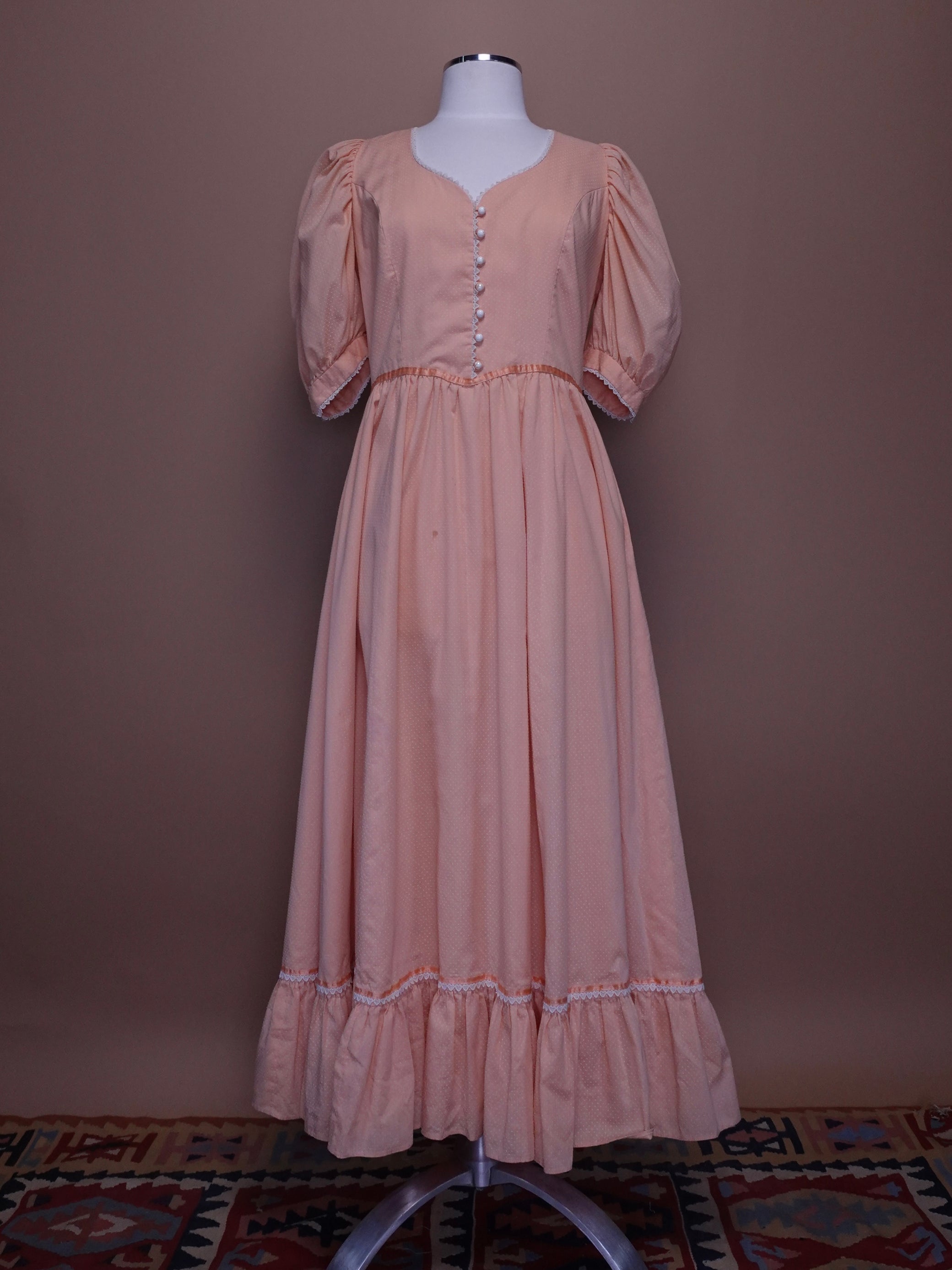1960s - Baby Pink Swiss Dot Dress With Lace Detailing & Mother of Pear Buttons