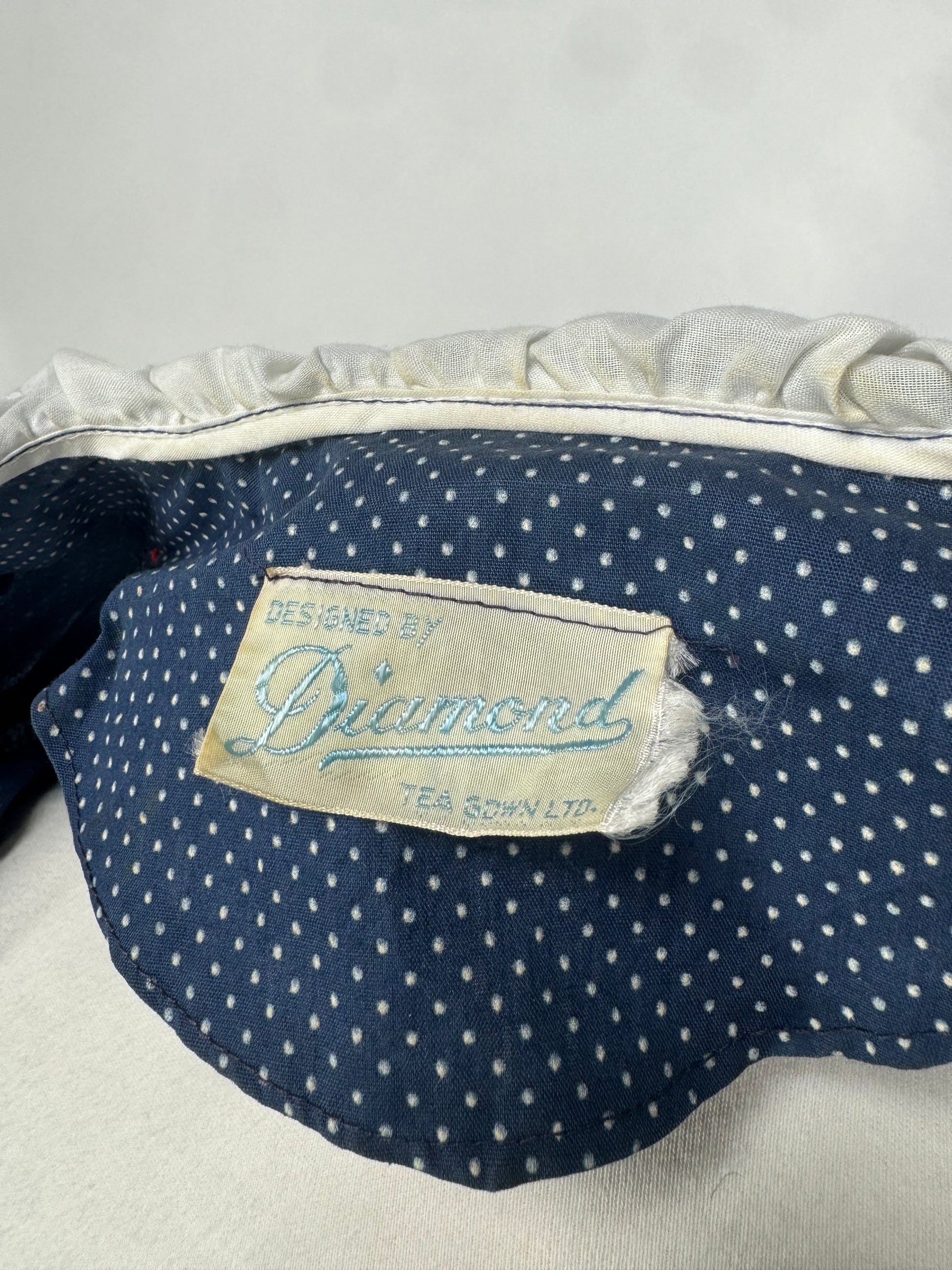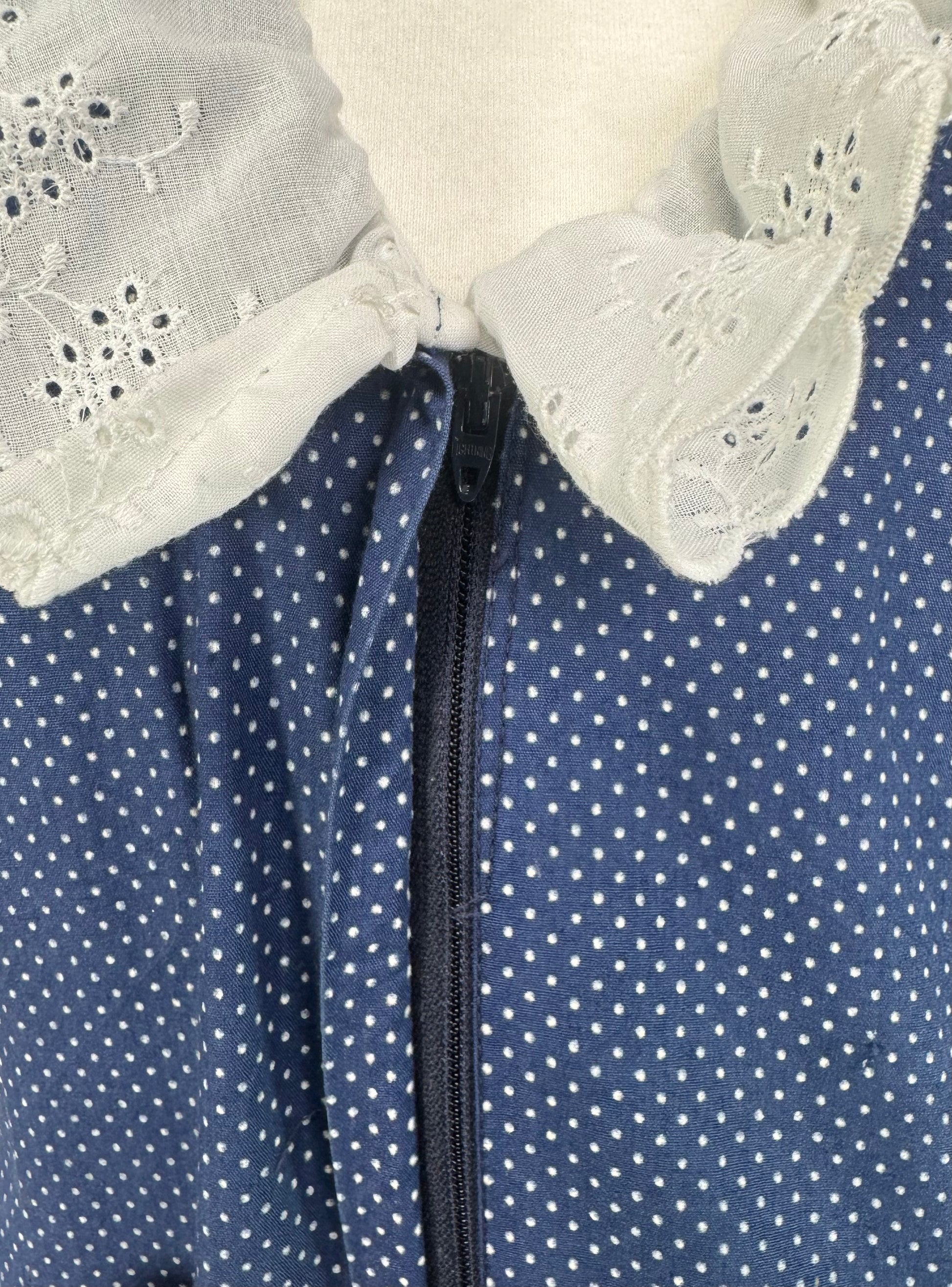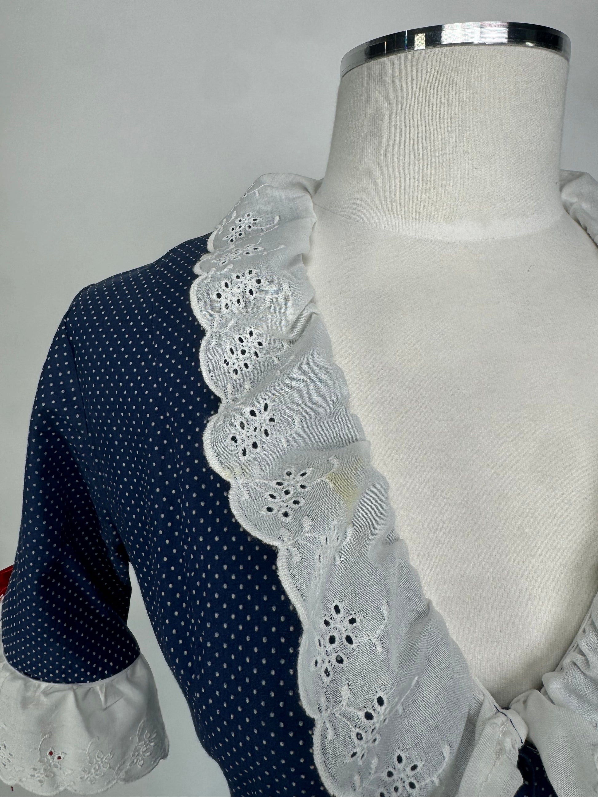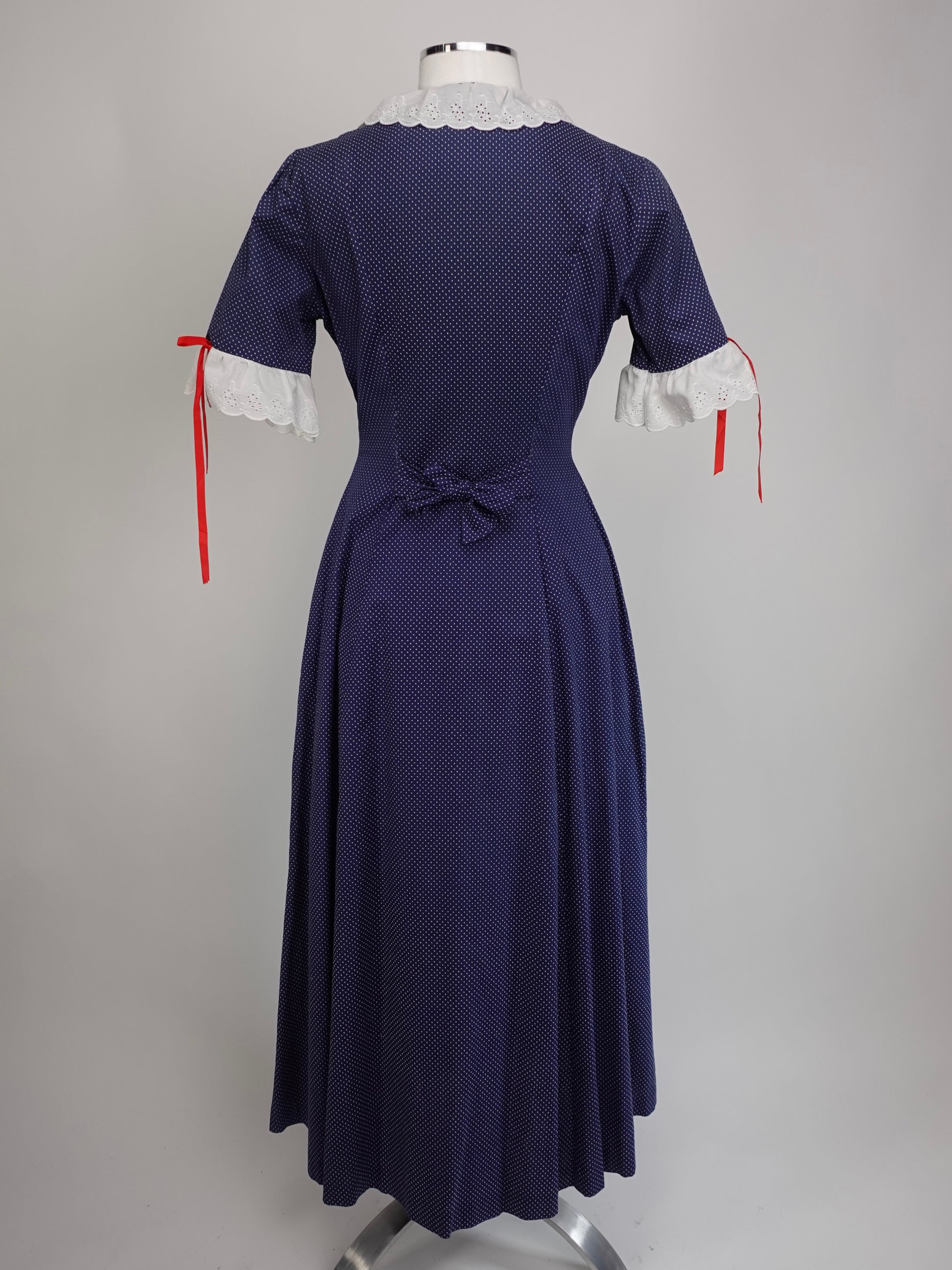 1940S - BLUE SWISS DOTS LACE TRIM MAXI DRESS