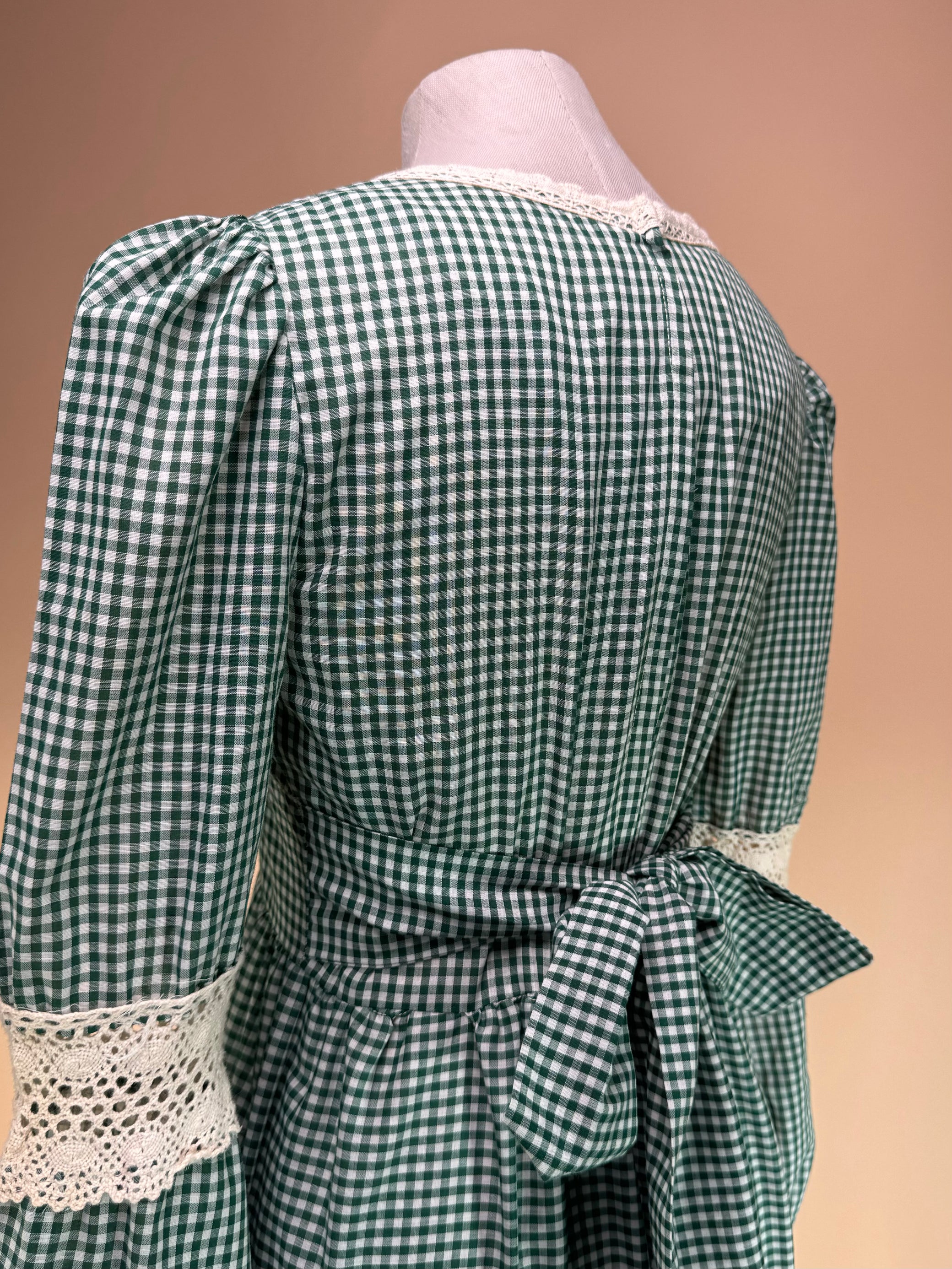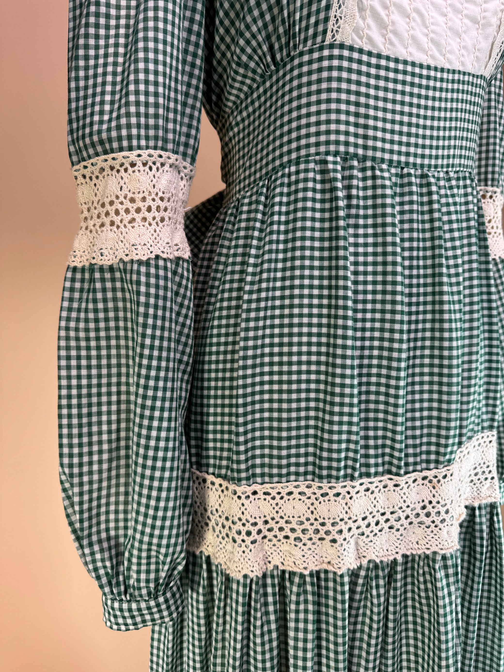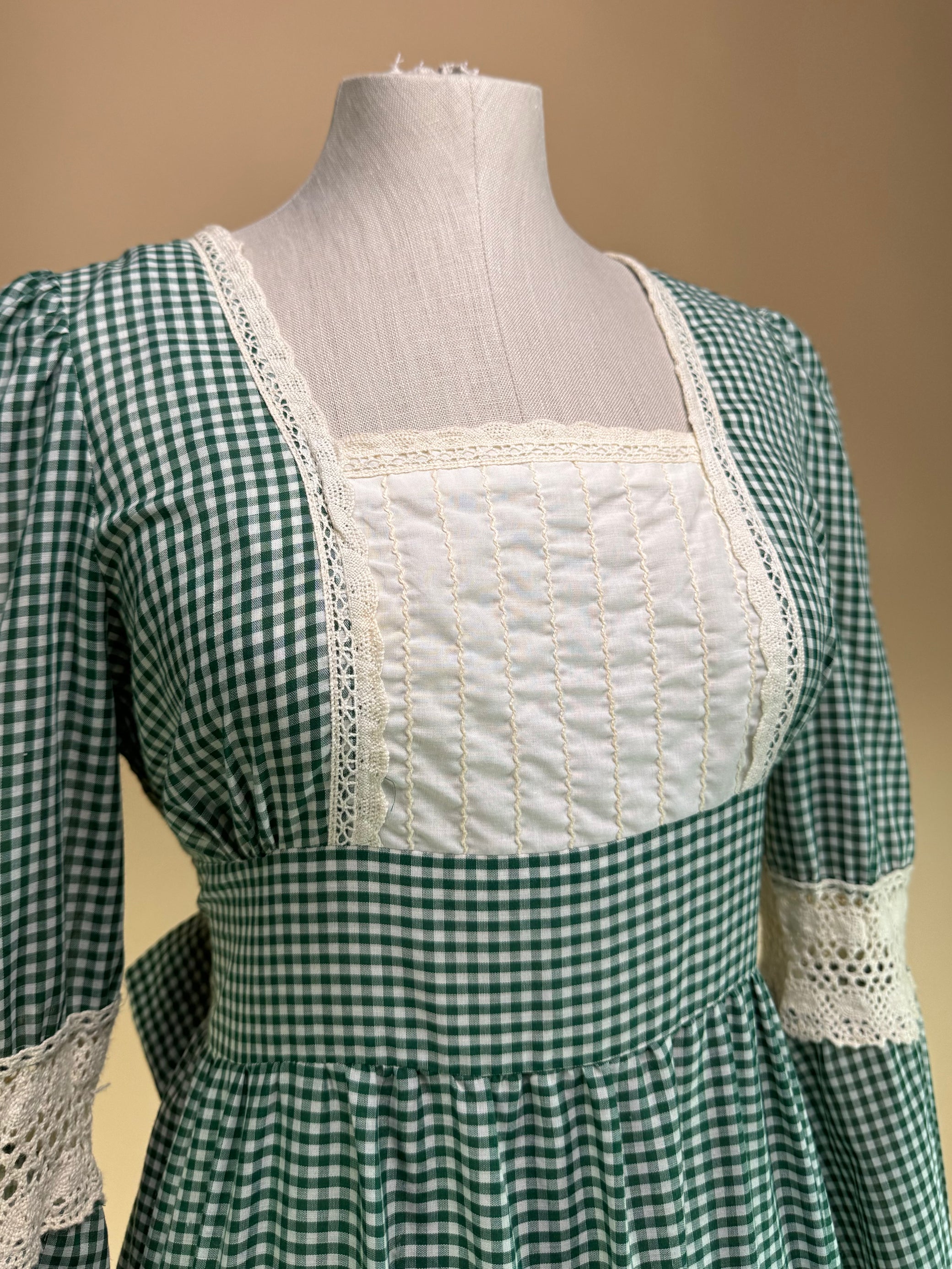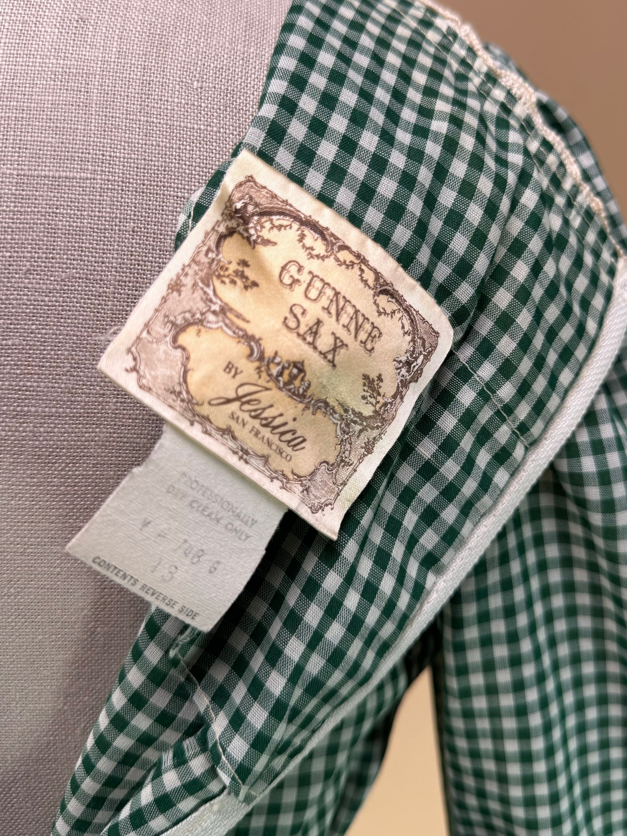 1970s - Gunne Sax Gold Label Green Checkard Dress