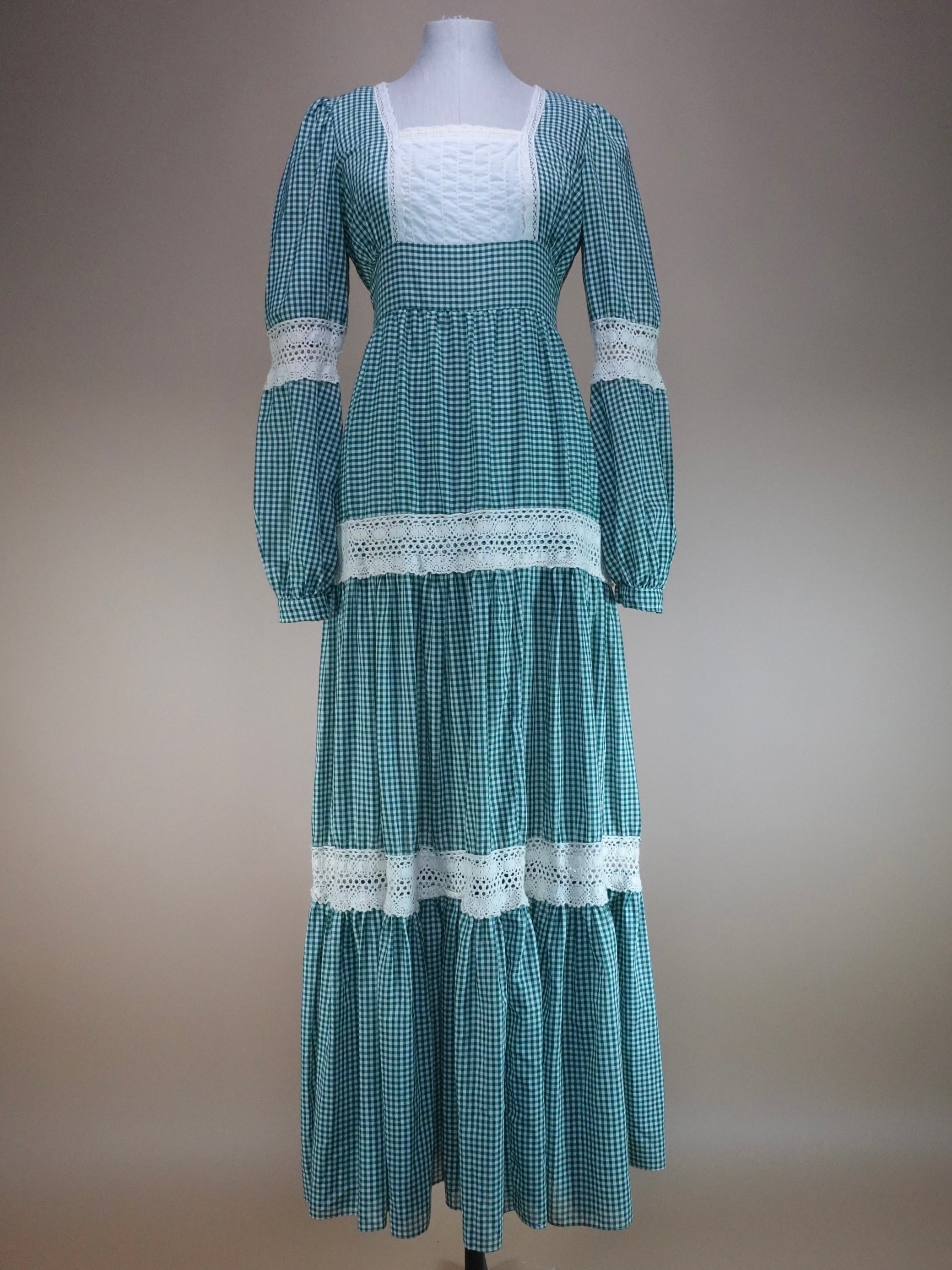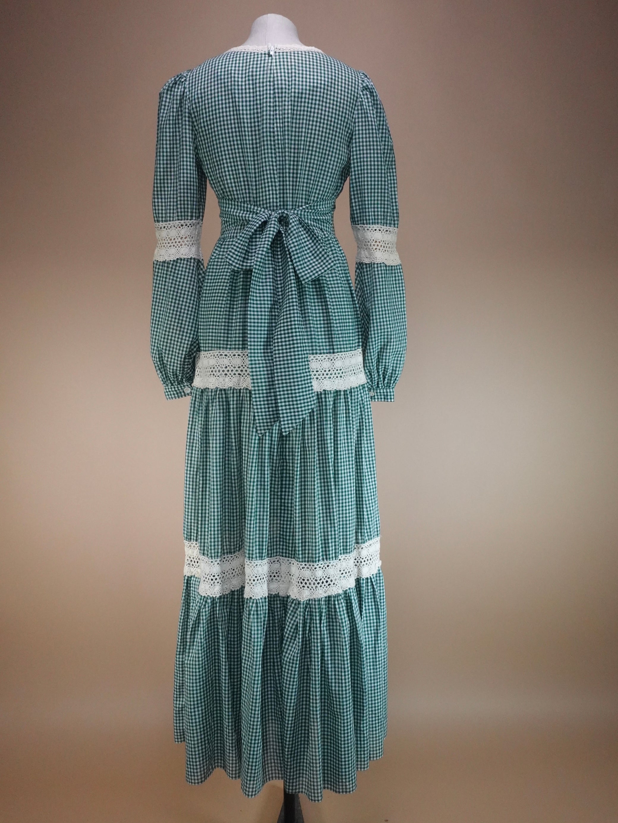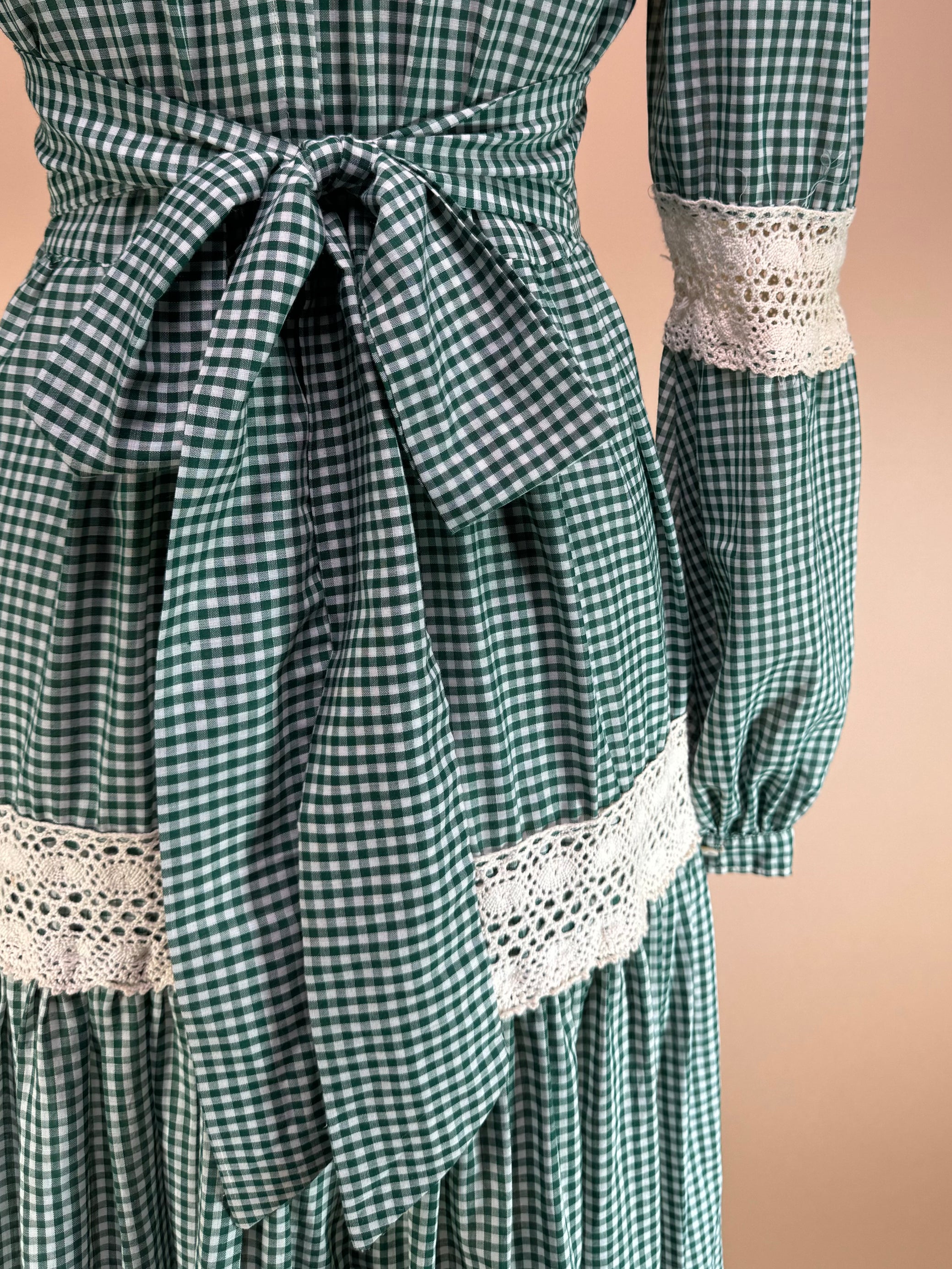 1970s - Gunne Sax Gold Label Green Checkard Dress