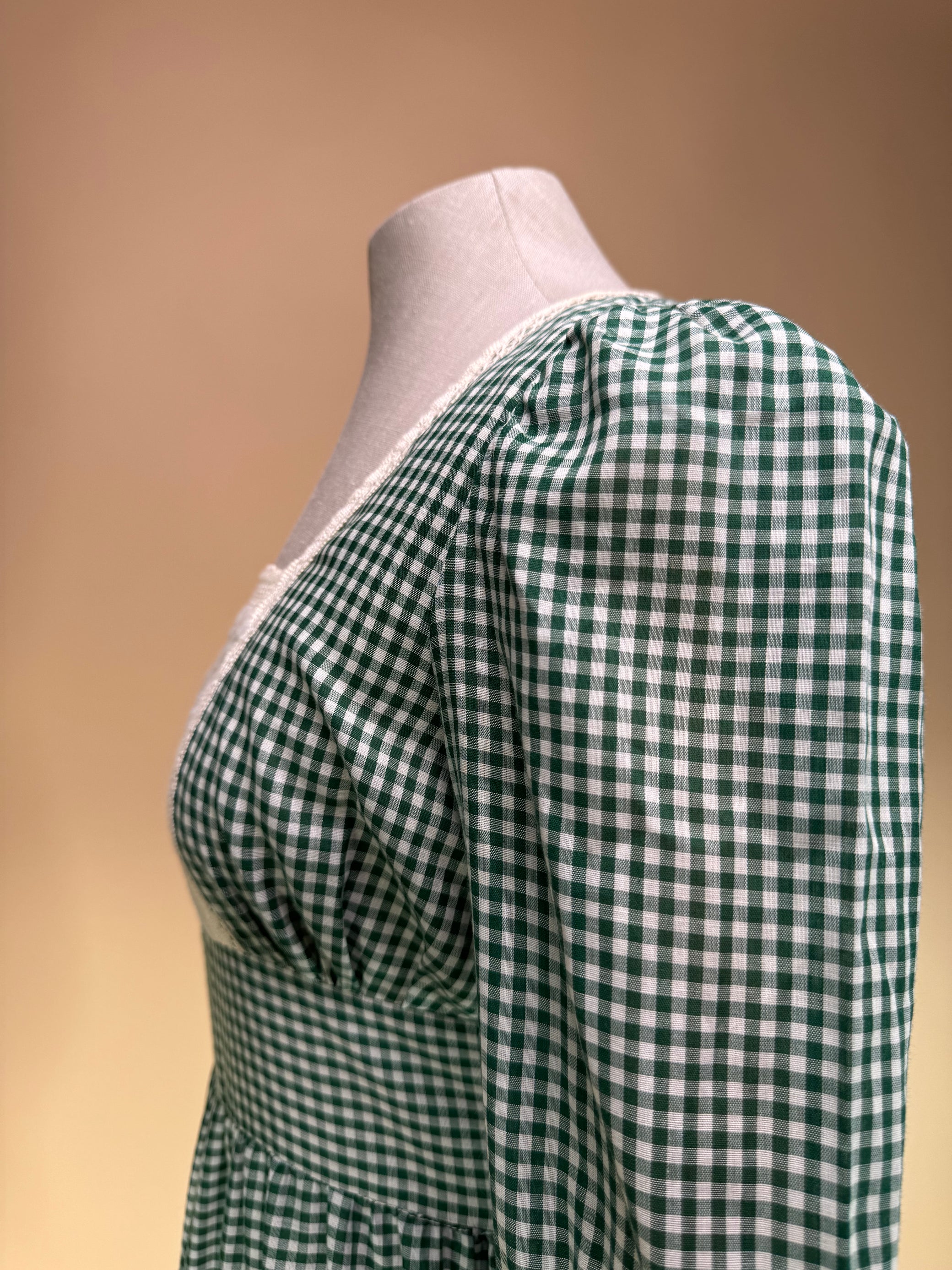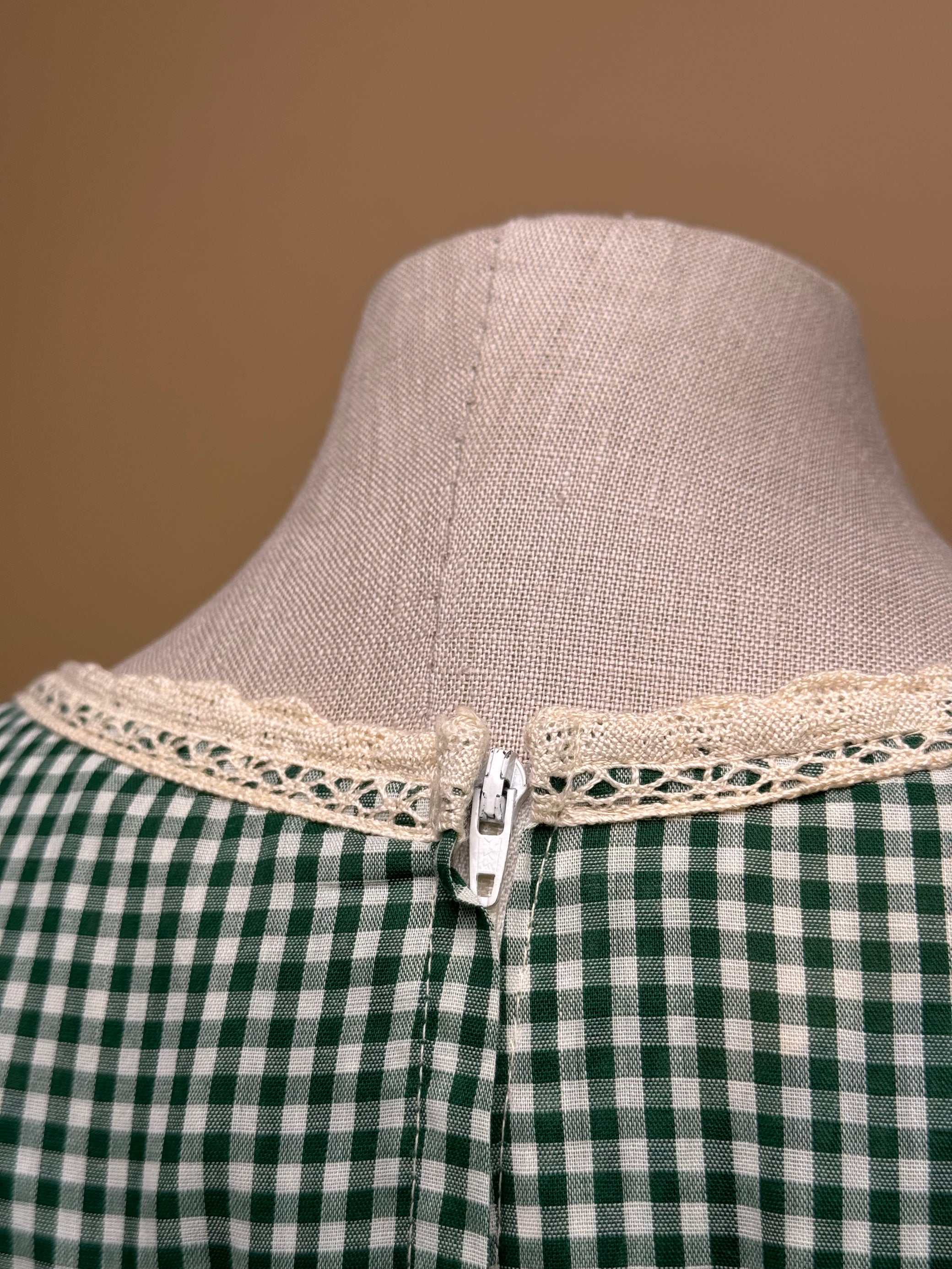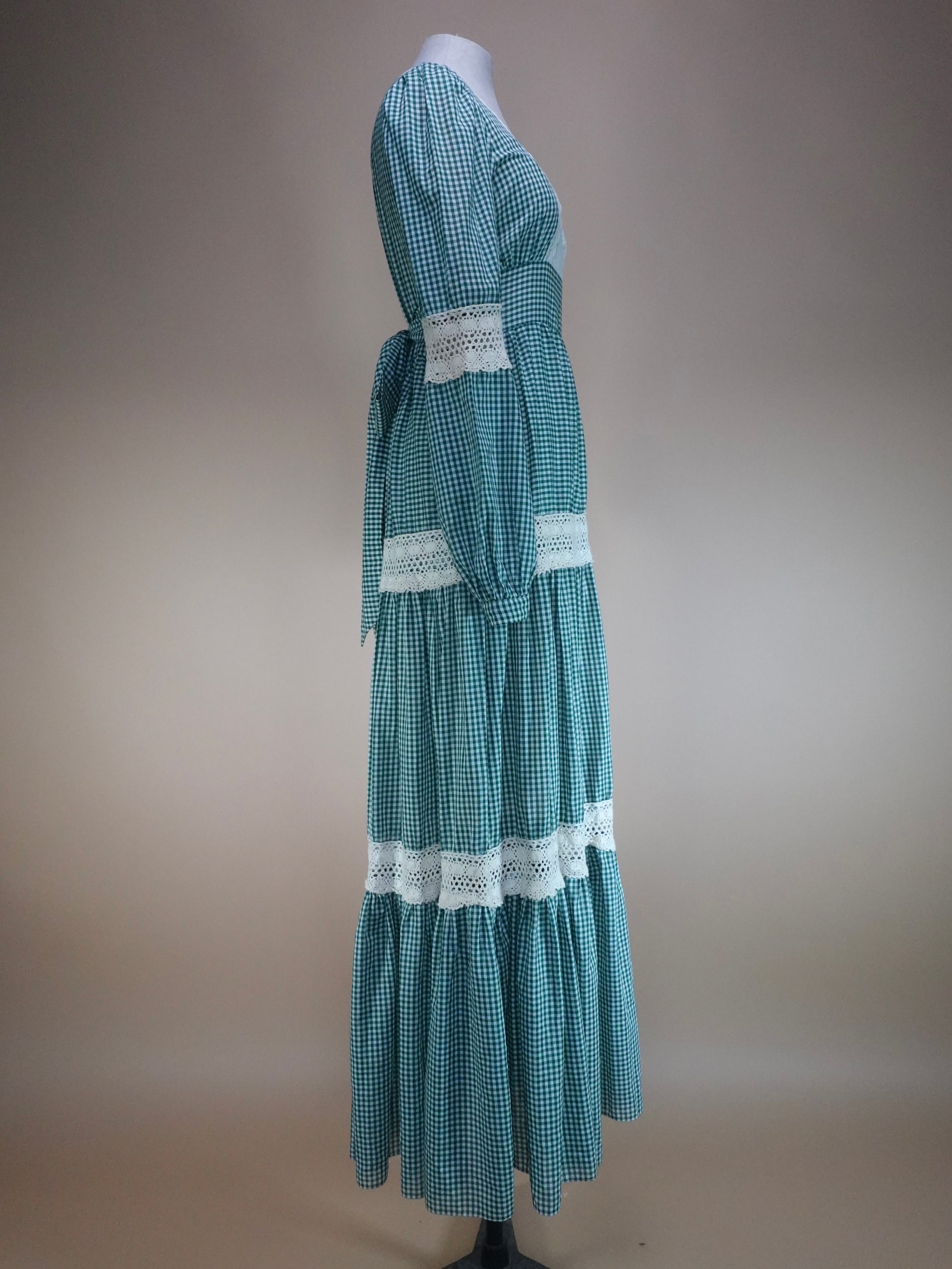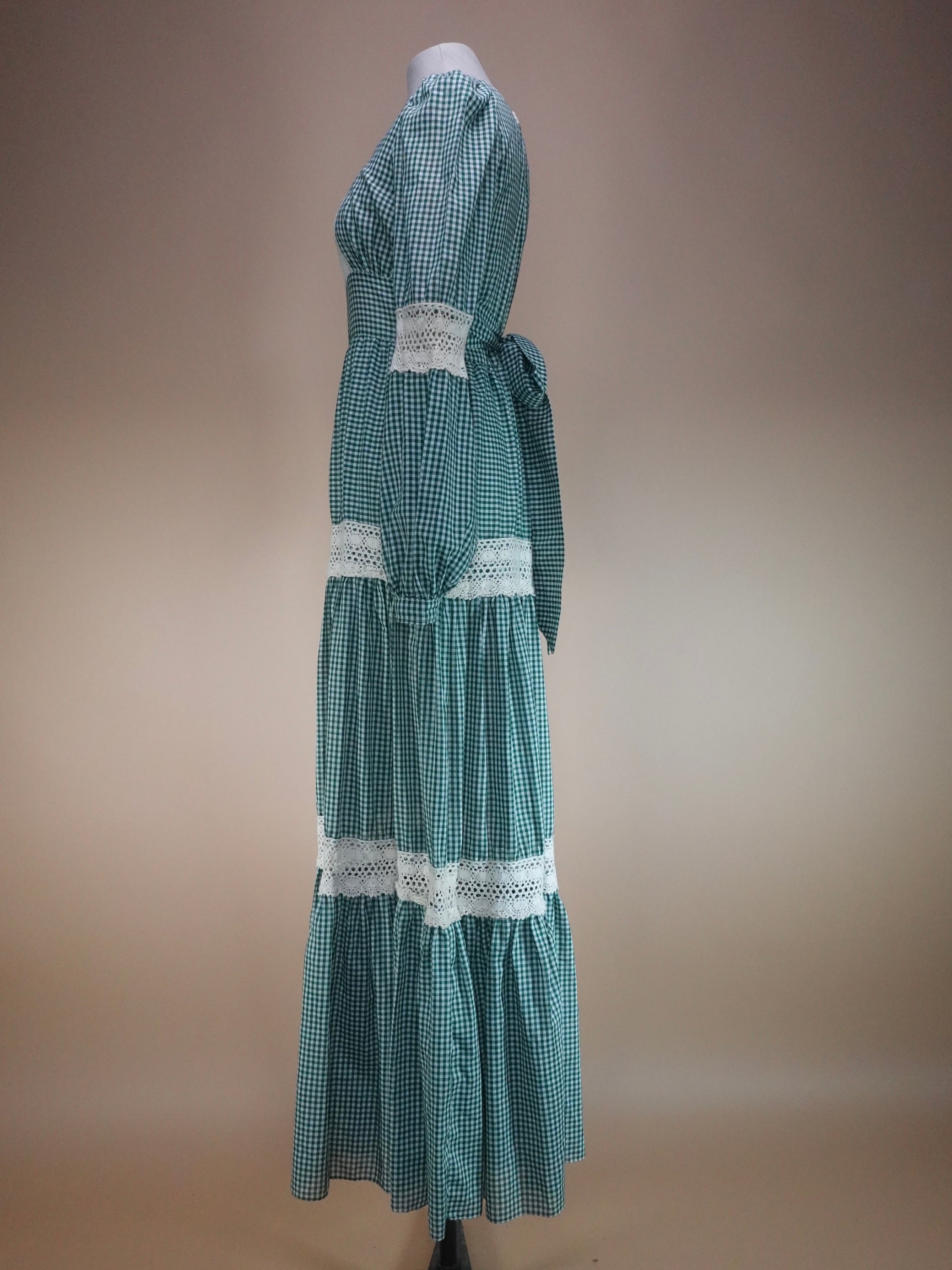 1970s - Gunne Sax Gold Label Green Checkard Dress