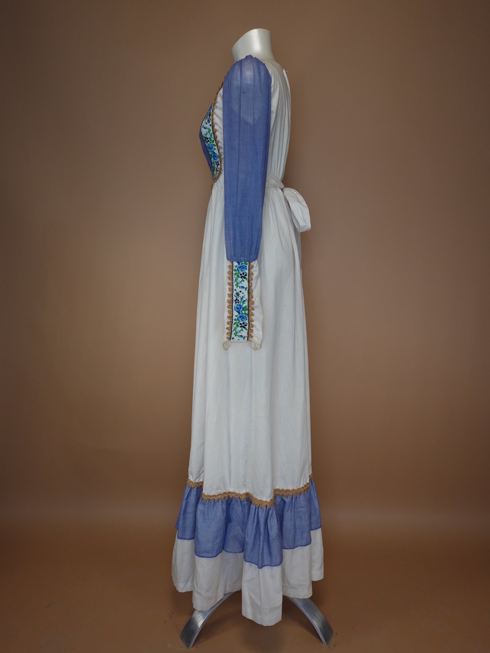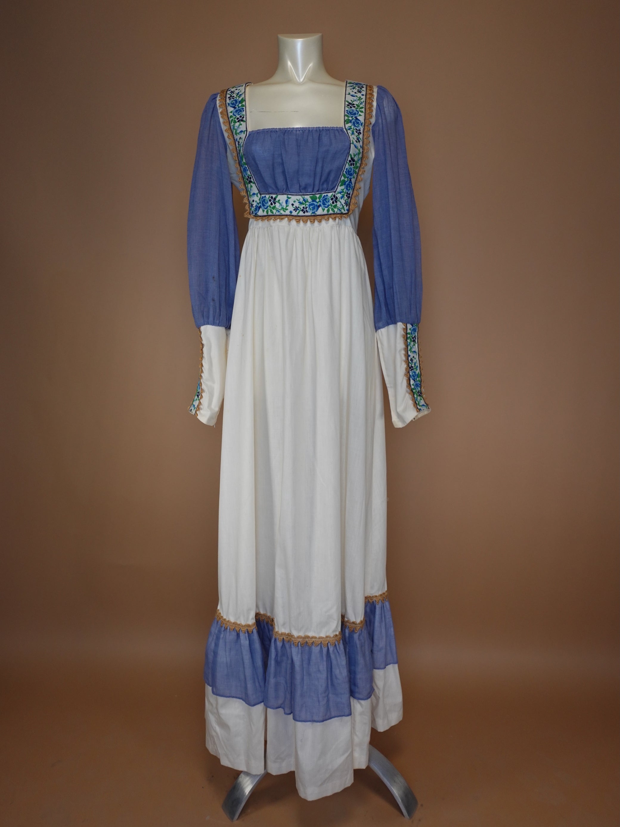 1960s - Gunne Sax Style Prairie Girl Dress with Embroidered Bust Detailing