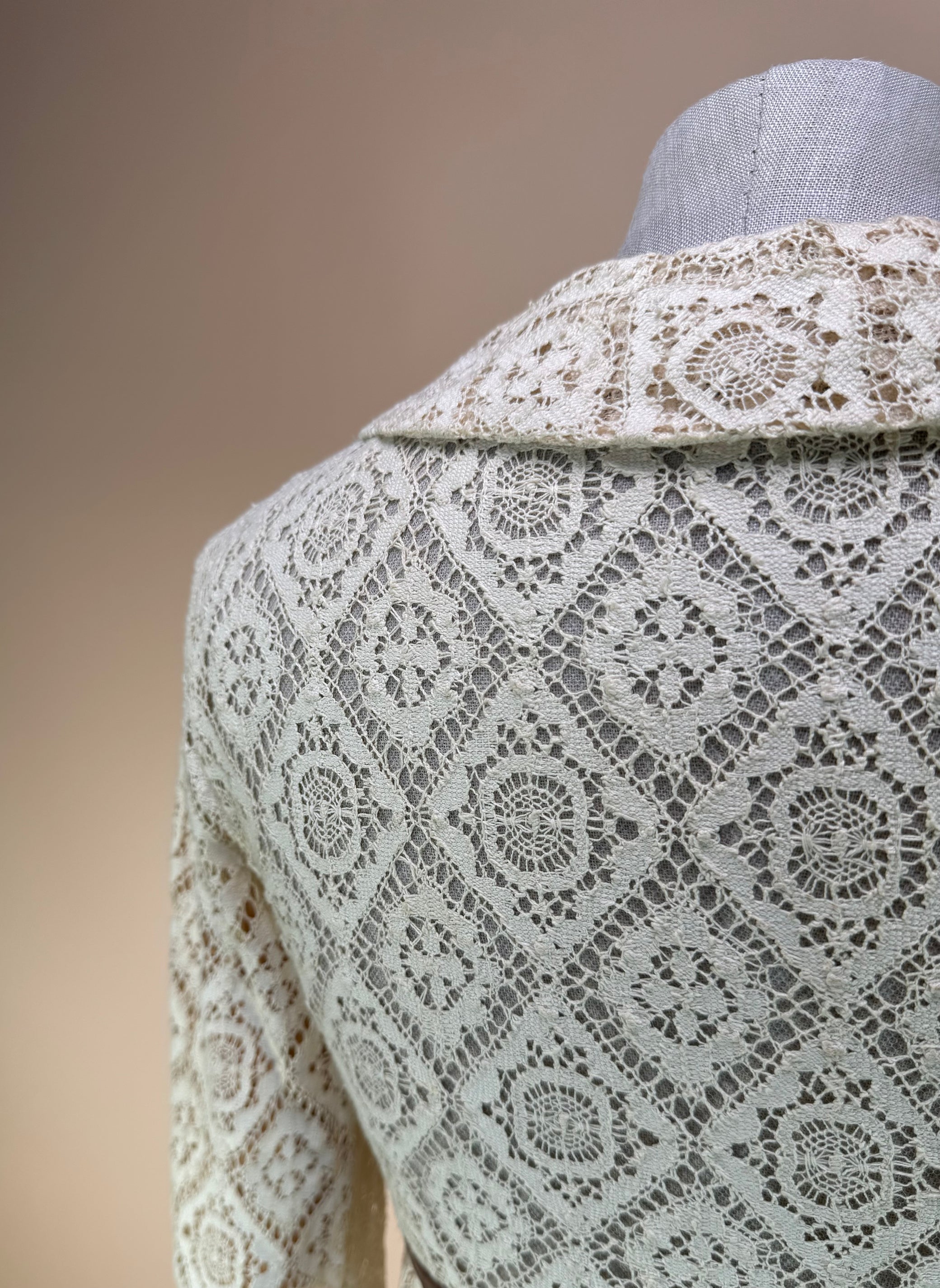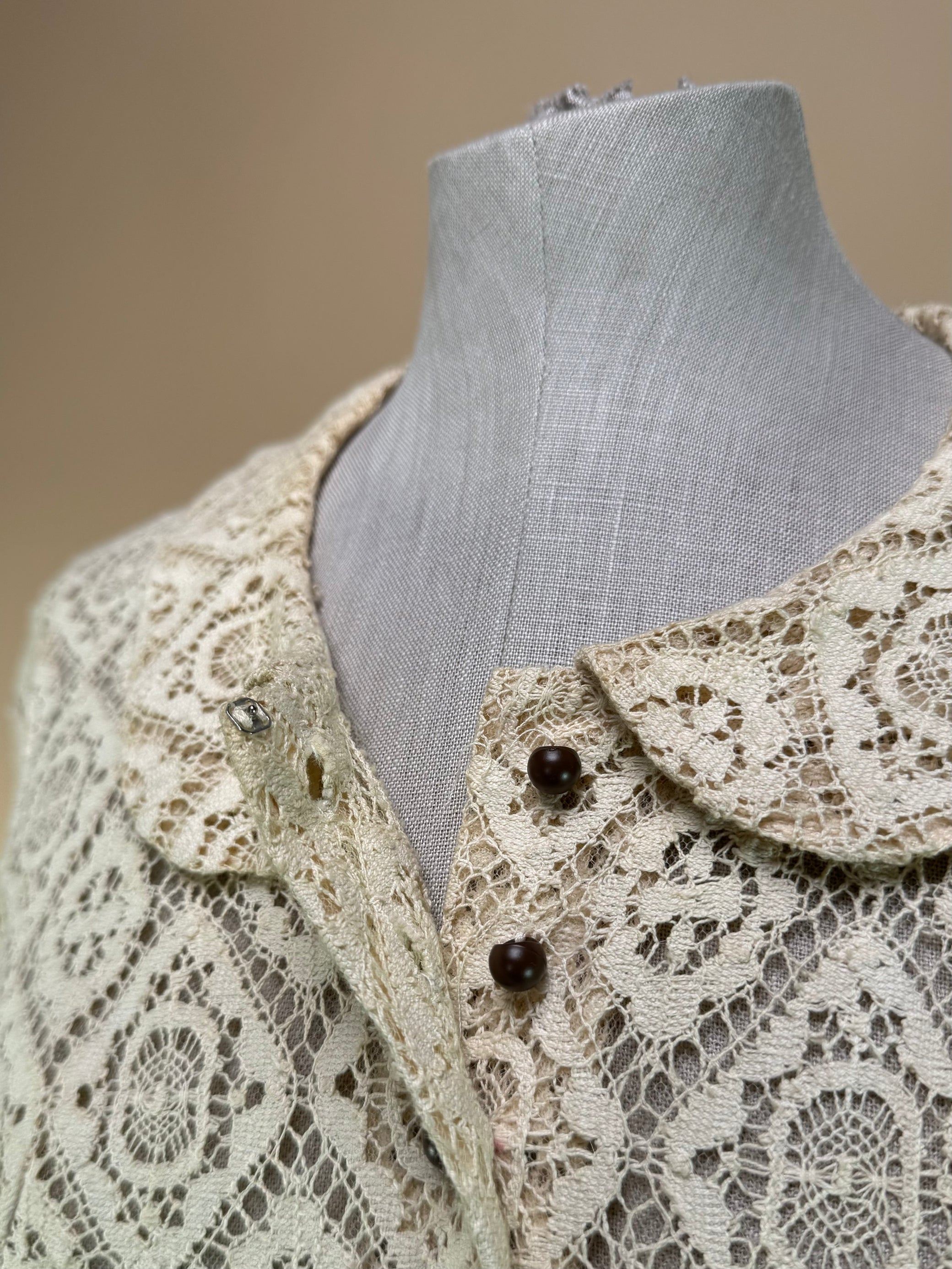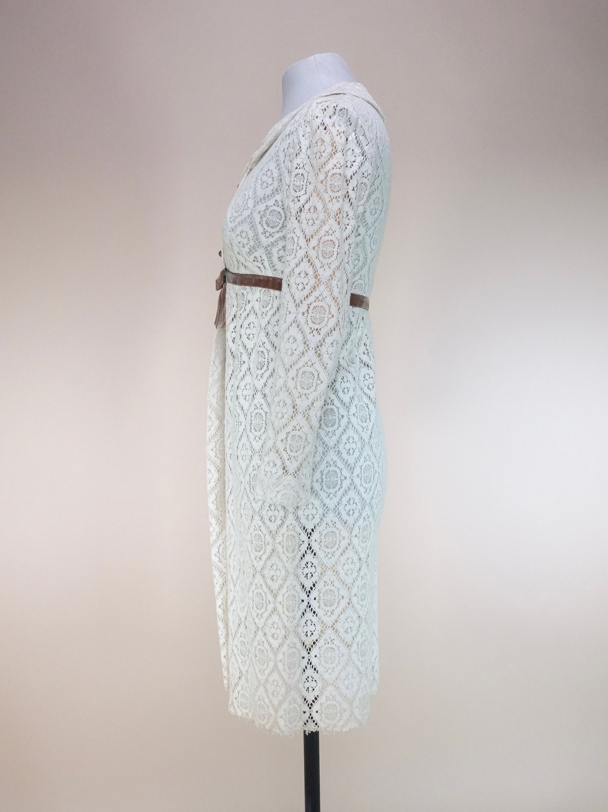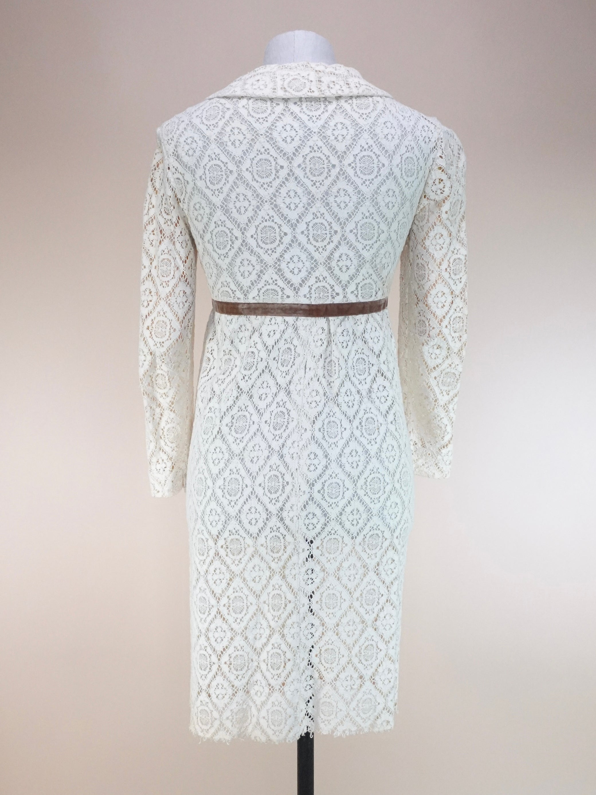 1960s - Made In London Open Front Lace Dress With Velvet Waist Ribbon Detailing