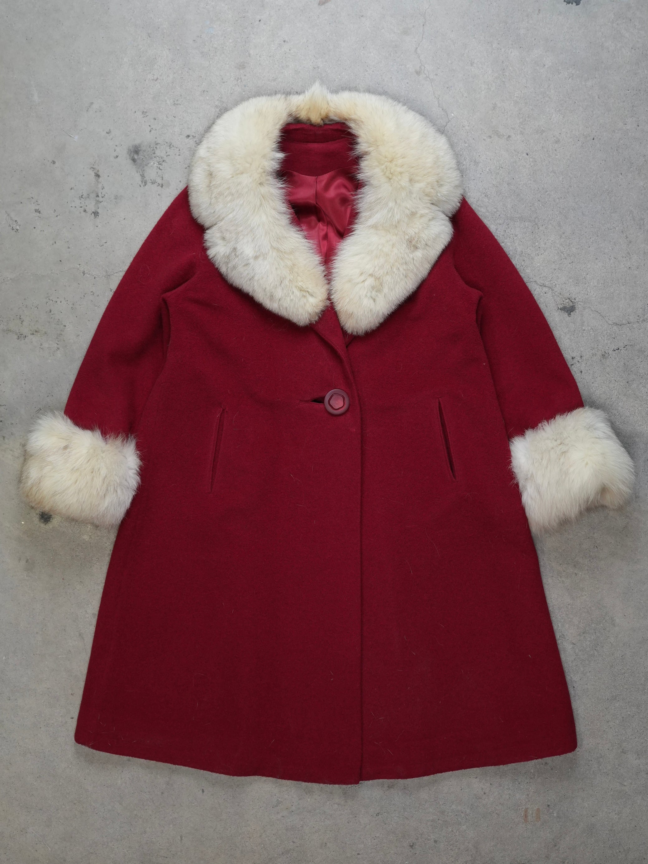 Vintage 1960s - Velveteen Fur Trimmed Wool Coat