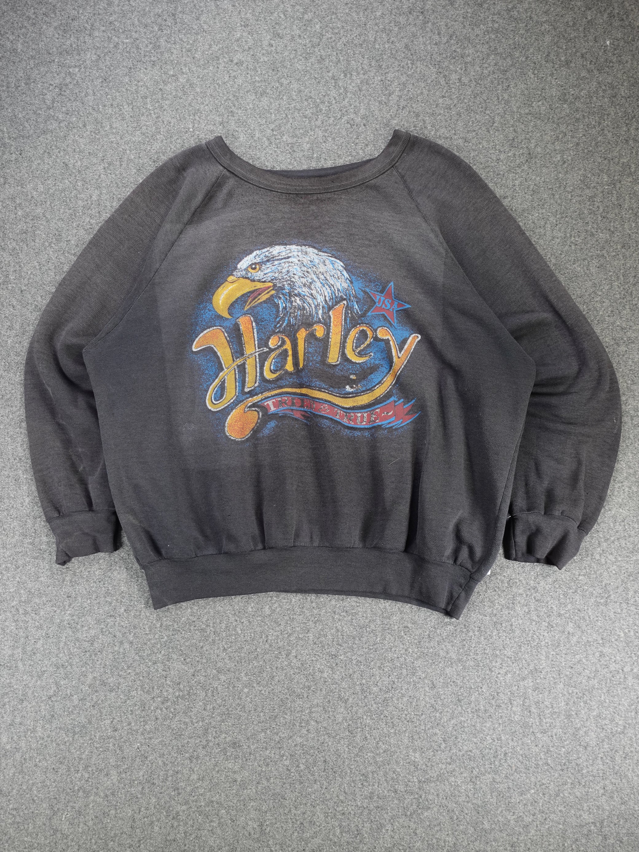 Vintage 1970s/80s - Harley Davidson Tried & True 3D Emblem Style Crewneck Sweatshirt