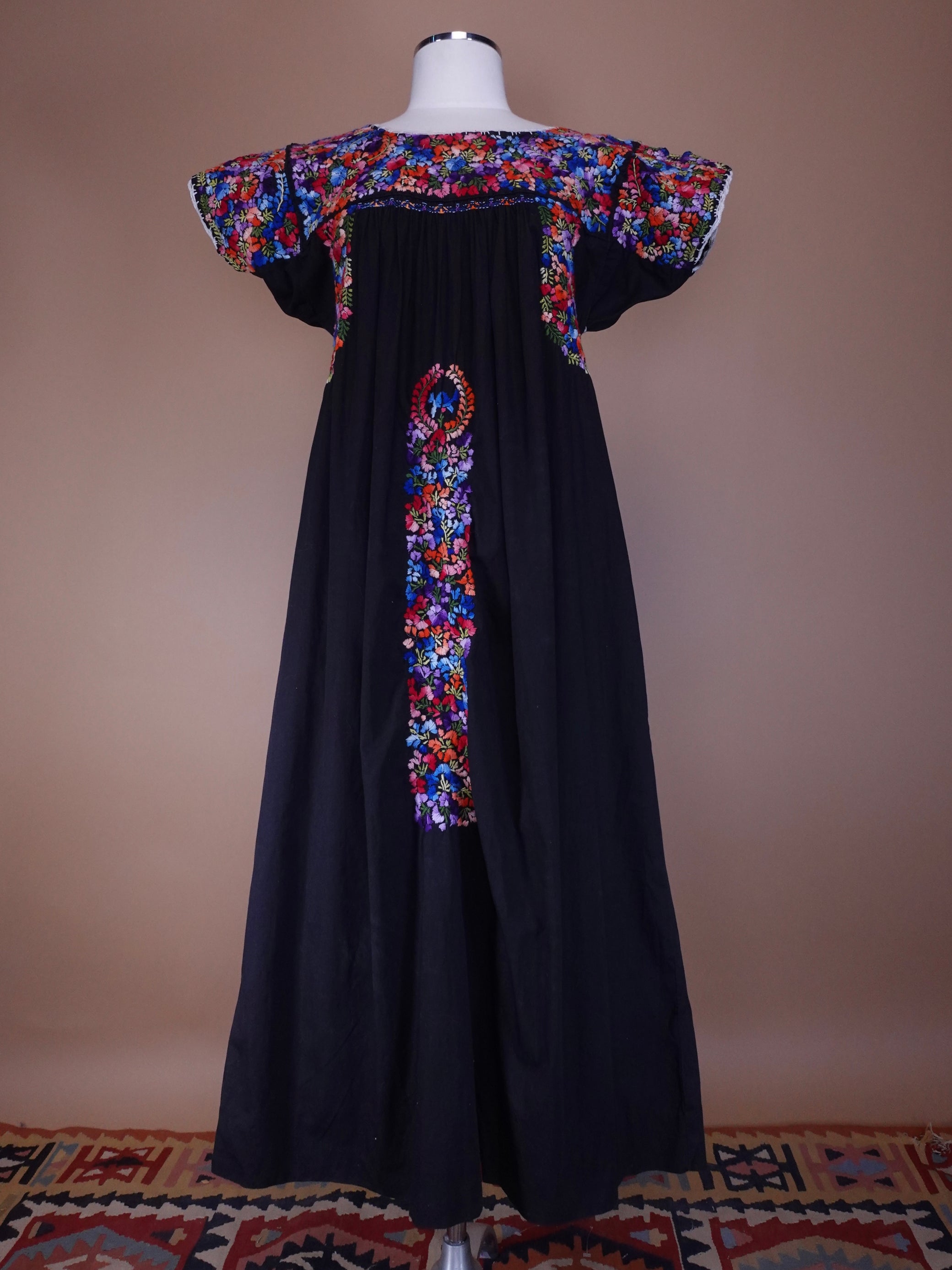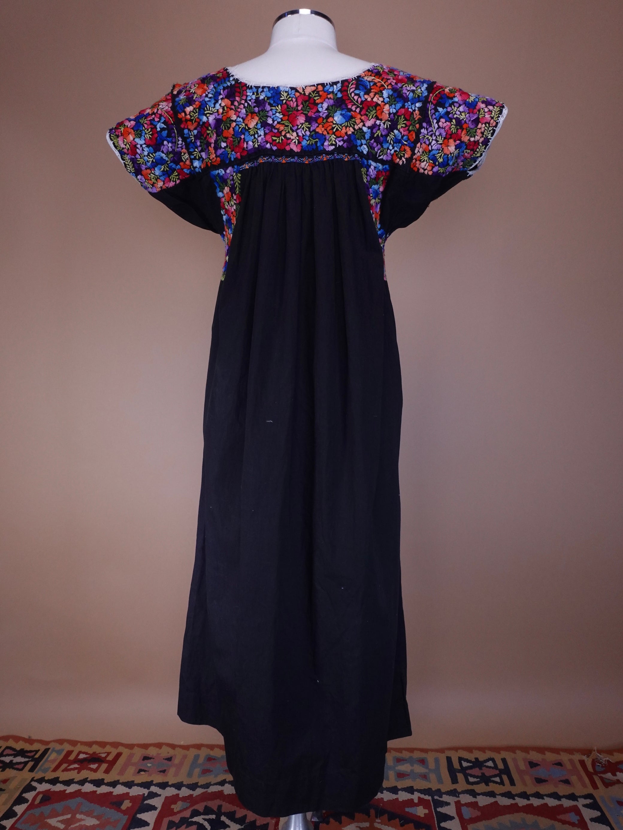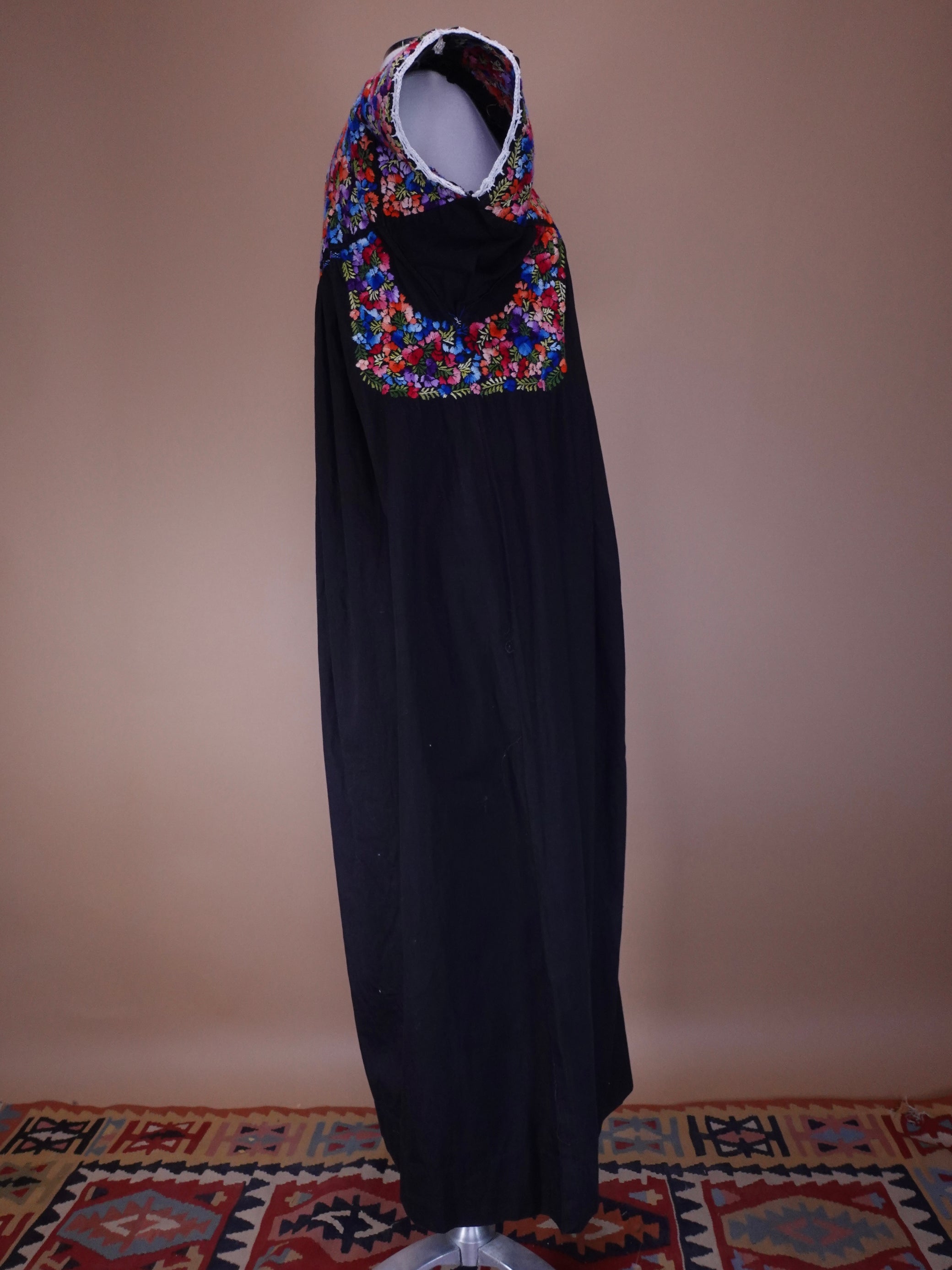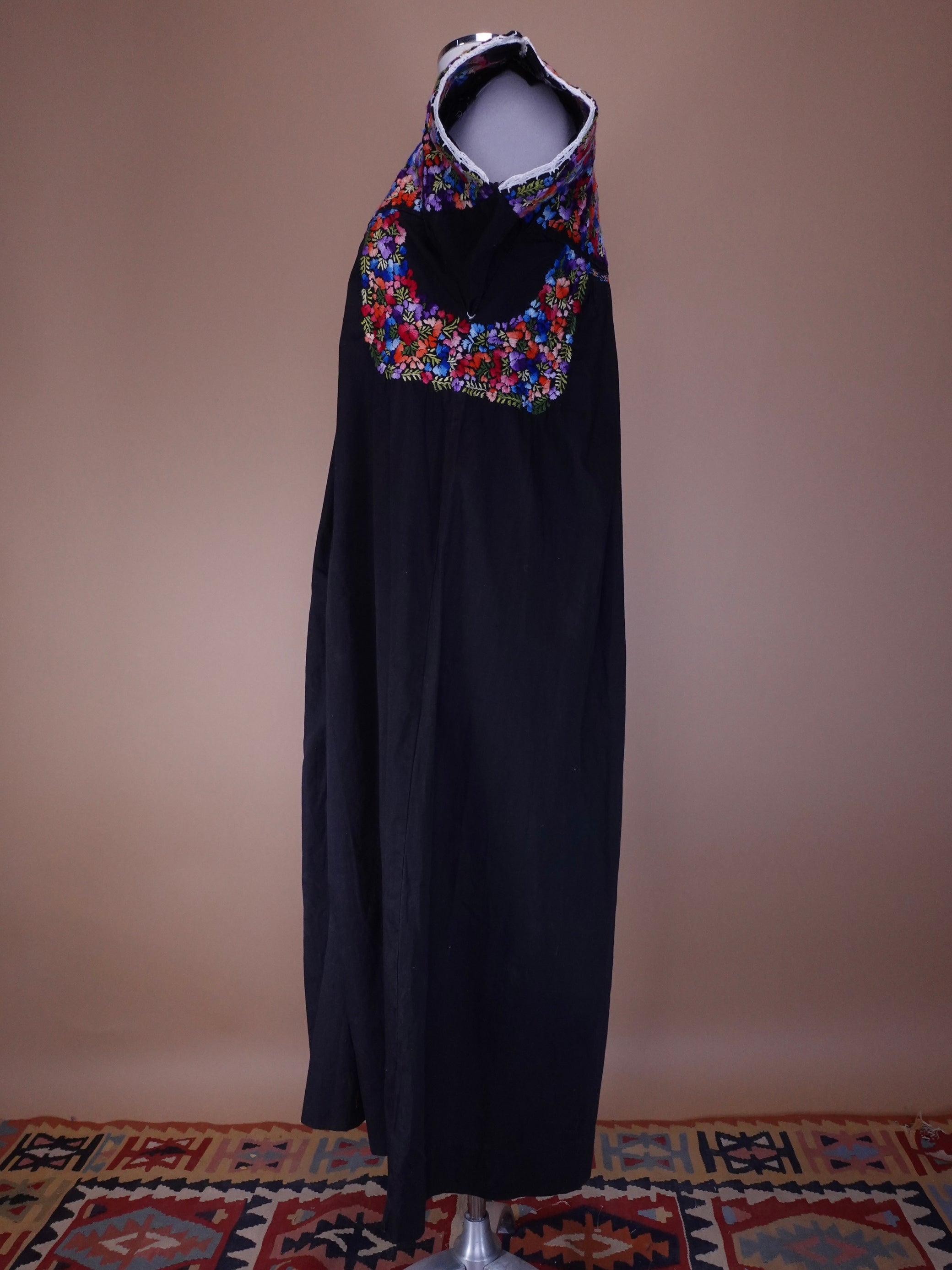 1970s - Black Mexican Hand Embroidered Maxi Length Wedding Dress