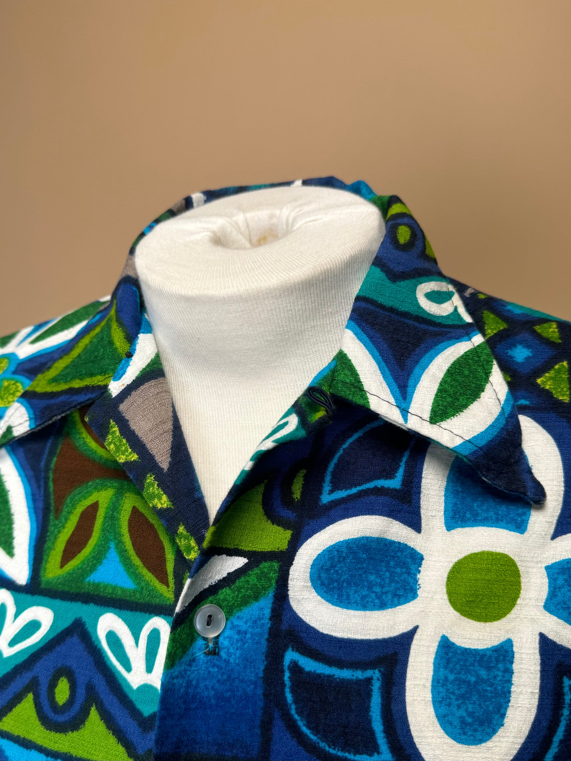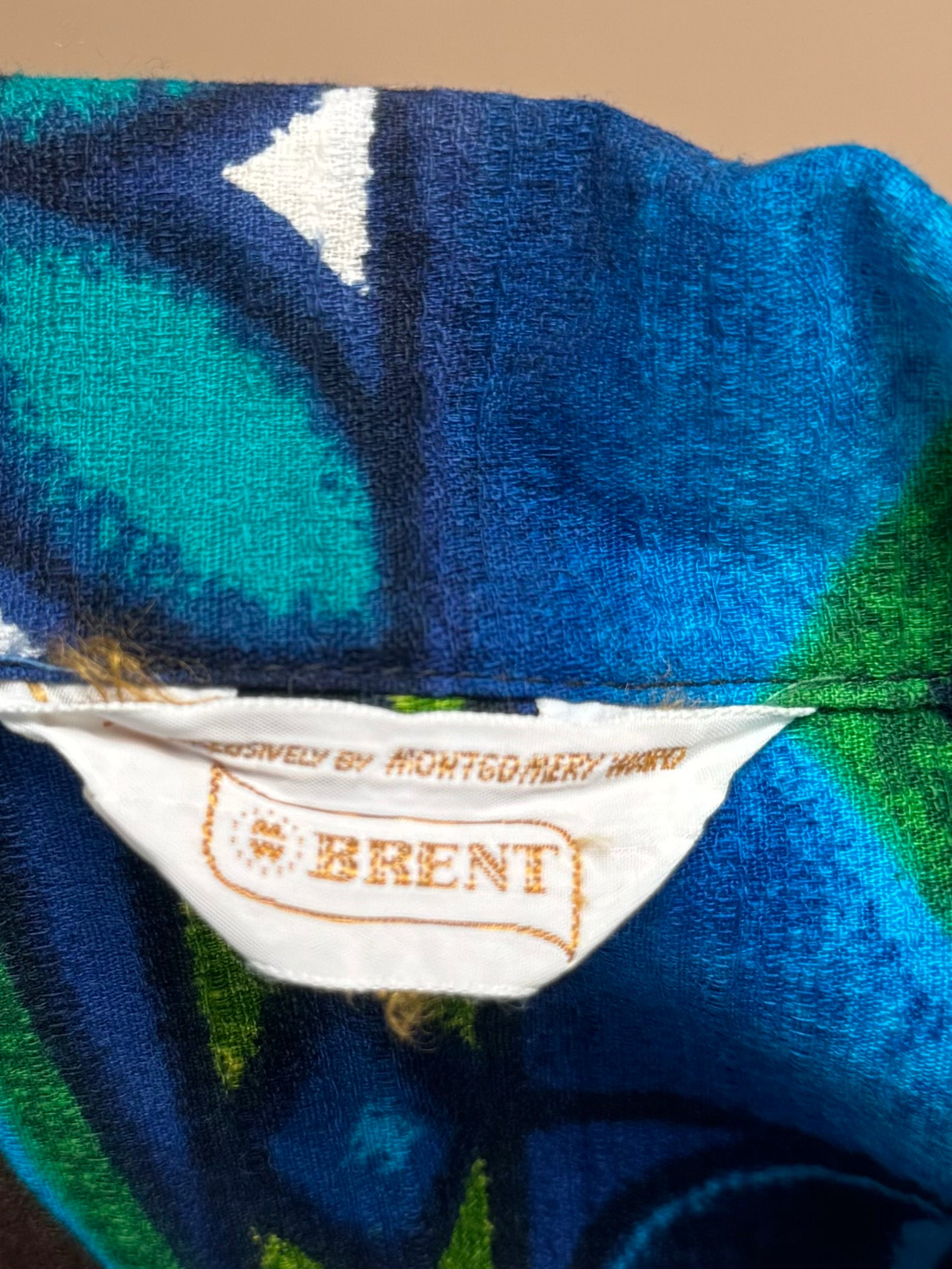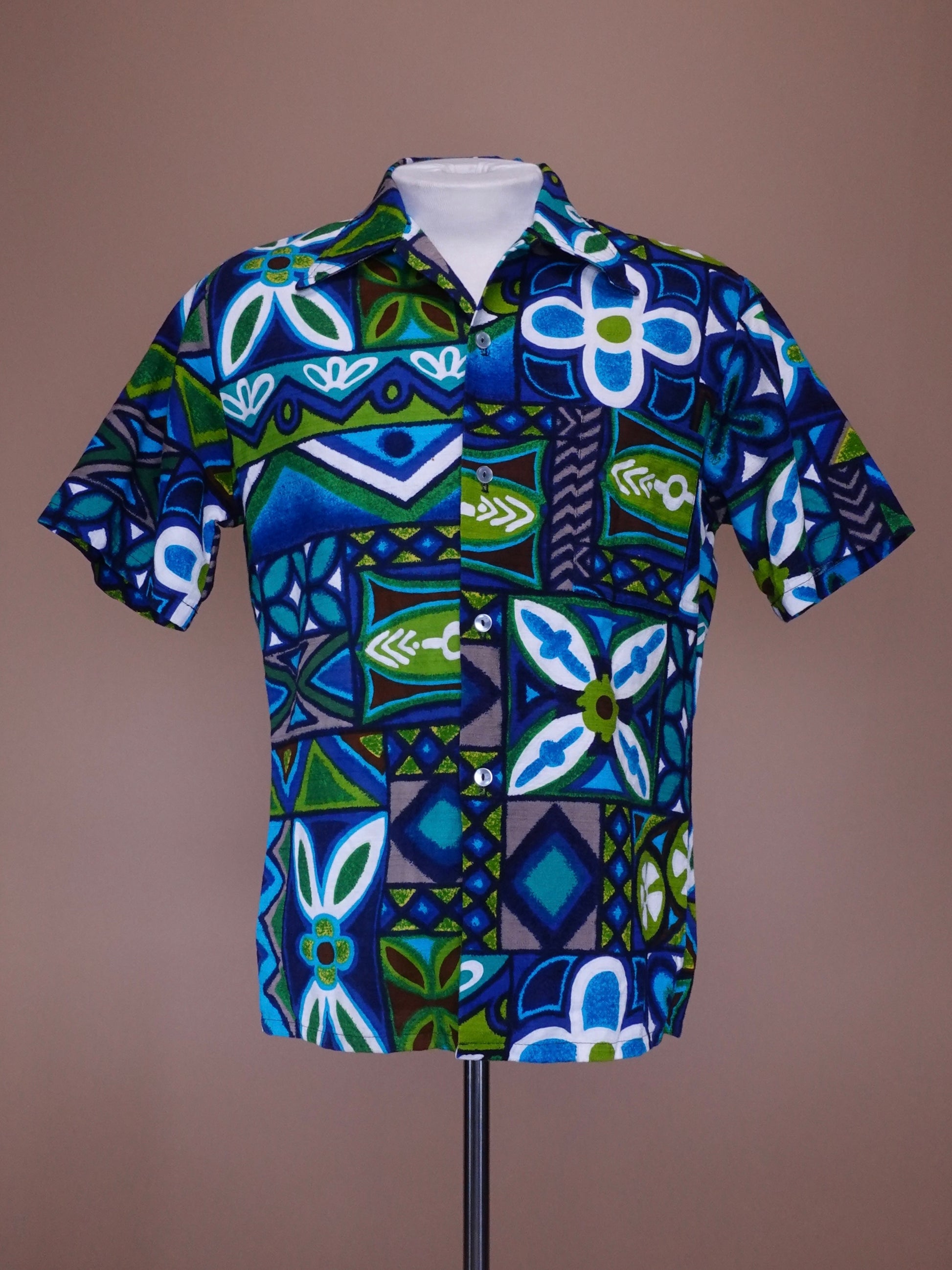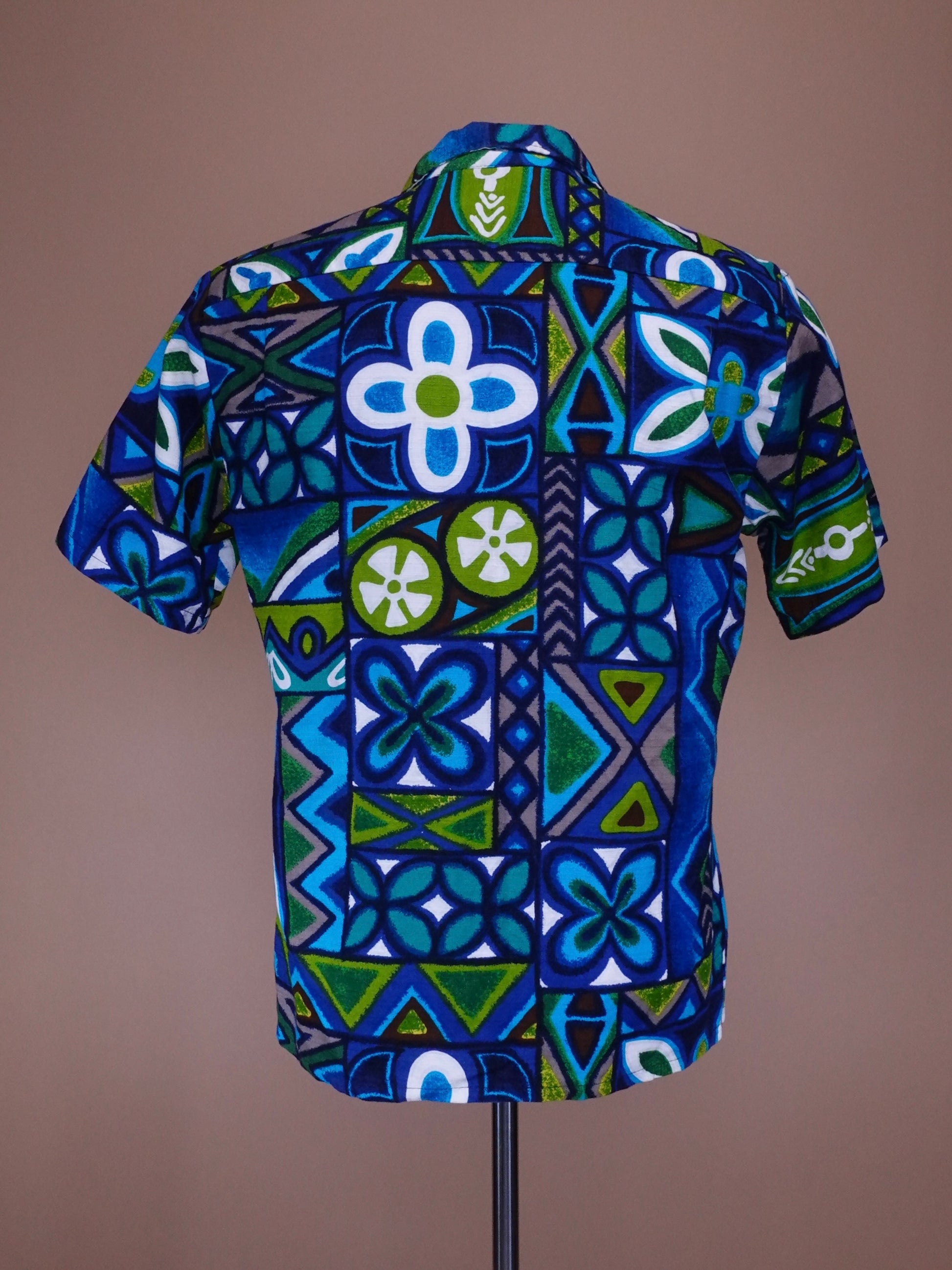 Vintage 1960s - Brent By Montgomery Ward Blue Green Bar Cloth Hawaiian Shirt