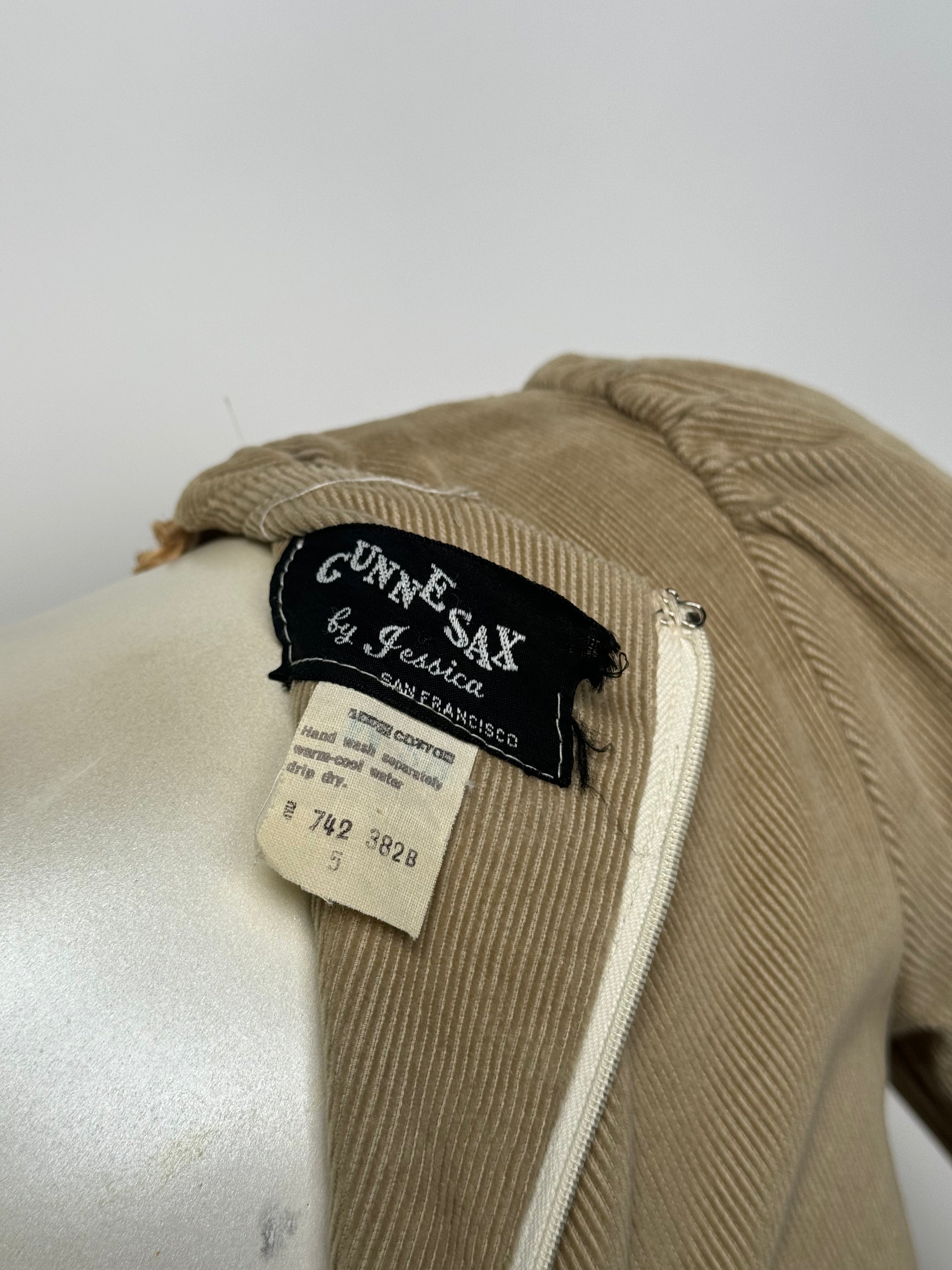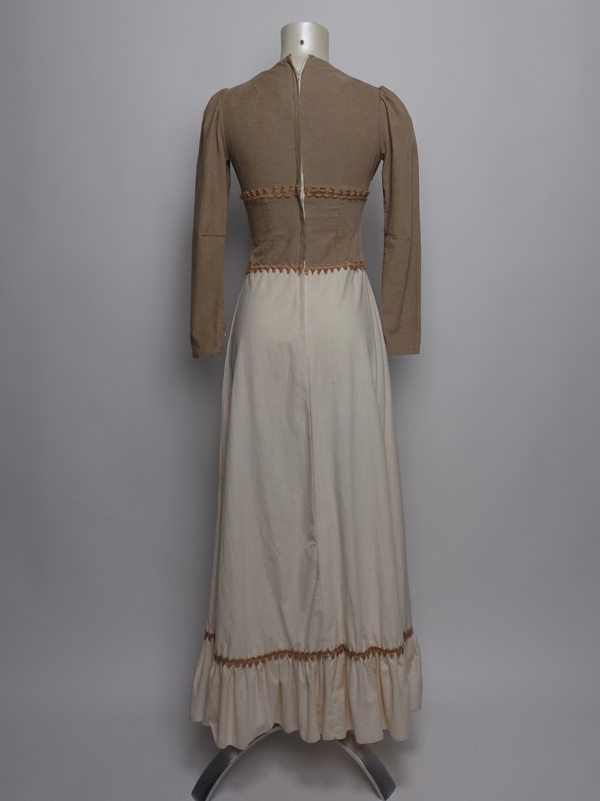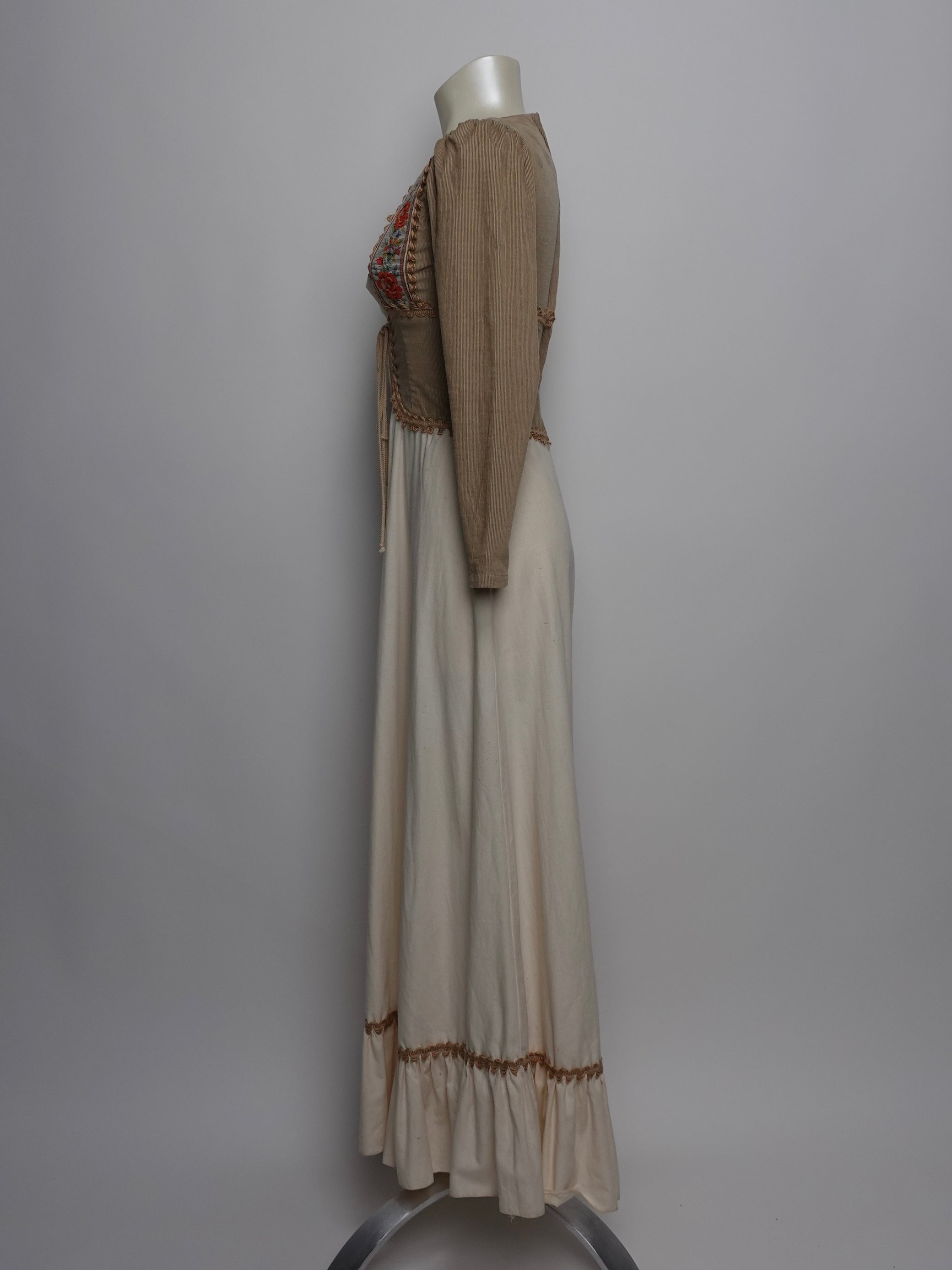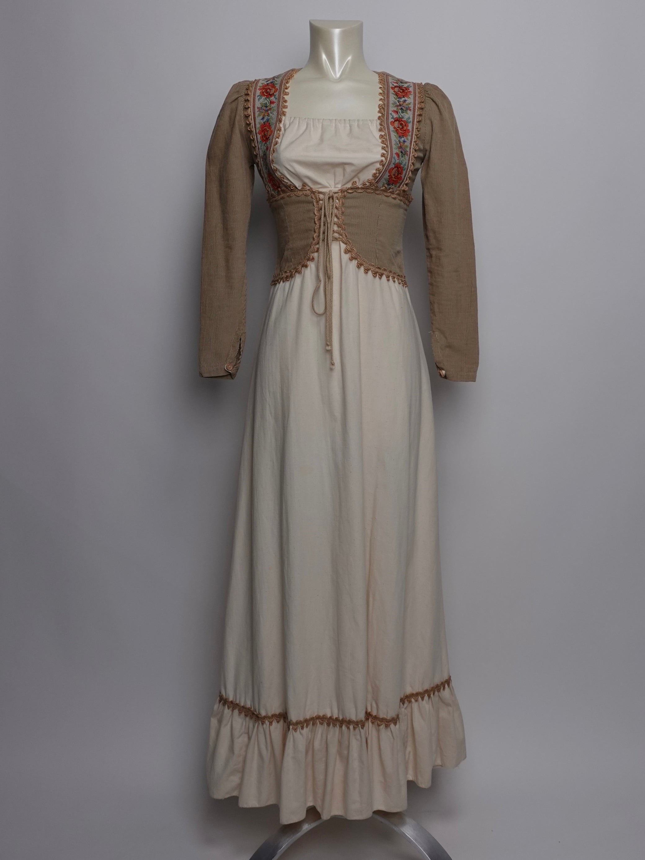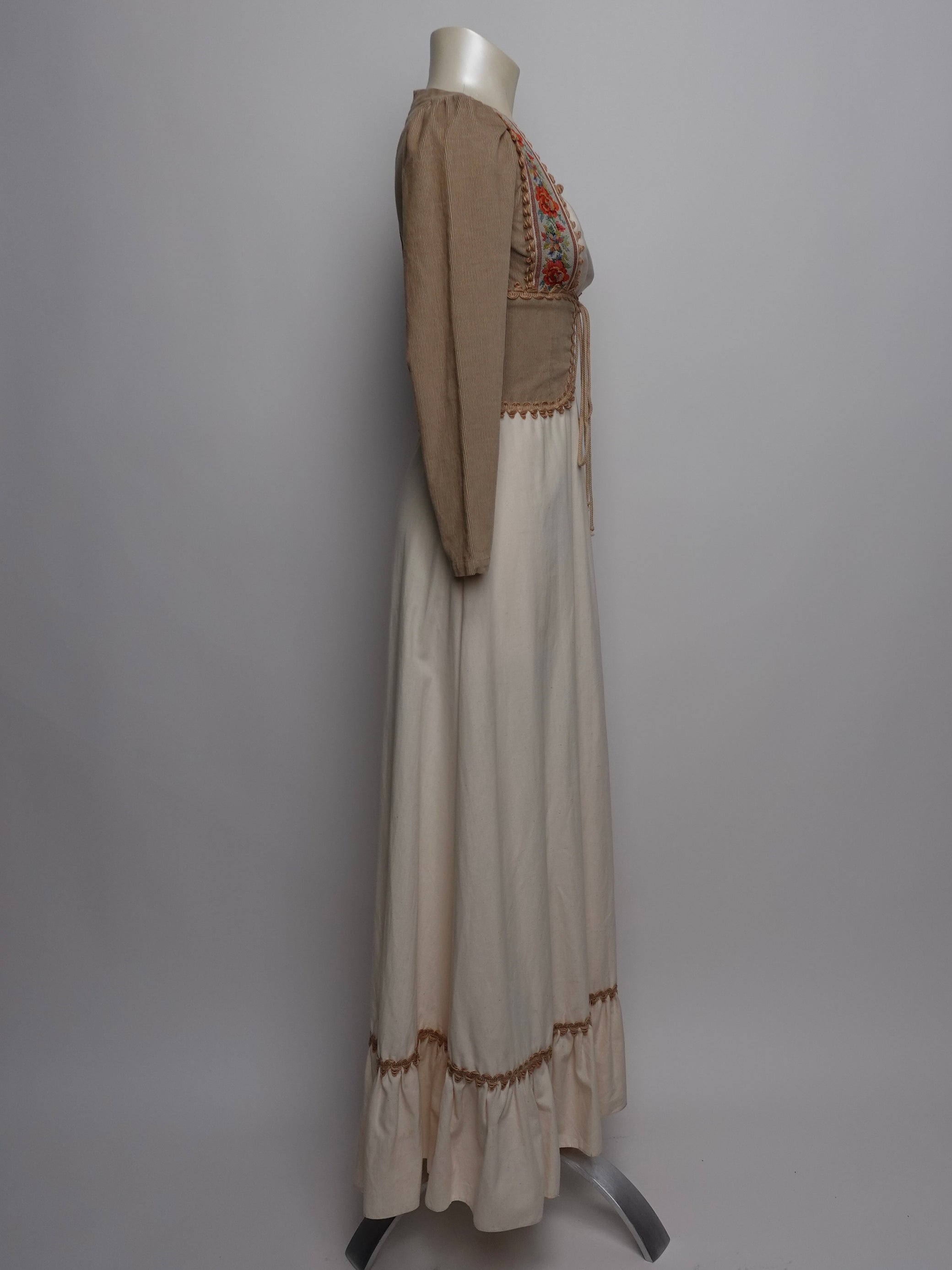 1970S - GUNNE SAX BLACK LABEL CORDUROY EMBROIDERED DRESS