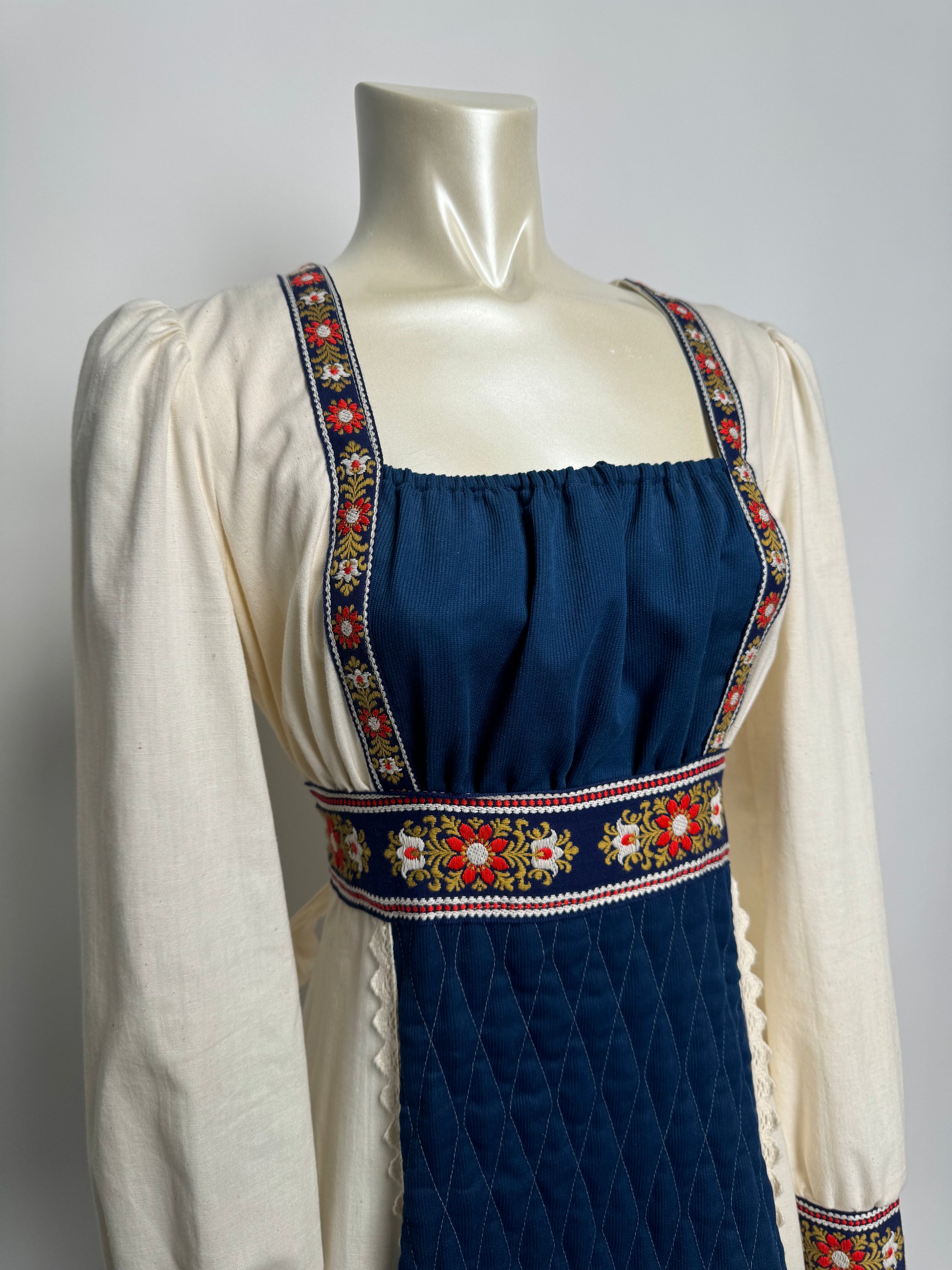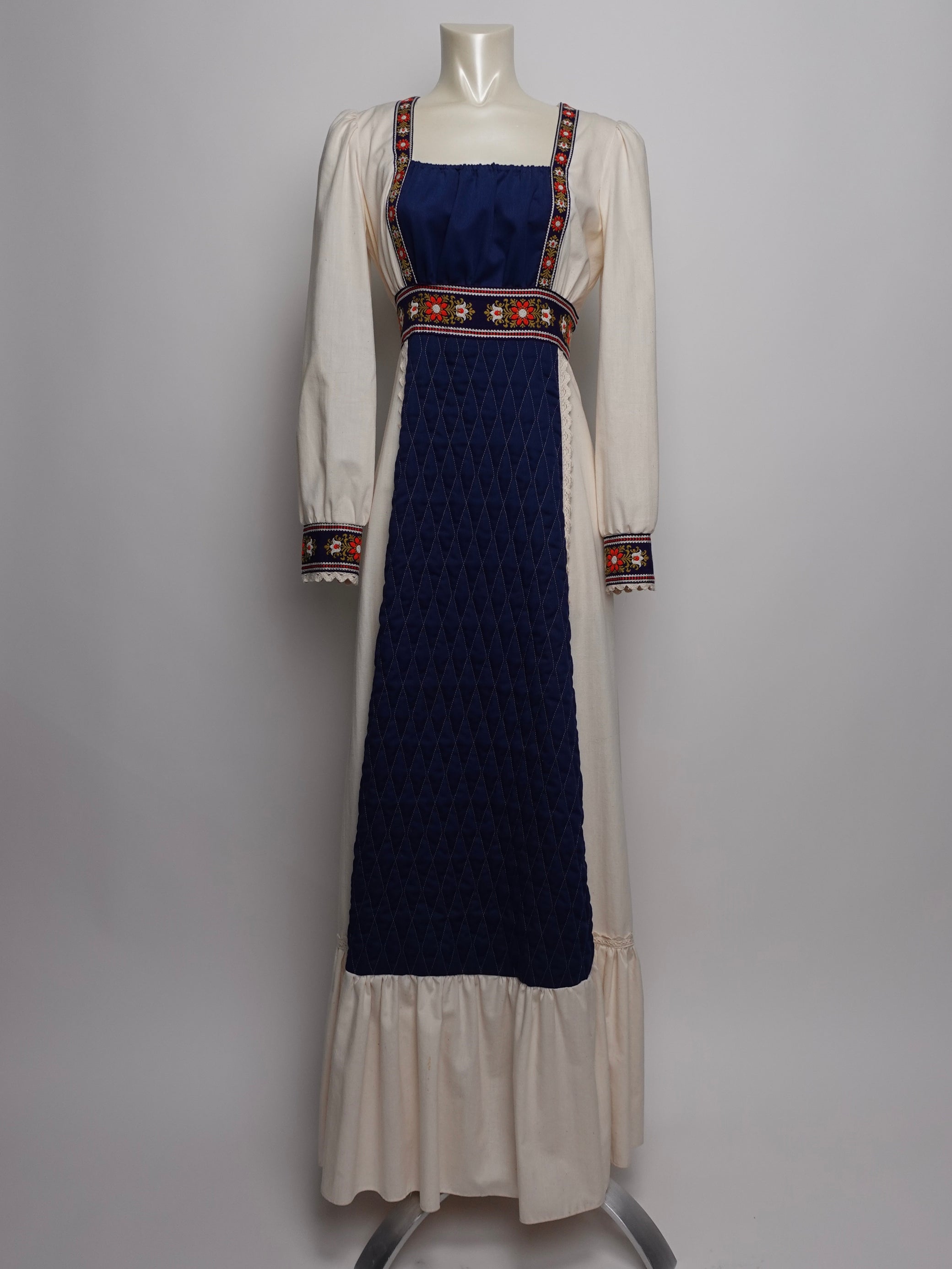 1970S - GUNNE SAX RENAISSANCE MAXI DRESS QUILTED PANEL