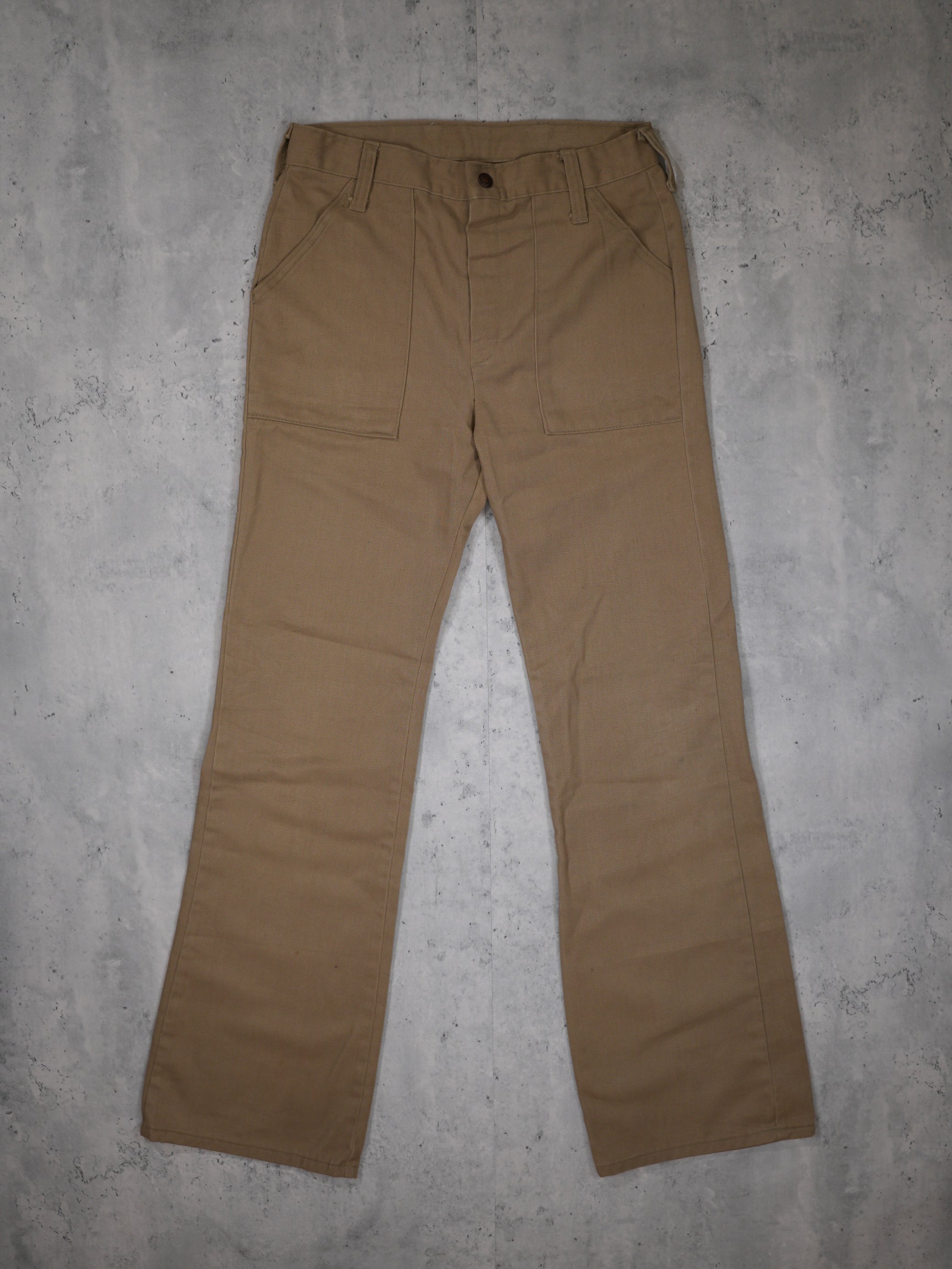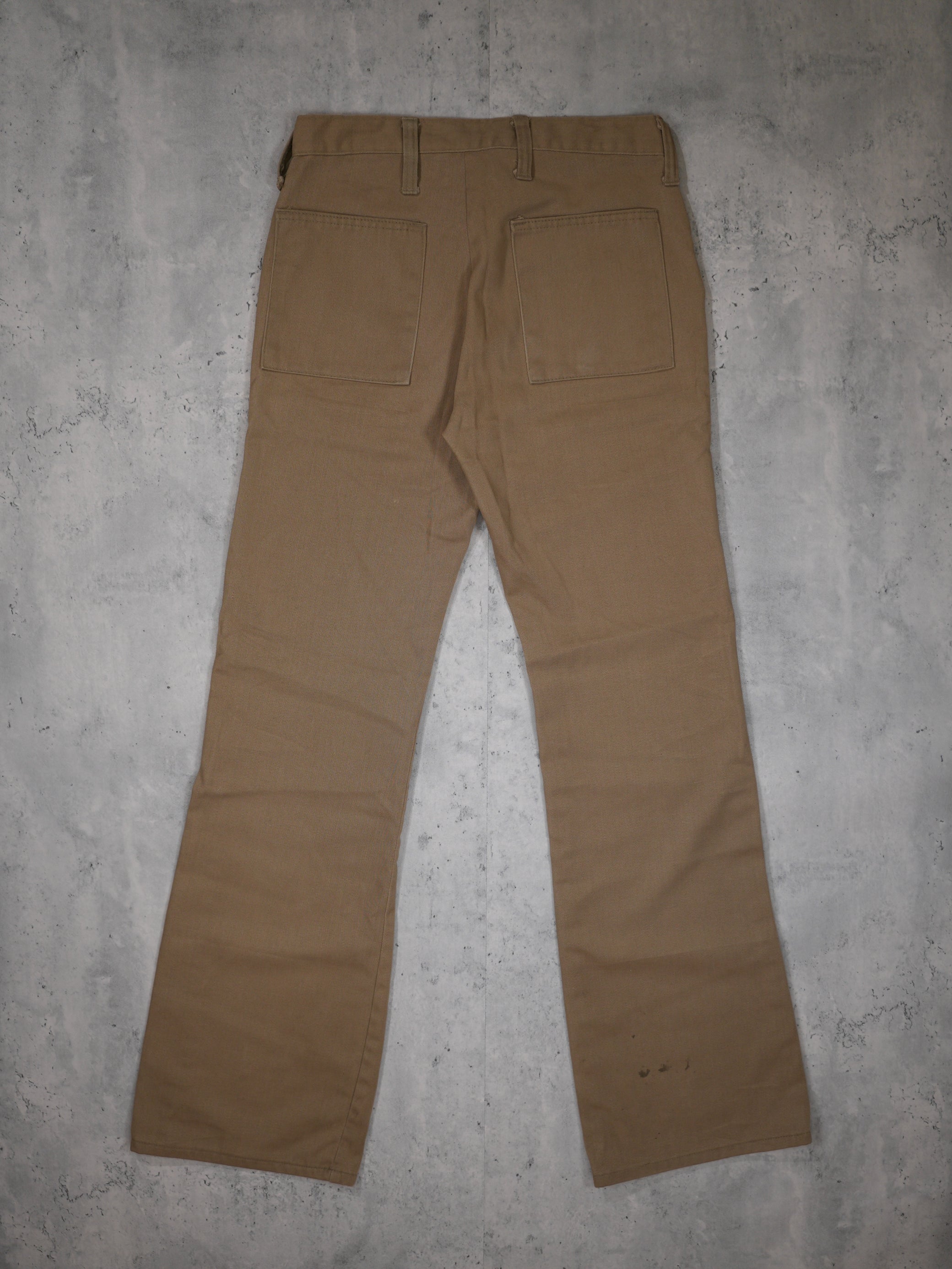 Vintage 1970s - Khaki Baker Pocket Flared Trousers