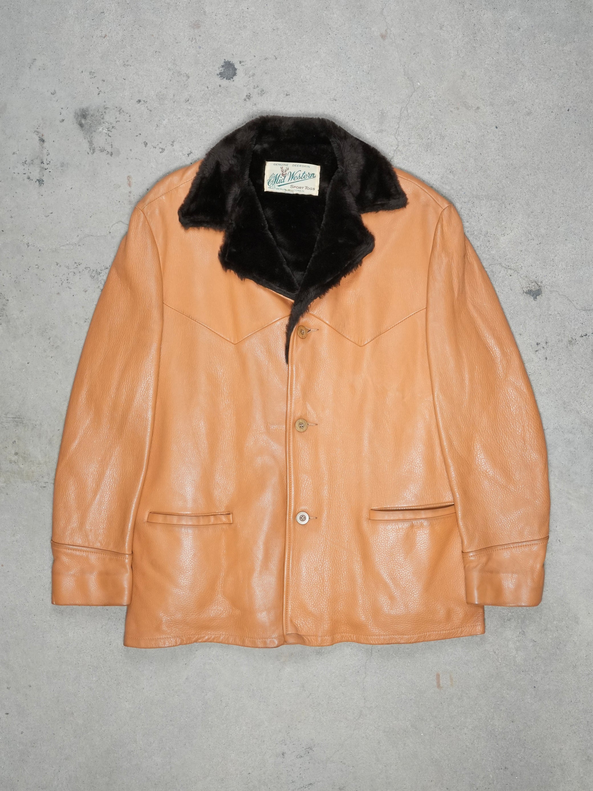 1970S - MIDWESTERN BUCKSKIN FAUX FUR LINED JACET