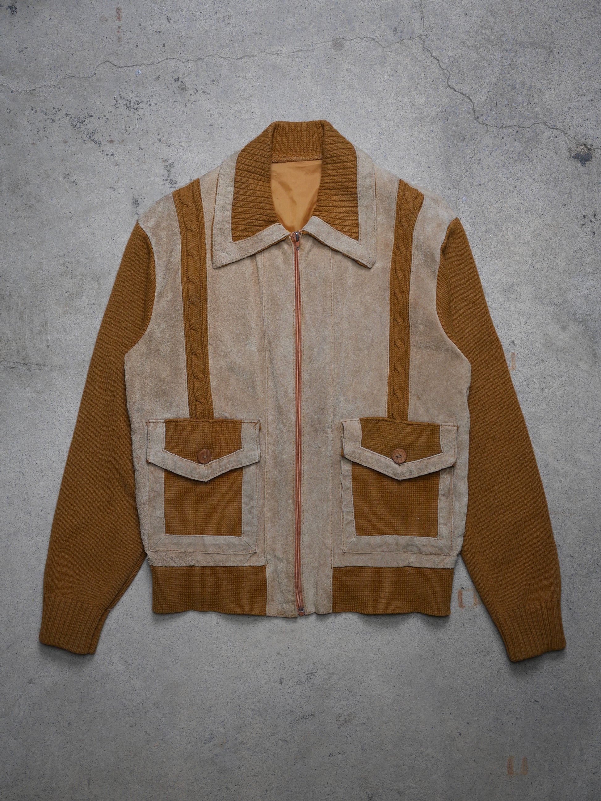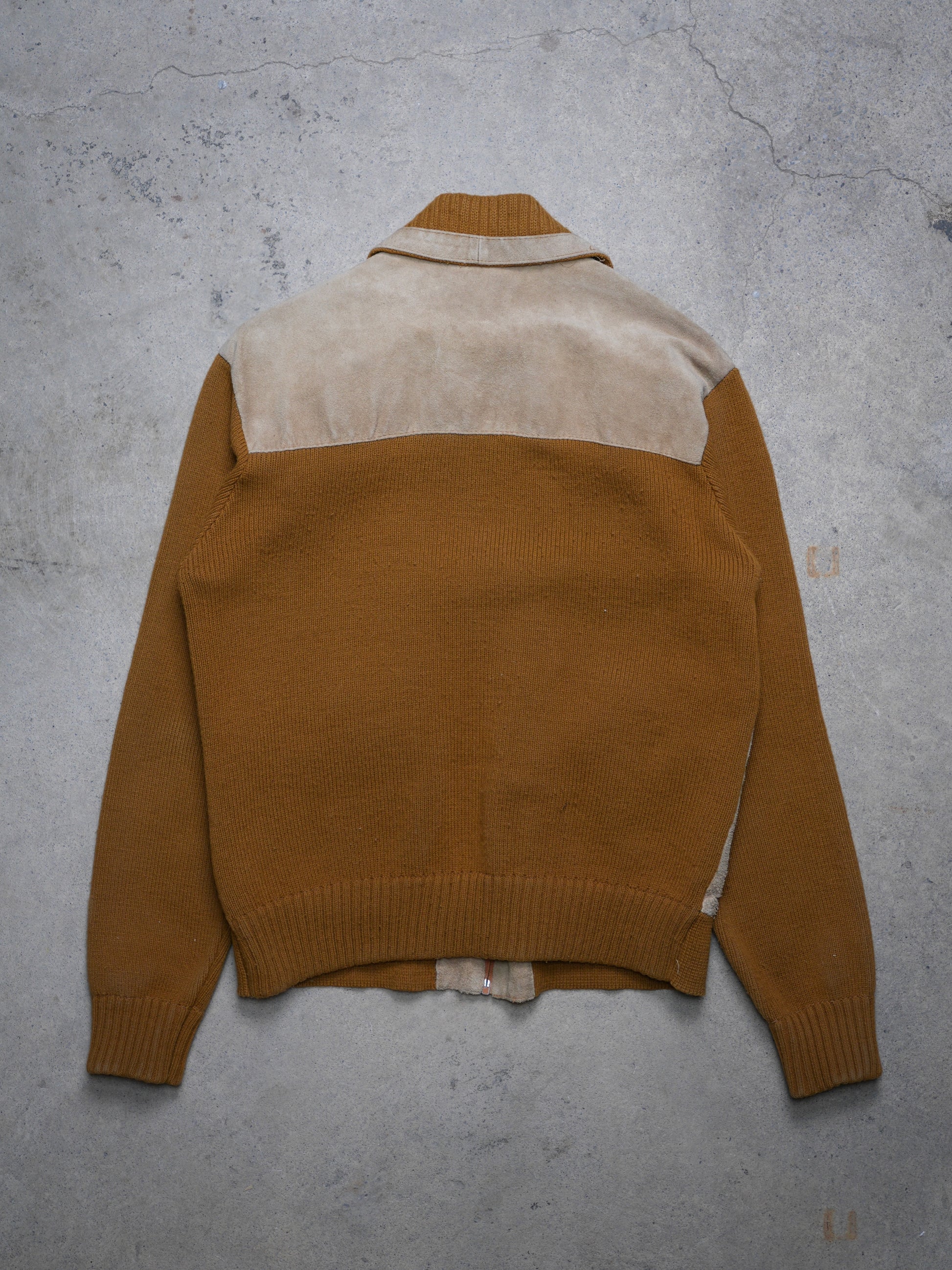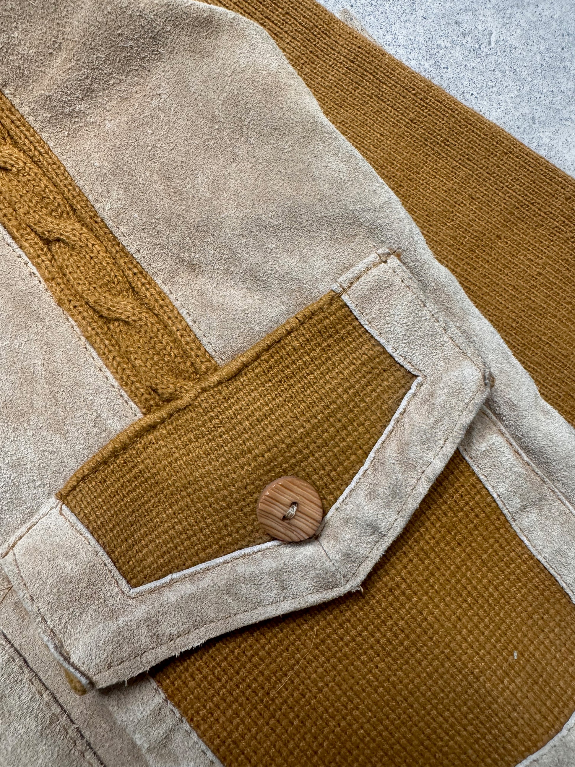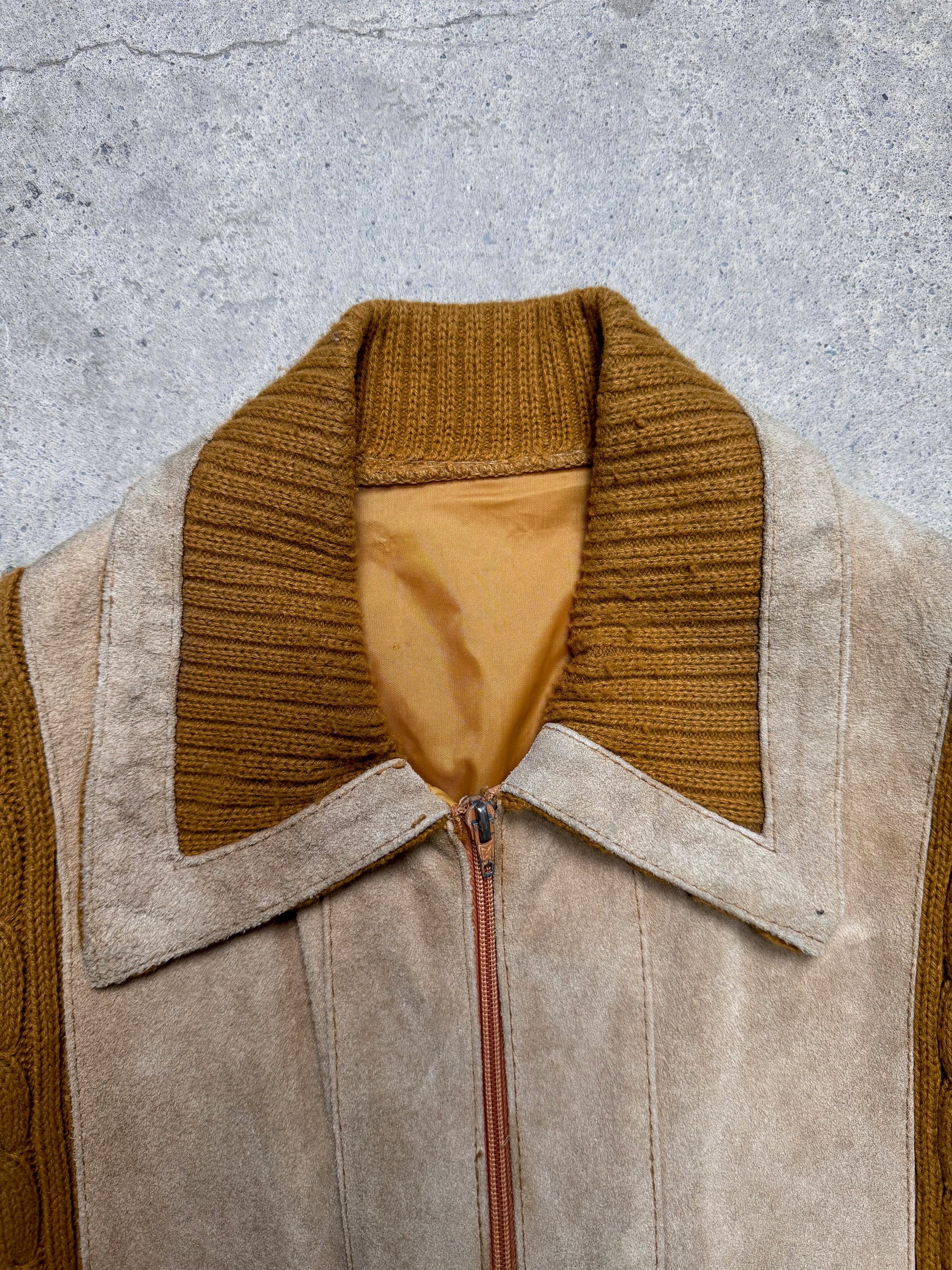 1970S - WOOL KNIT/SUEDE SWEATER JACKET