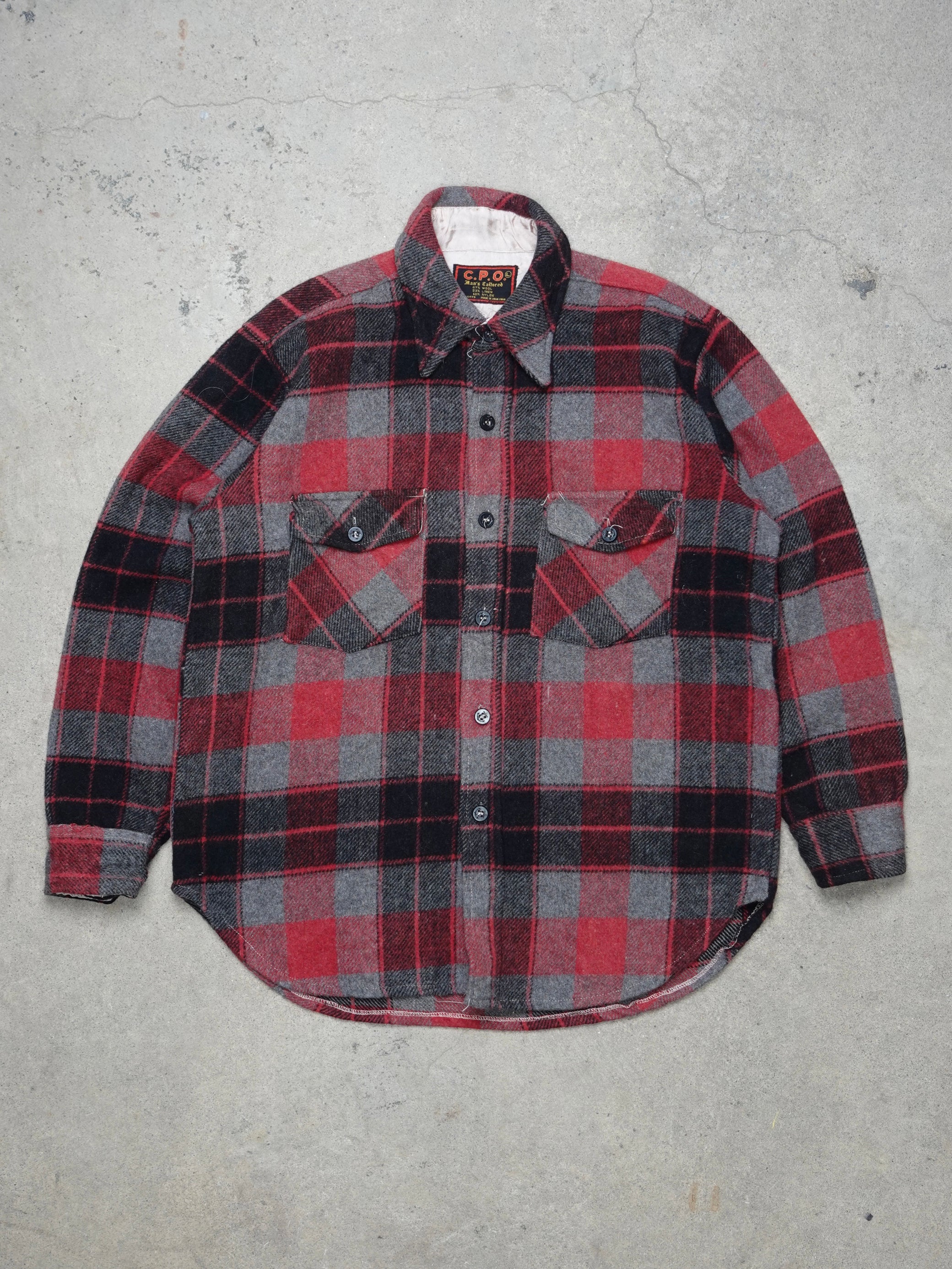 1980S - C.P.O RED/BLACK WOOL BLEND SHIRT