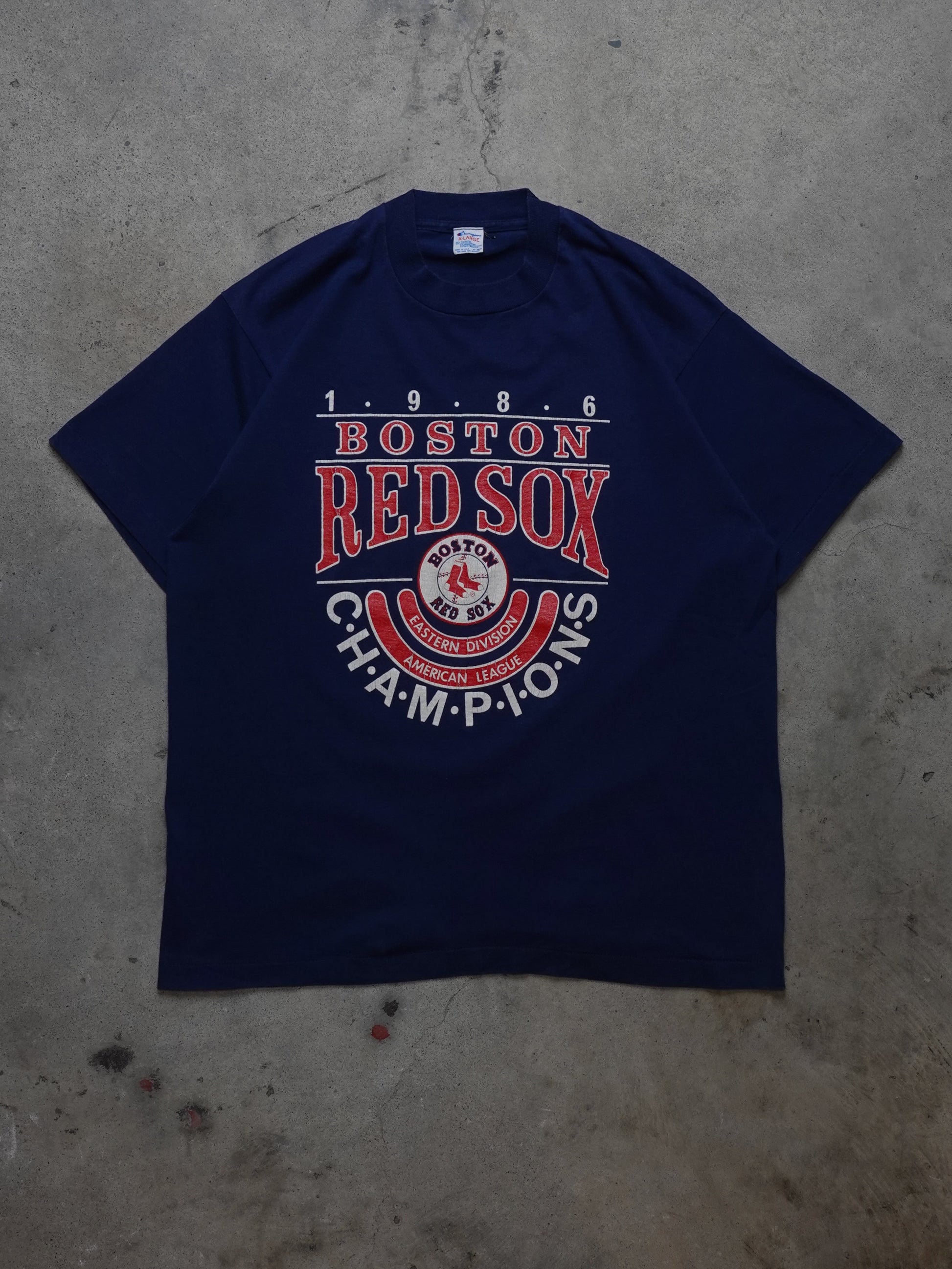 Classic 1980s Champion Boston Red Sox T-shirt, perfect for sportswear enthusiasts and vintage collectors. - Era & Style: Authentic 1980s sportswear with a bold graphic design. - Brand & Material: Made by Champion, crafted from a comfortable cotton blend. - Fit & Features: Regular fit with a ribbed crewneck and striking front graphic. - Ideal Use Cases: Great for casual outings, game days, or pairing with denim for a retro look.