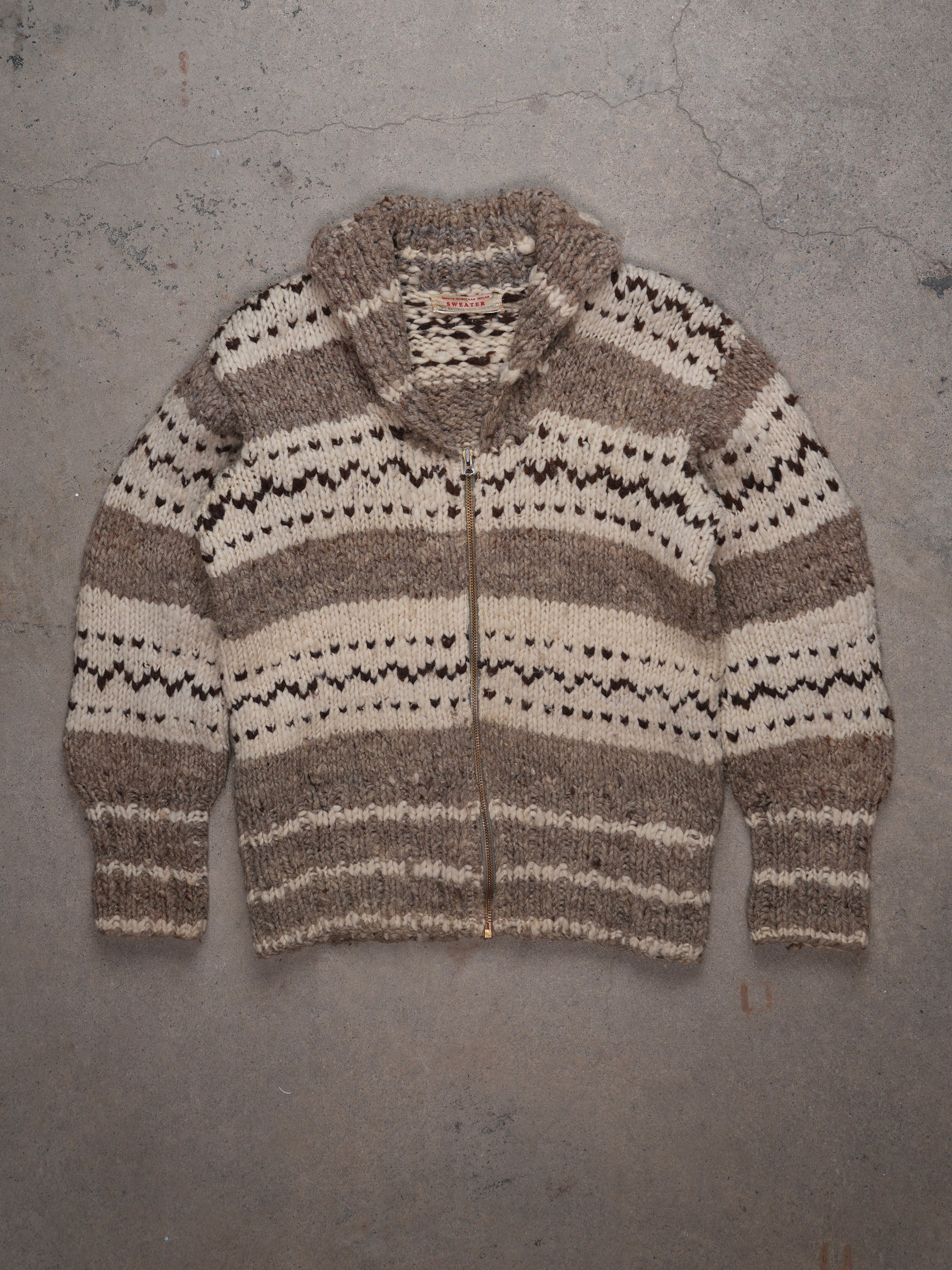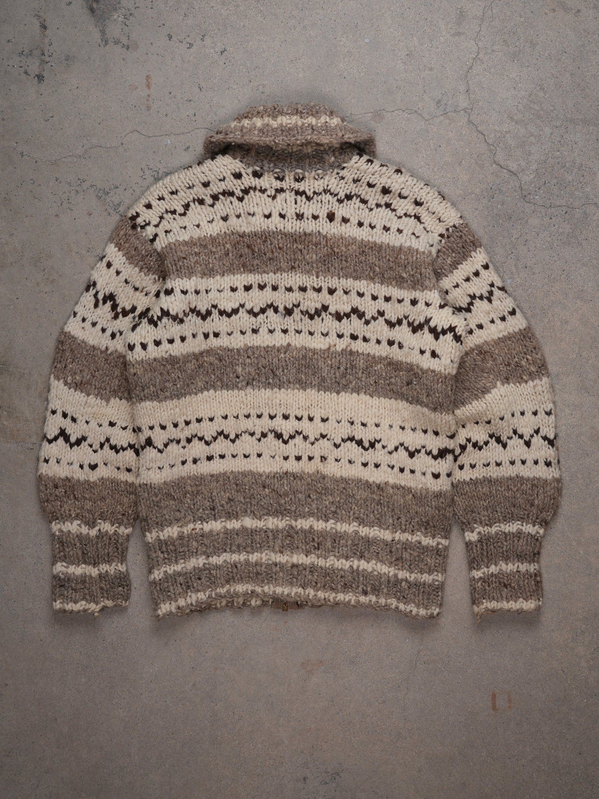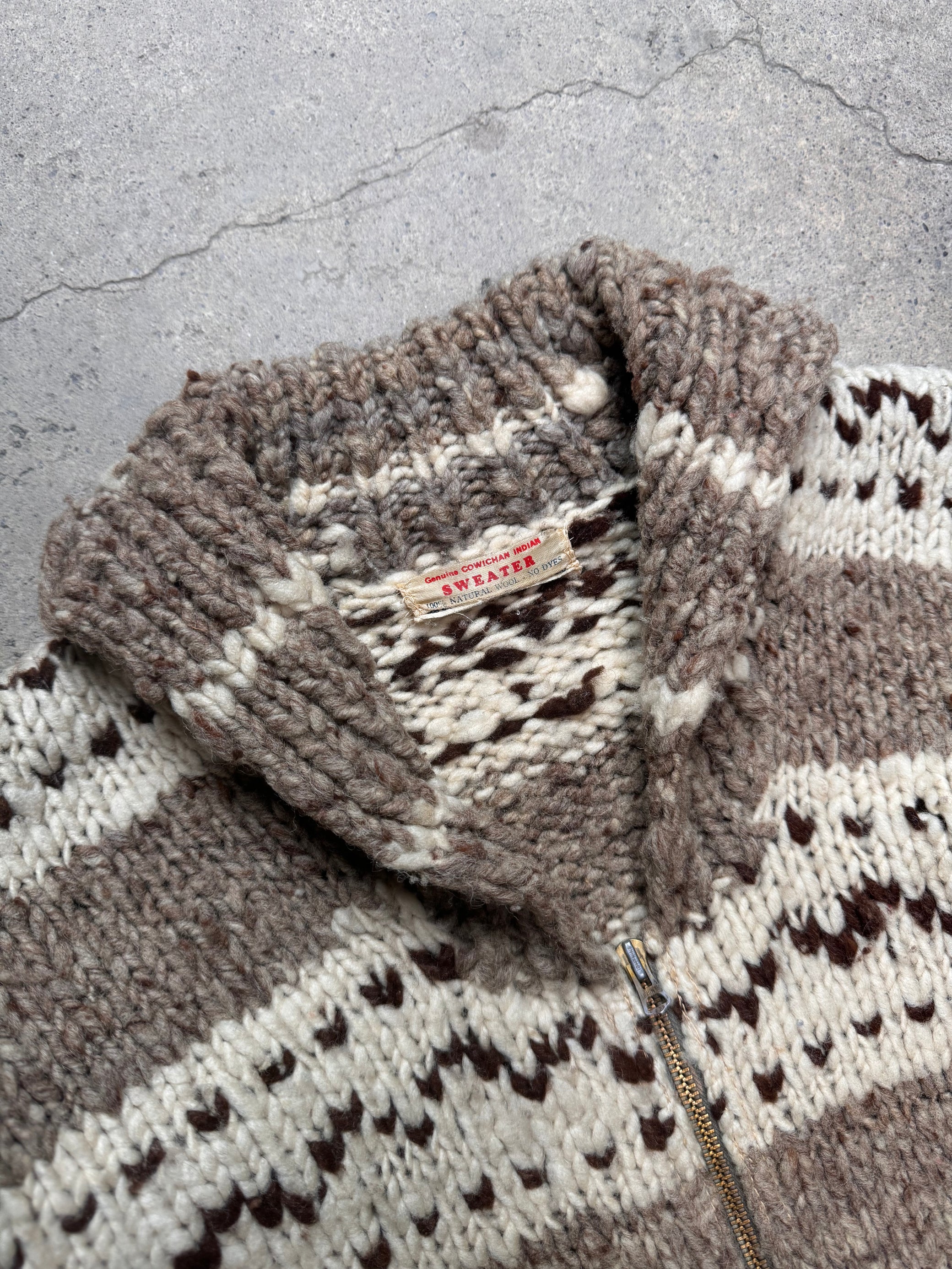 1980S - COWICHAN HAND KNIT ZIP UP SWEATER