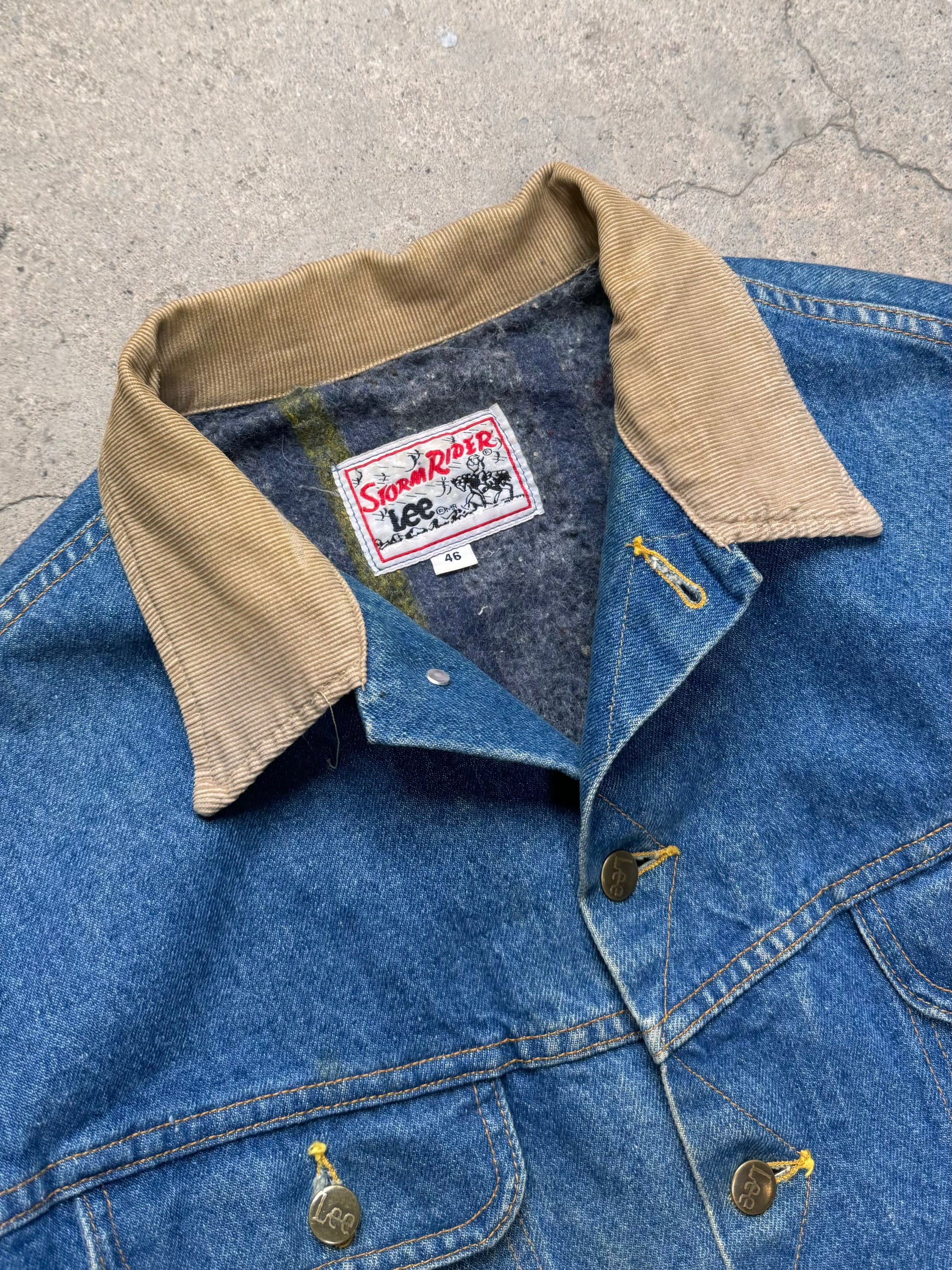 1980S - LEE STORM RIDER DENIM JACKET CORDUROY COLAR