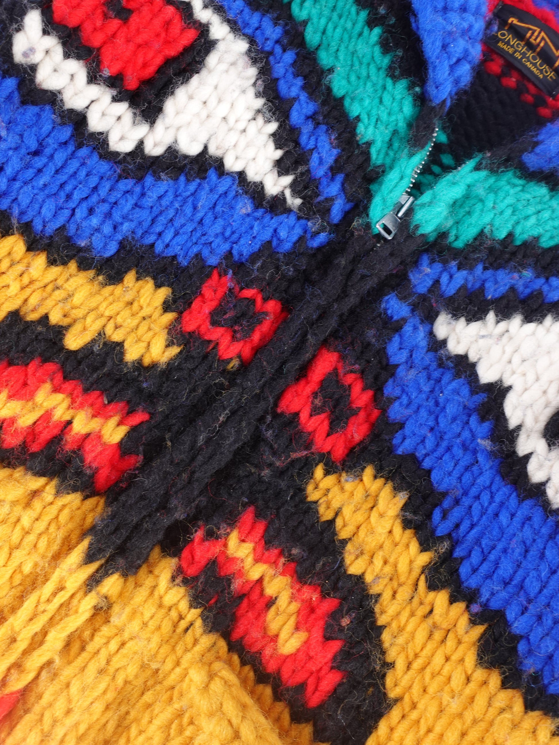 1980S - LONGHOUSE TOTEM MOTIF HAND KNIT SWEATER