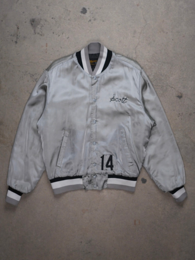 1980S - "SCOTT 14" SATIN VARSITY BOMBER JACKET