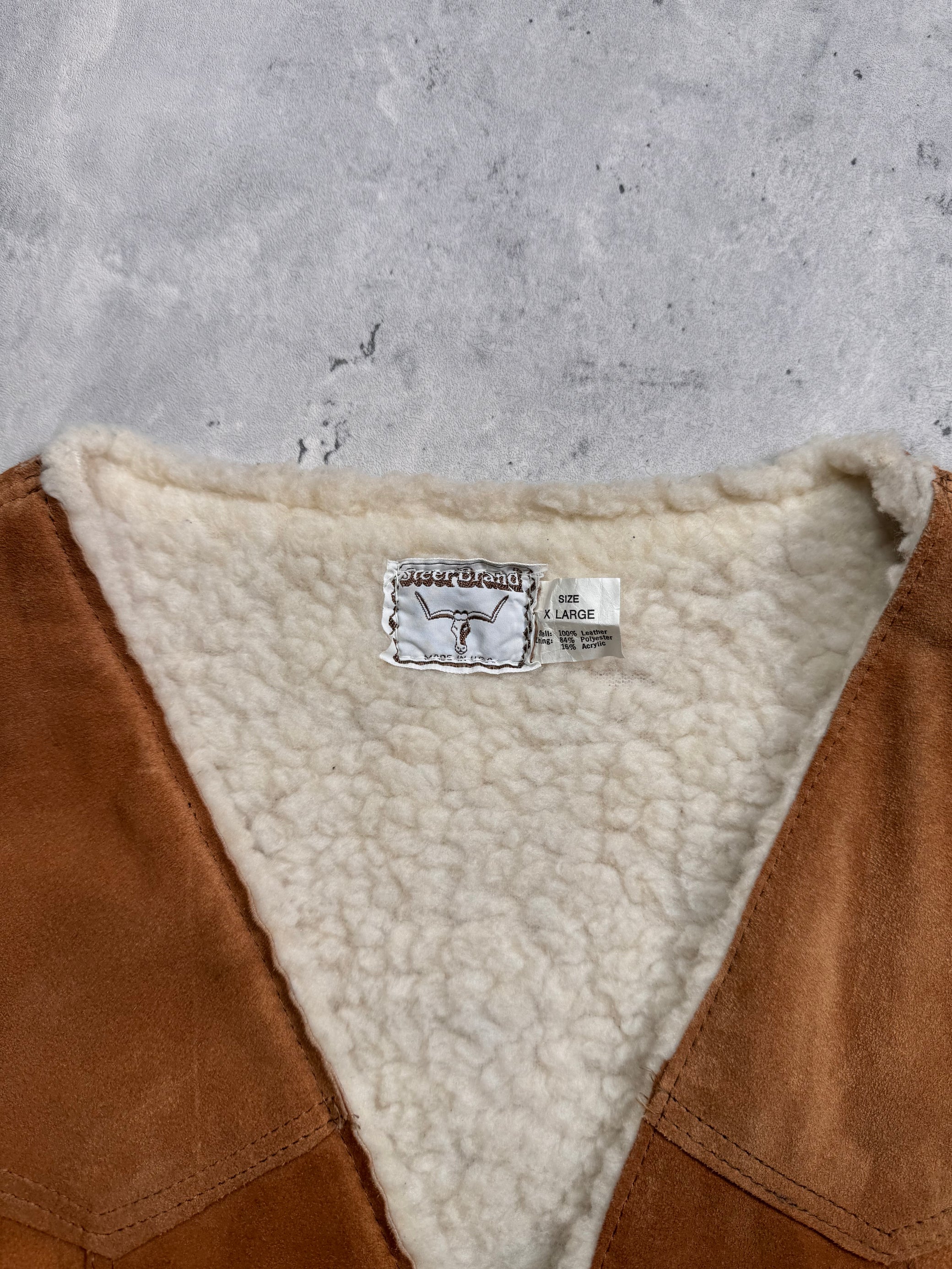 TAG SIZE: XL PIT TO PIT: 23.5" LENGTH: 24.5" MATERIALS: OUTER 100% LEATHER / INNER 84% POLY 16% ACRYLIC MADE IN USA