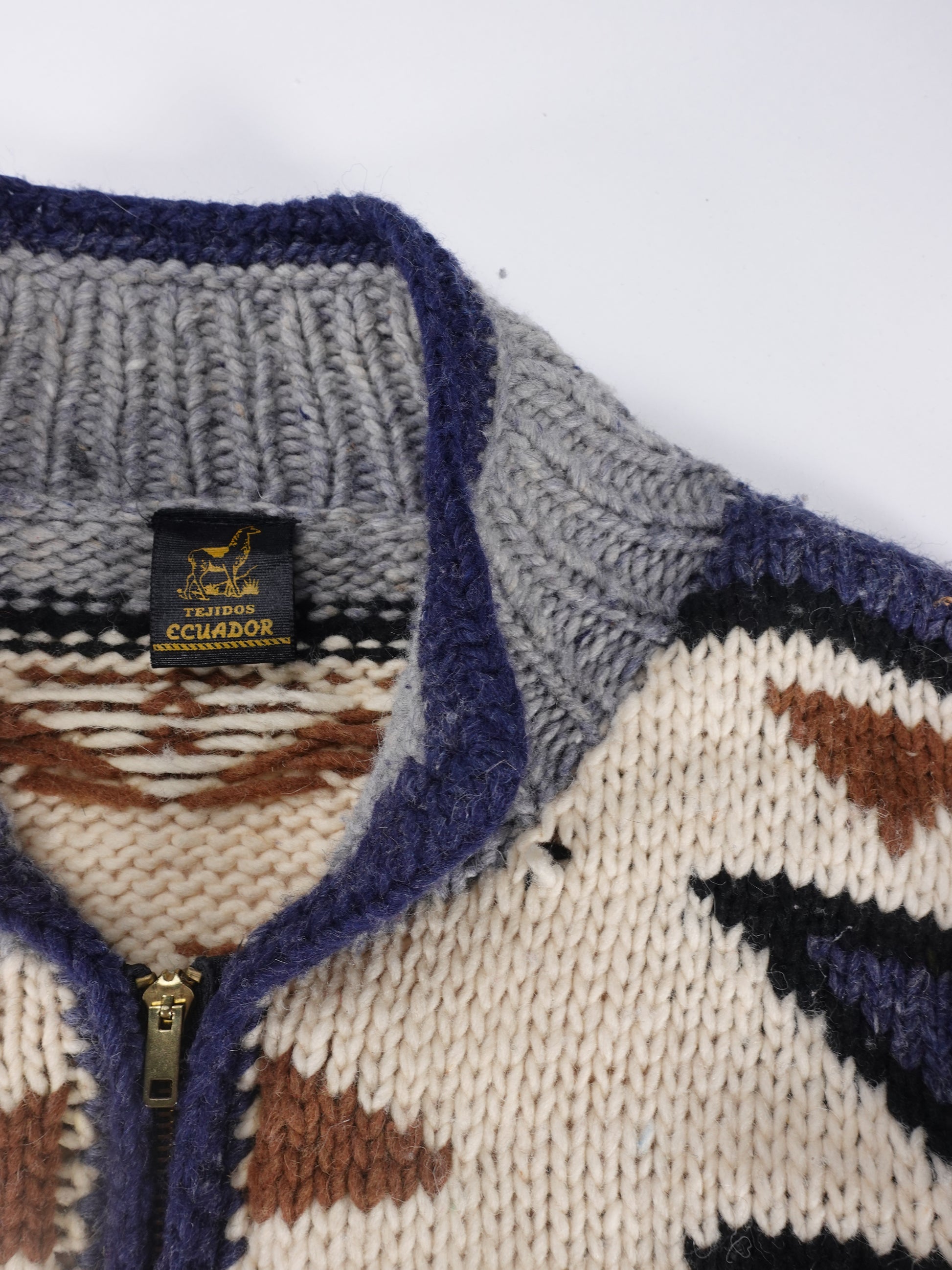 1980s - TEJIDOS ECUADOR HAND KNIT ZIP UP SWEATER