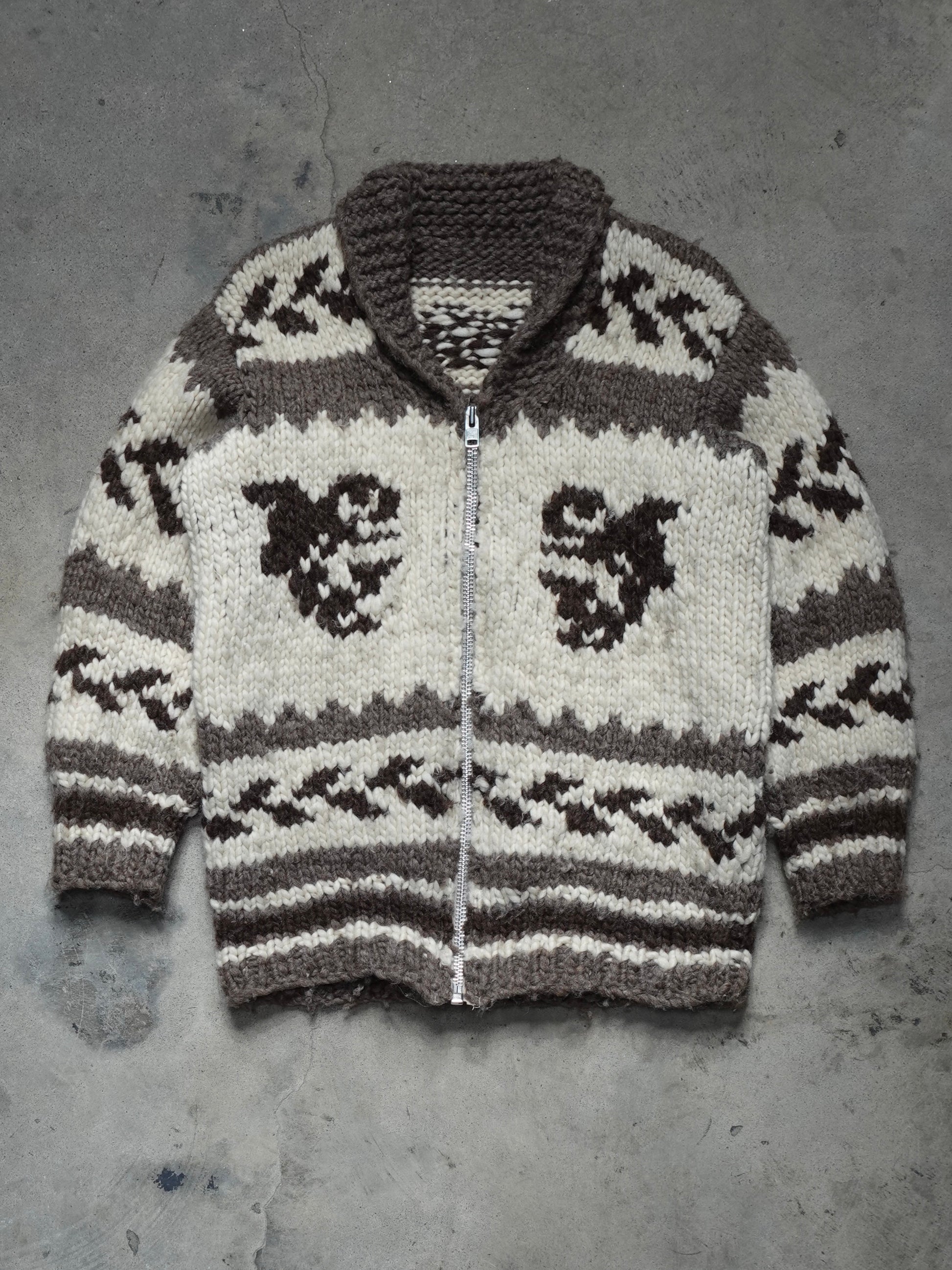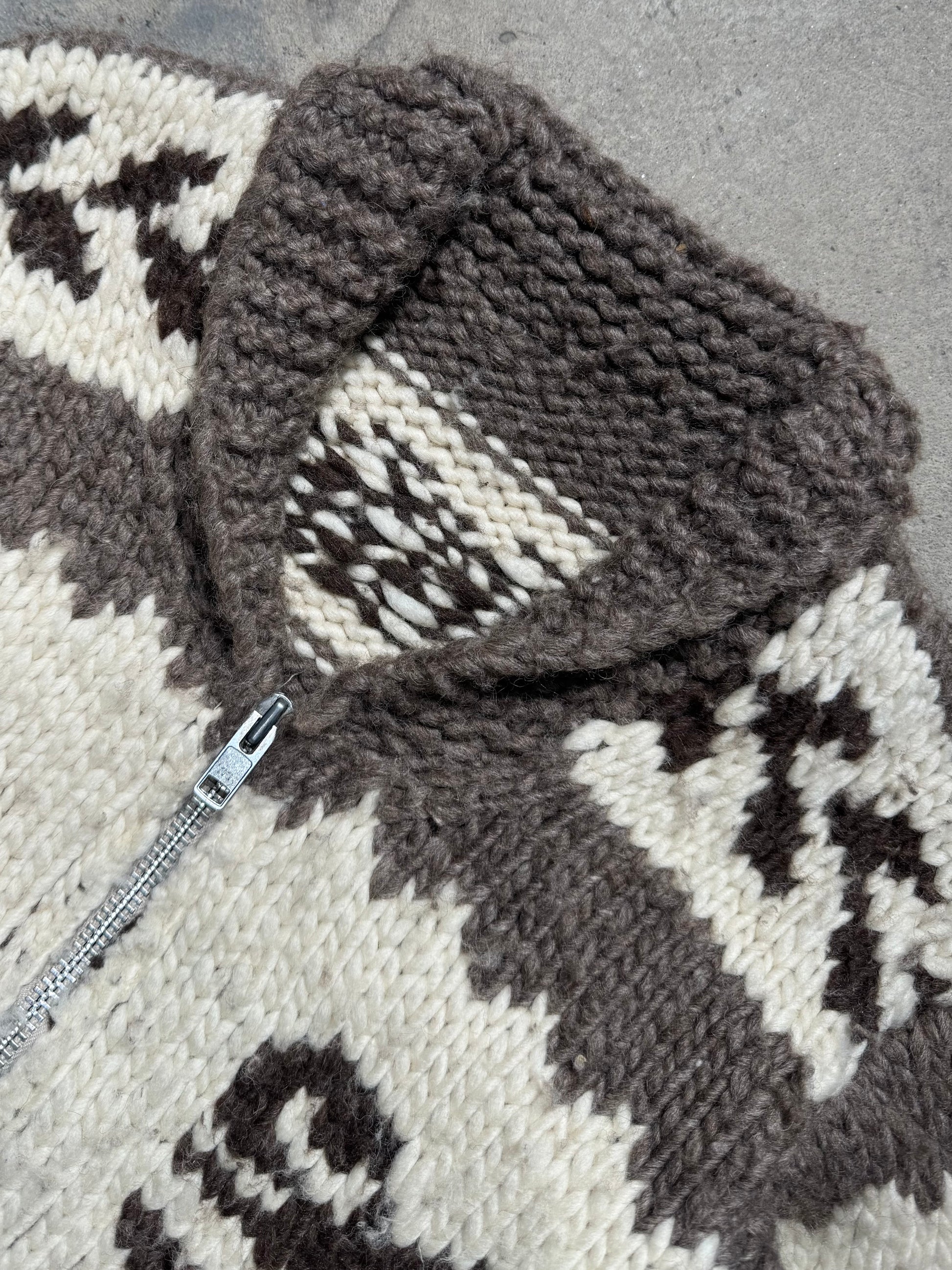 1990S/2000S - COWICHAN ZIP UP HAND KNIT SWEATER