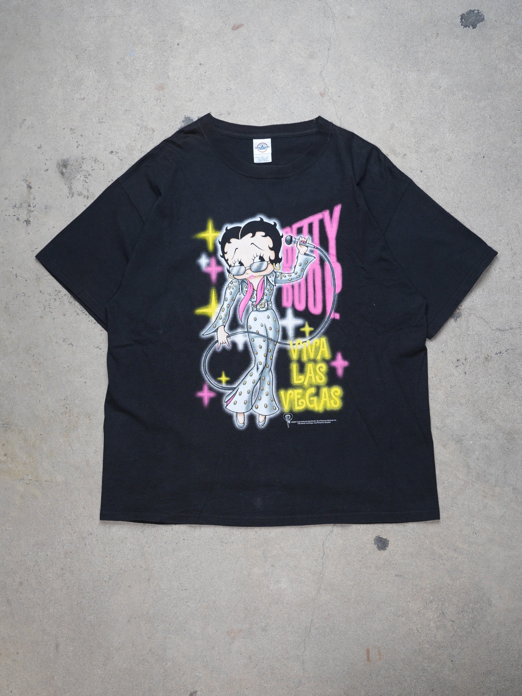 1990s Betty Boop Viva Las Vegas T-Shirt: A rare find for any collector, this black tee features a bold pink and yellow graphic of the iconic cartoon character.