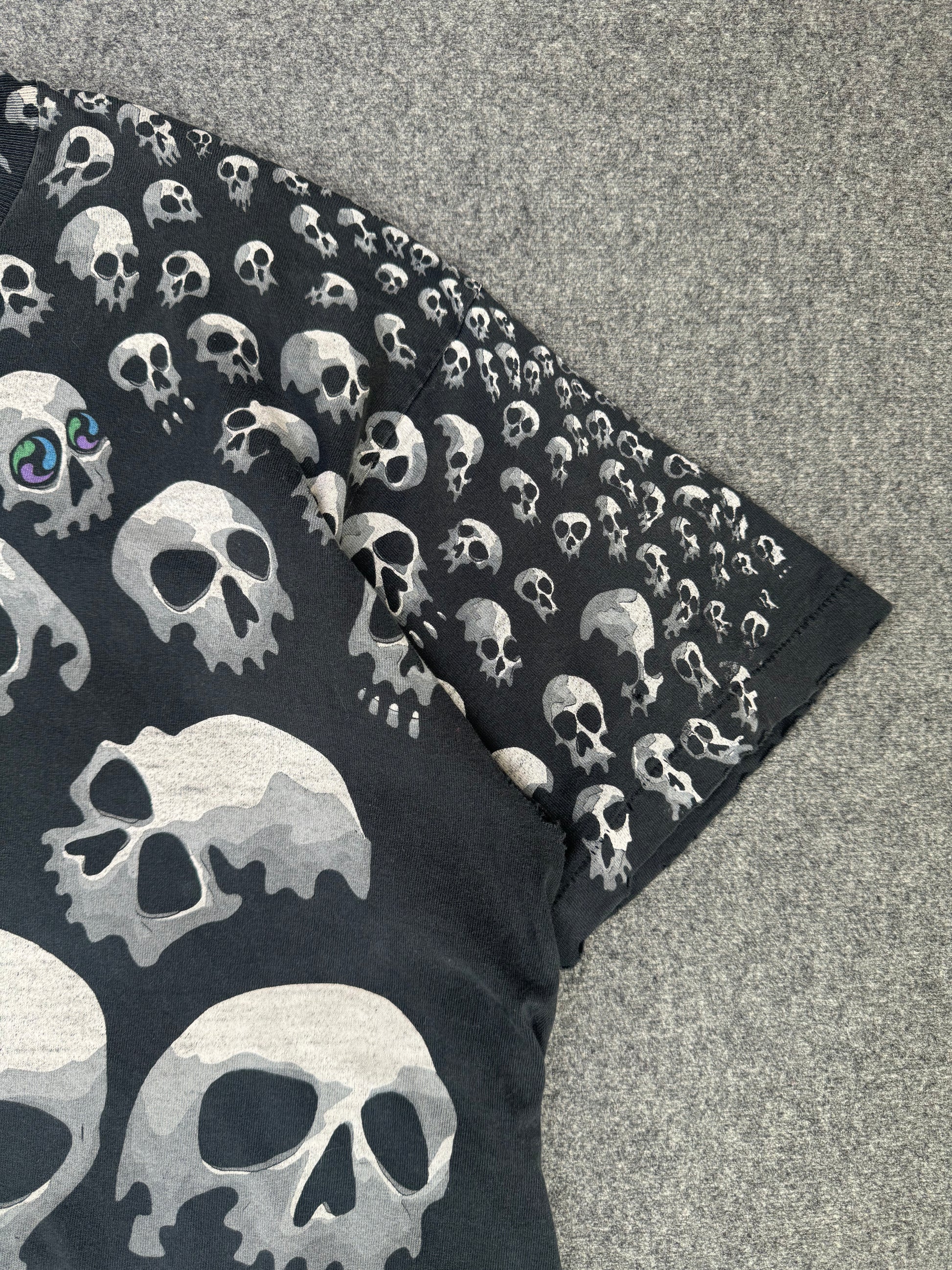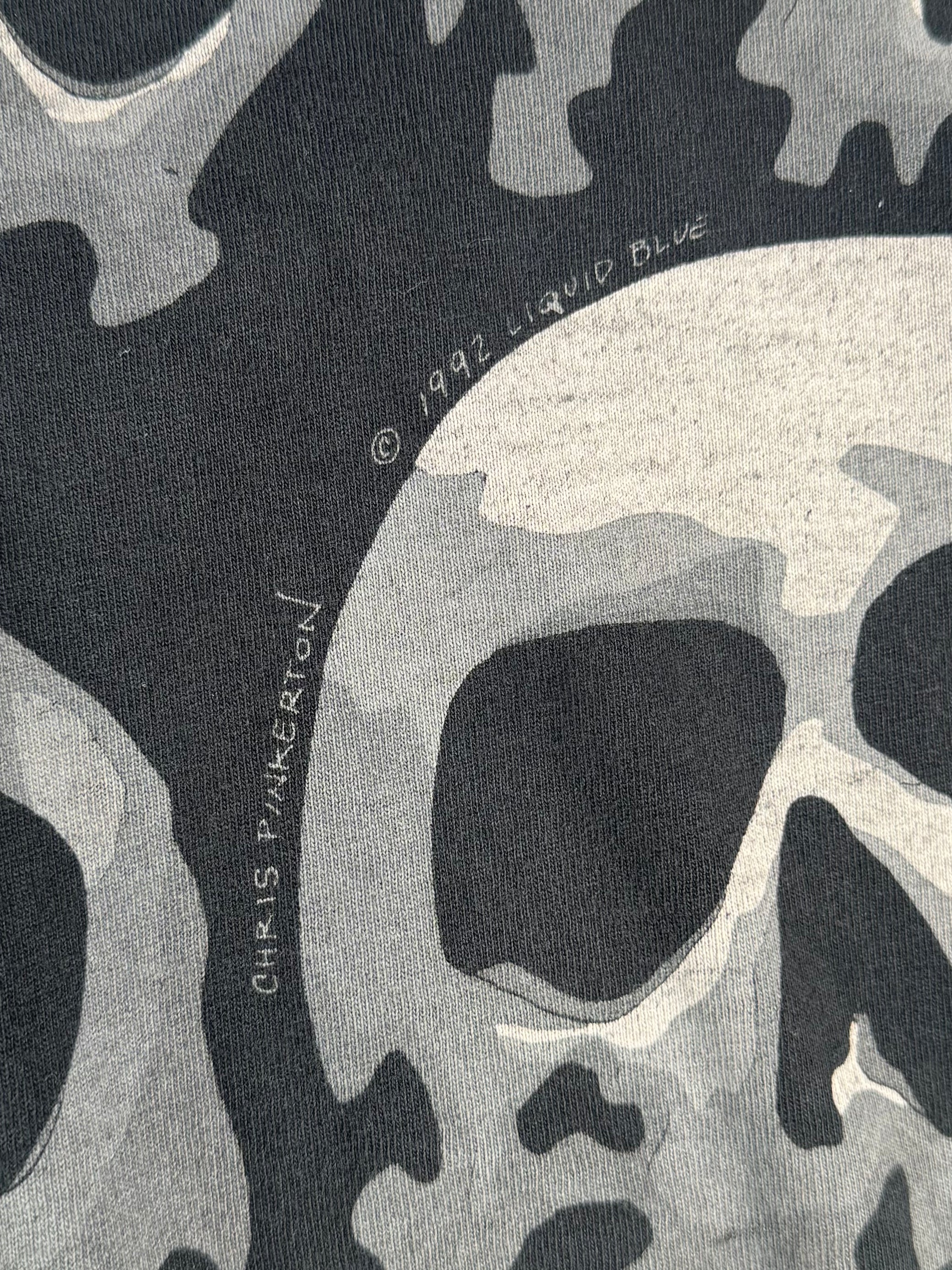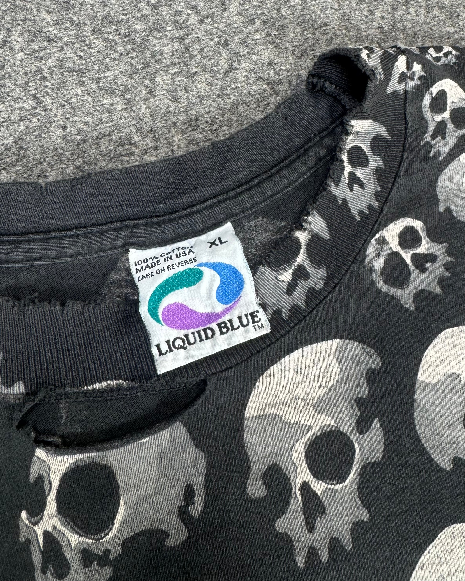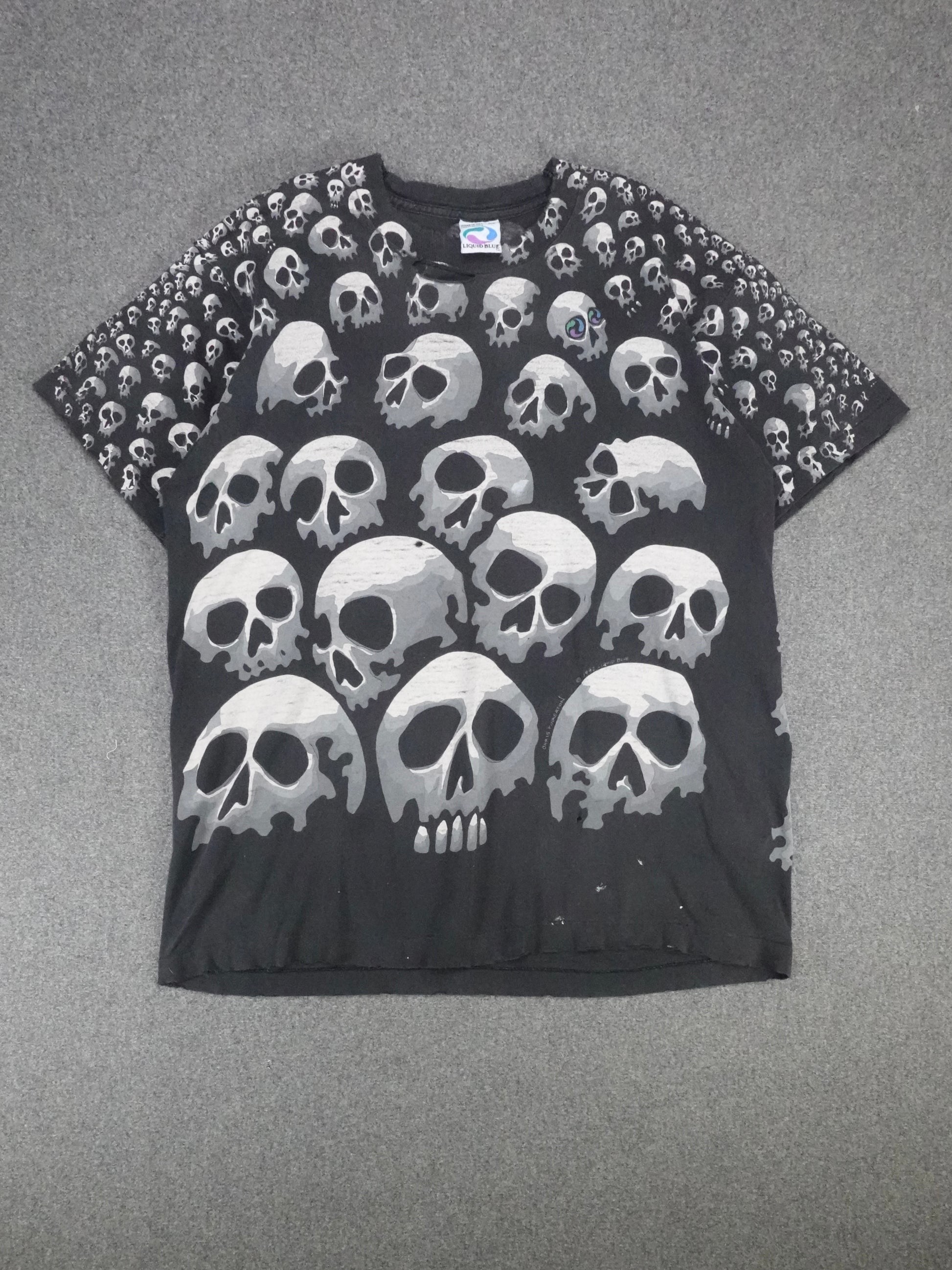 Vintage 1990s - Liquid Blue AOP Skull T-Shirt