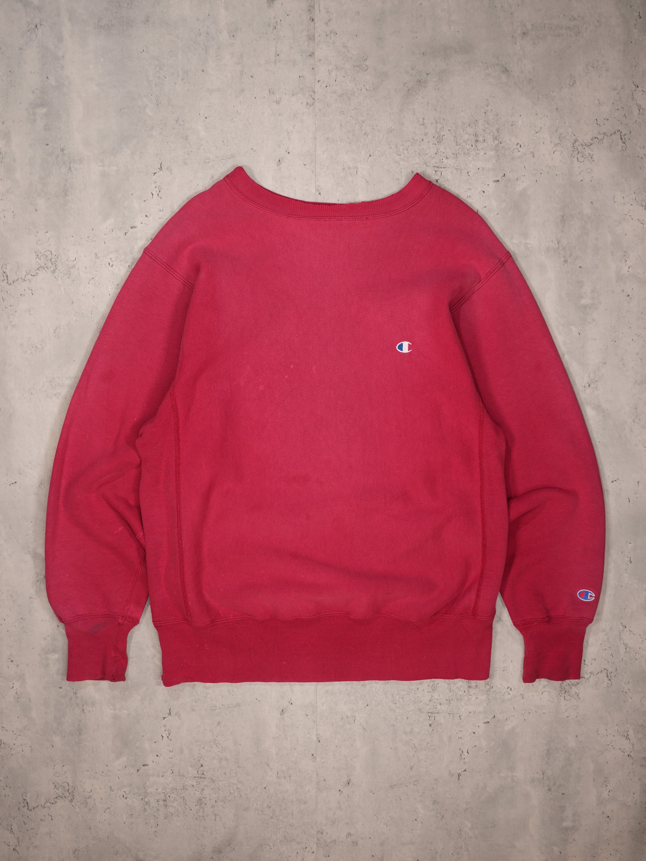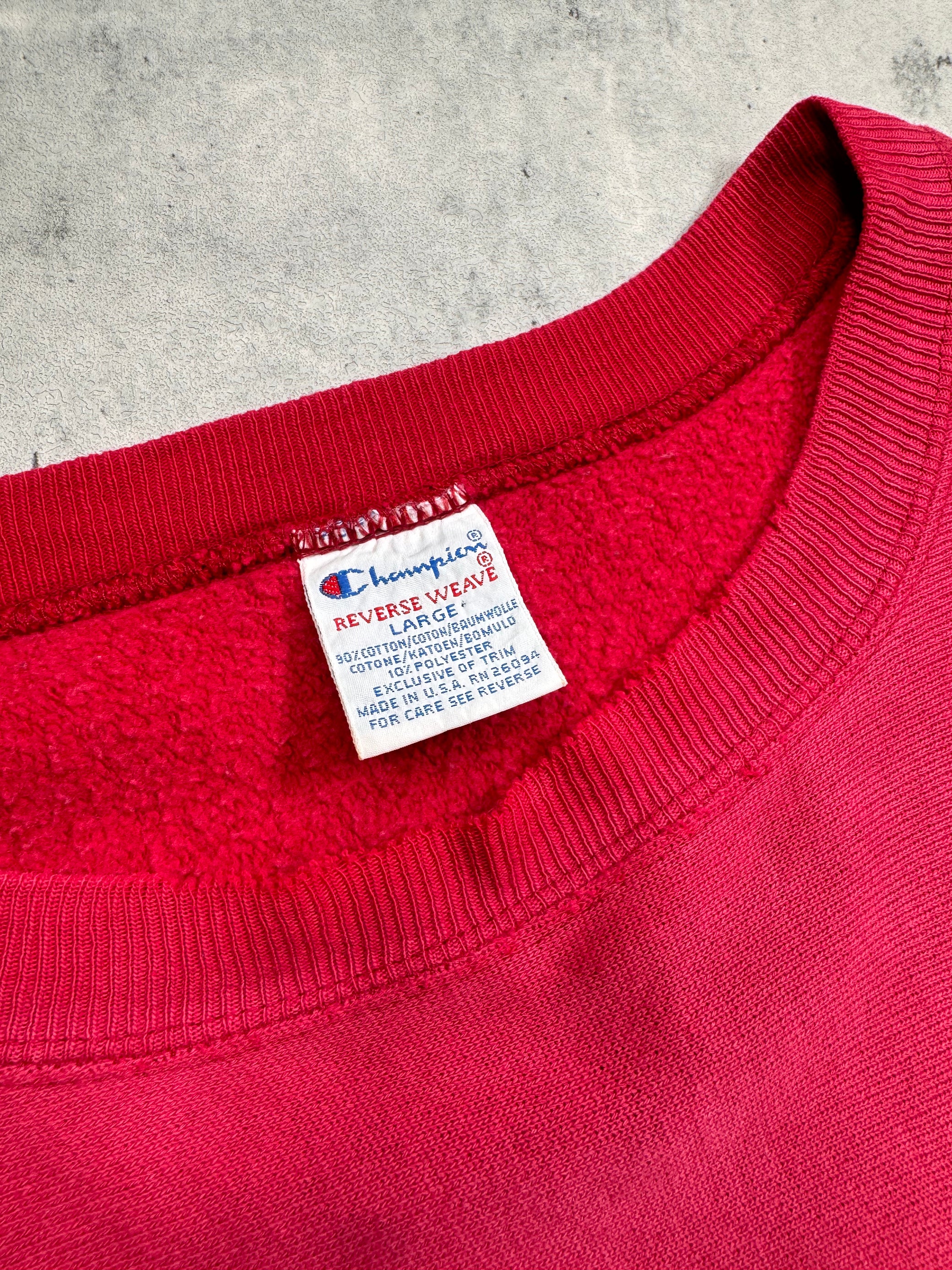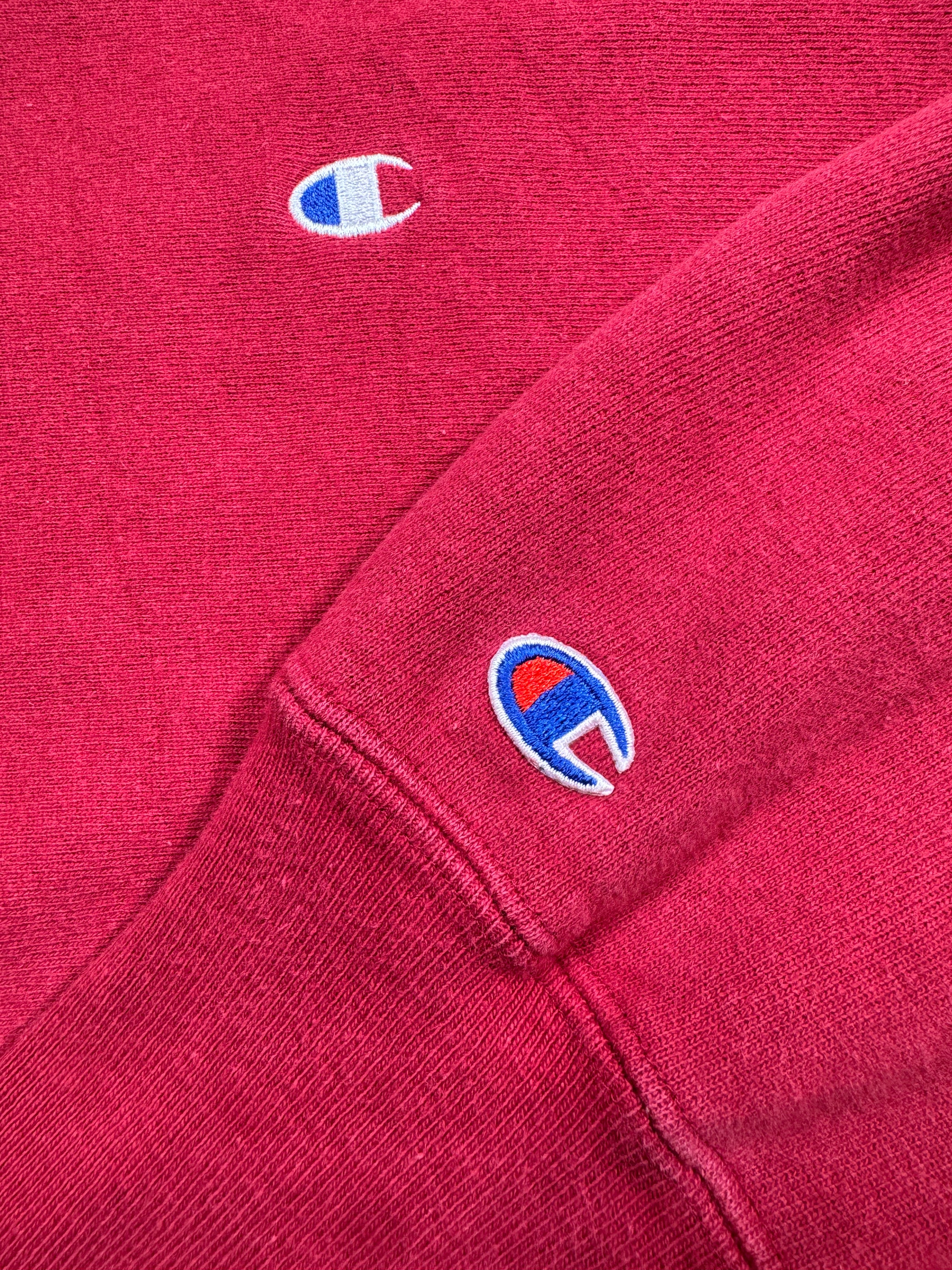 1990S - RED/MAROON CHAMPION REVERSE WEAVE SWEATSHIRT - LARGE