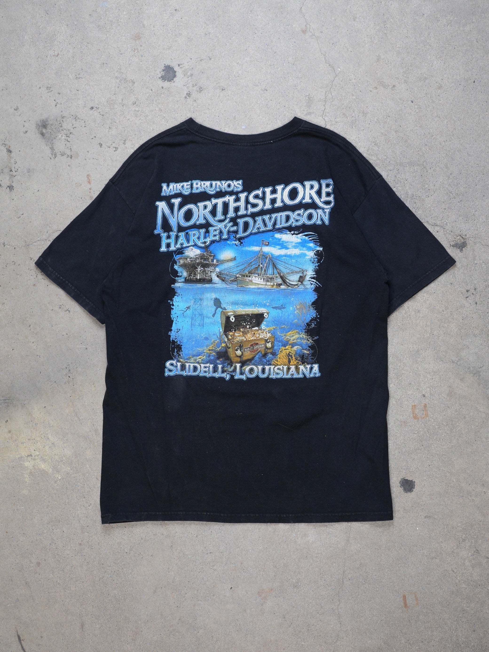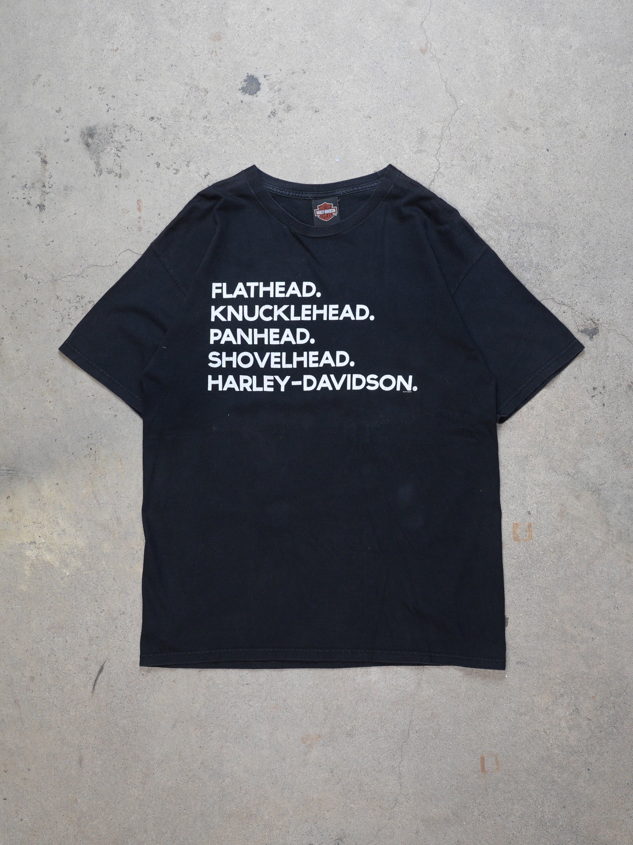 This unique Harley-Davidson tee features engine names from the 2000s era. With a bold black color and size L, it's a one of a kind item for any biker. Colour: Black Size: L Condition: Excellent Used Condition