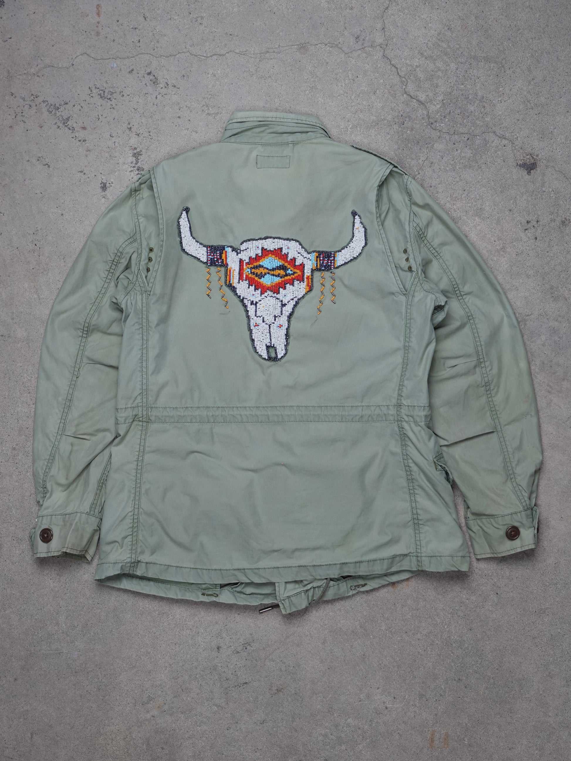 2000S - POLO RALPH LAUREN M65 STYLE JACKET WITH NATIVE STYLE BEADWORK