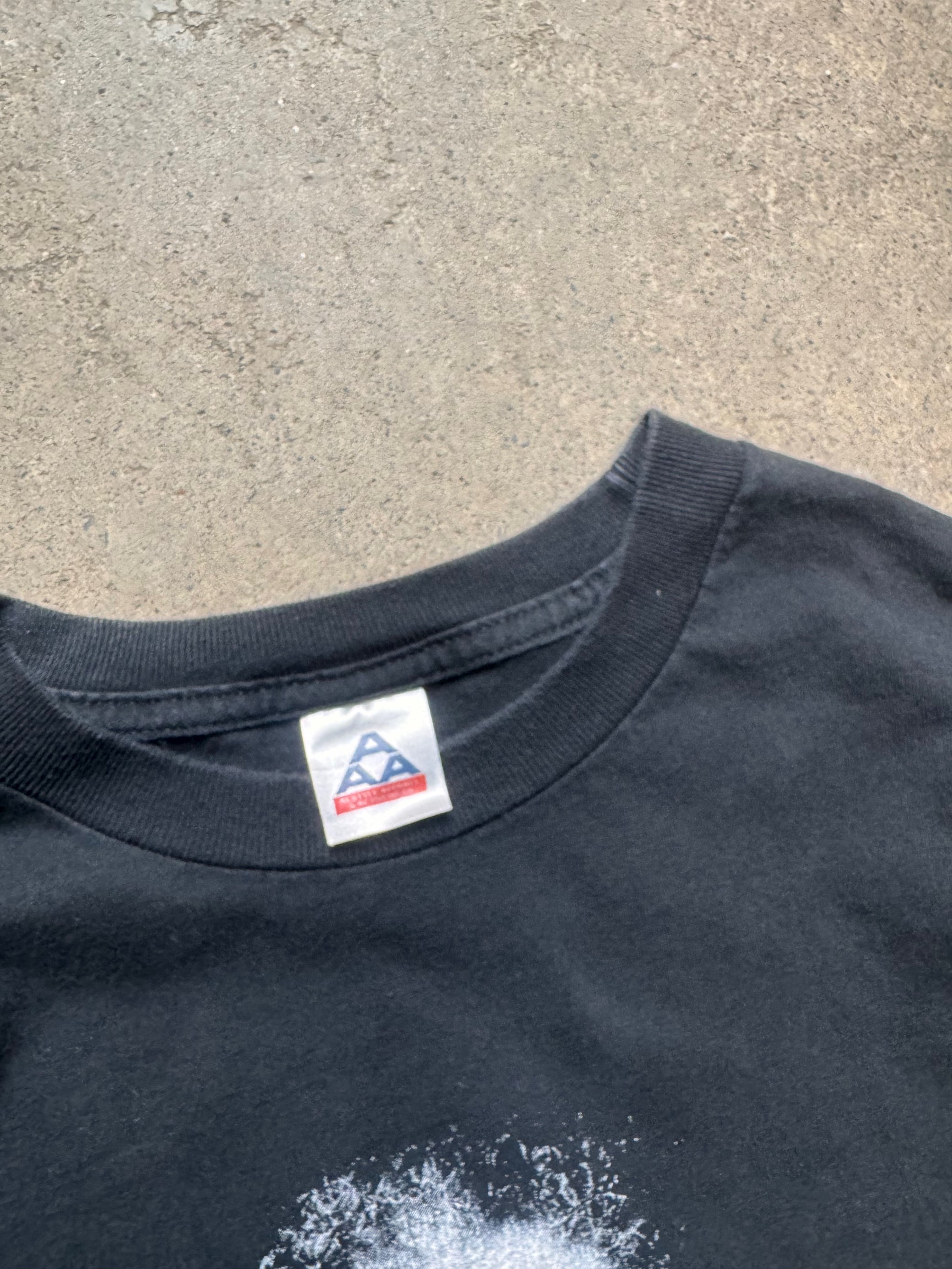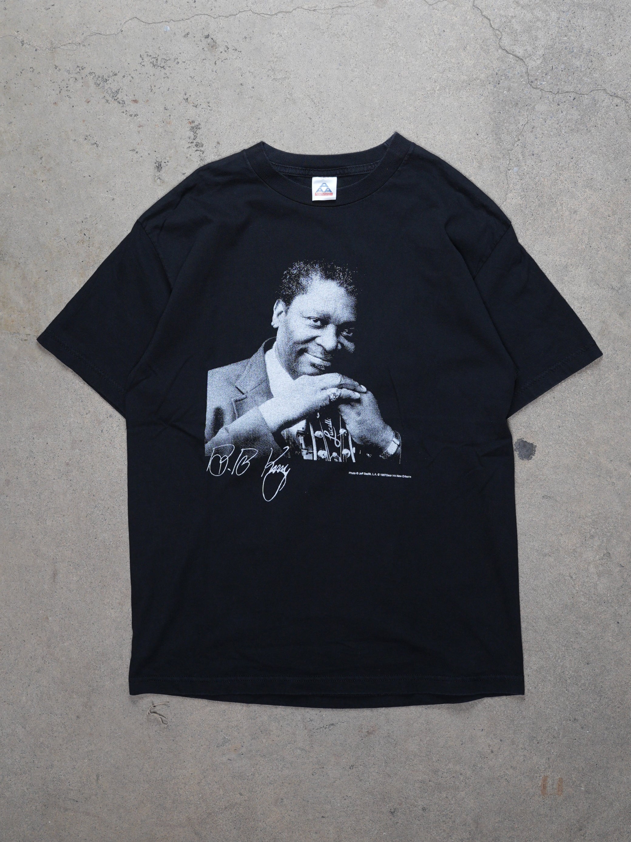 This B.B. King graphic t-shirt is a must-have for any music lover. Made from comfortable cotton, it features a black and white design with a crew neckline and short sleeves, perfect for a casual look. A one of a kind item, this t-shirt is sure to make a statement with its unique picture and text. Available in size L.