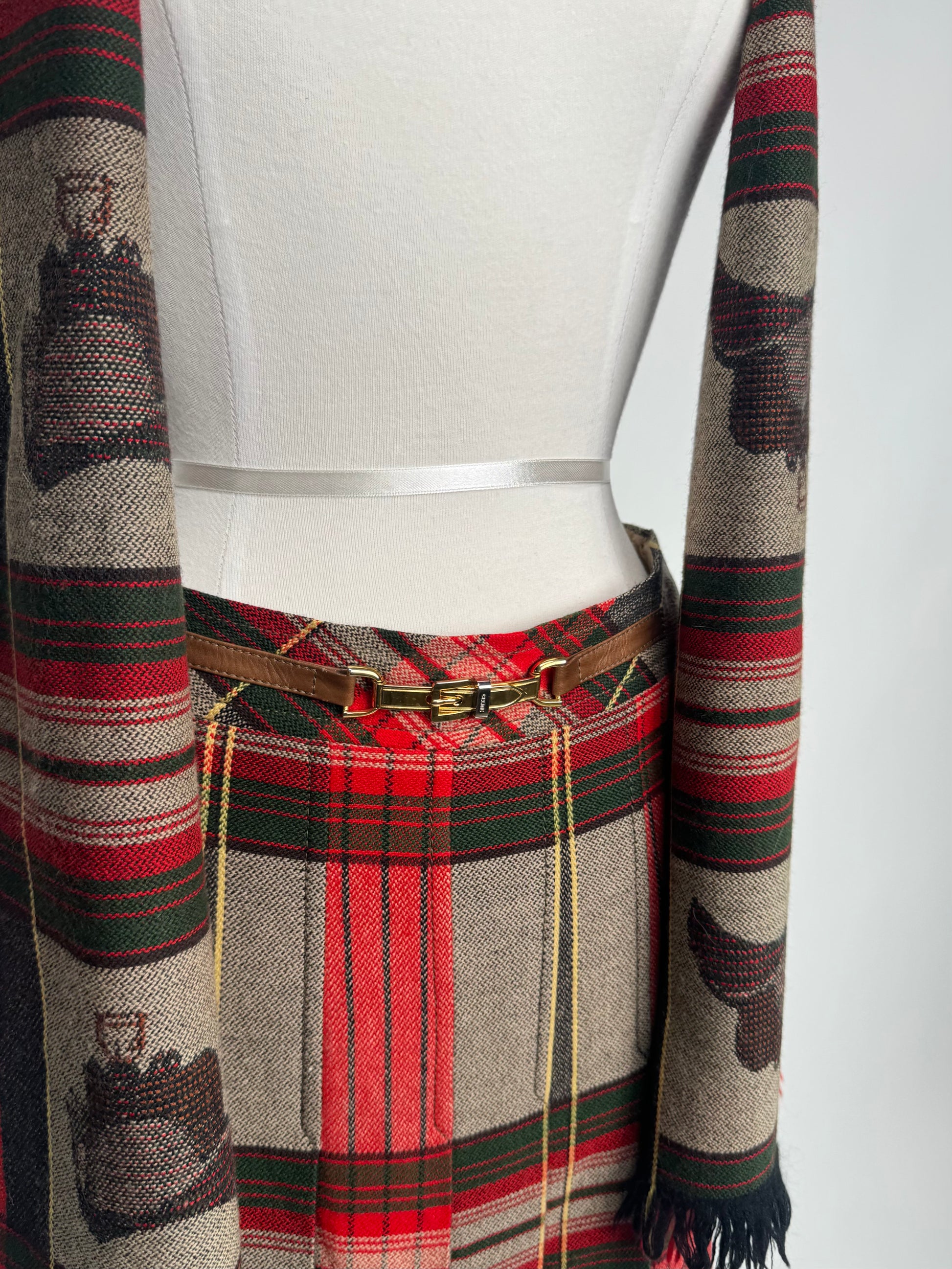 Vintage Late 1980s - Celine Wool Skirt + Scarf Set