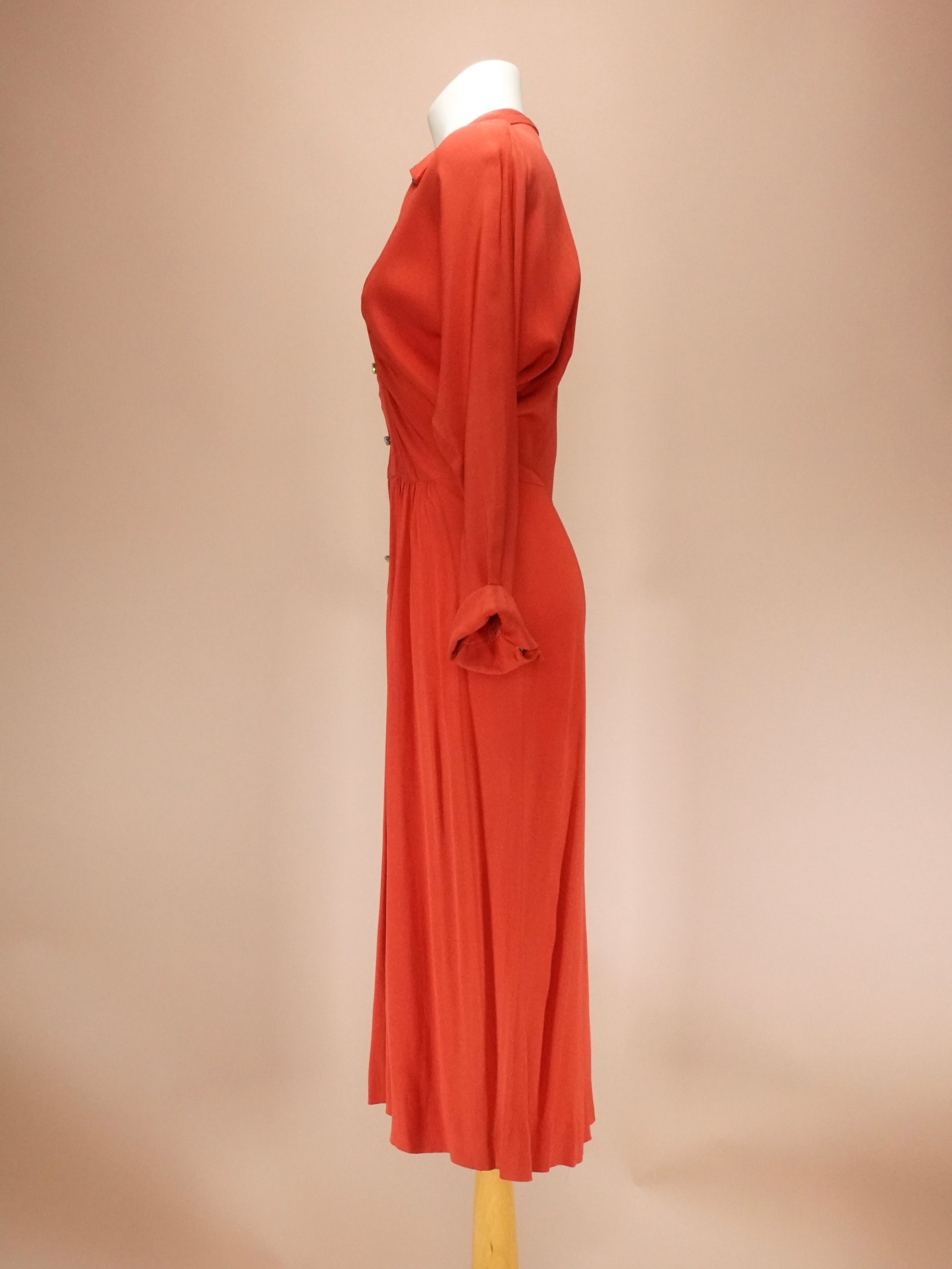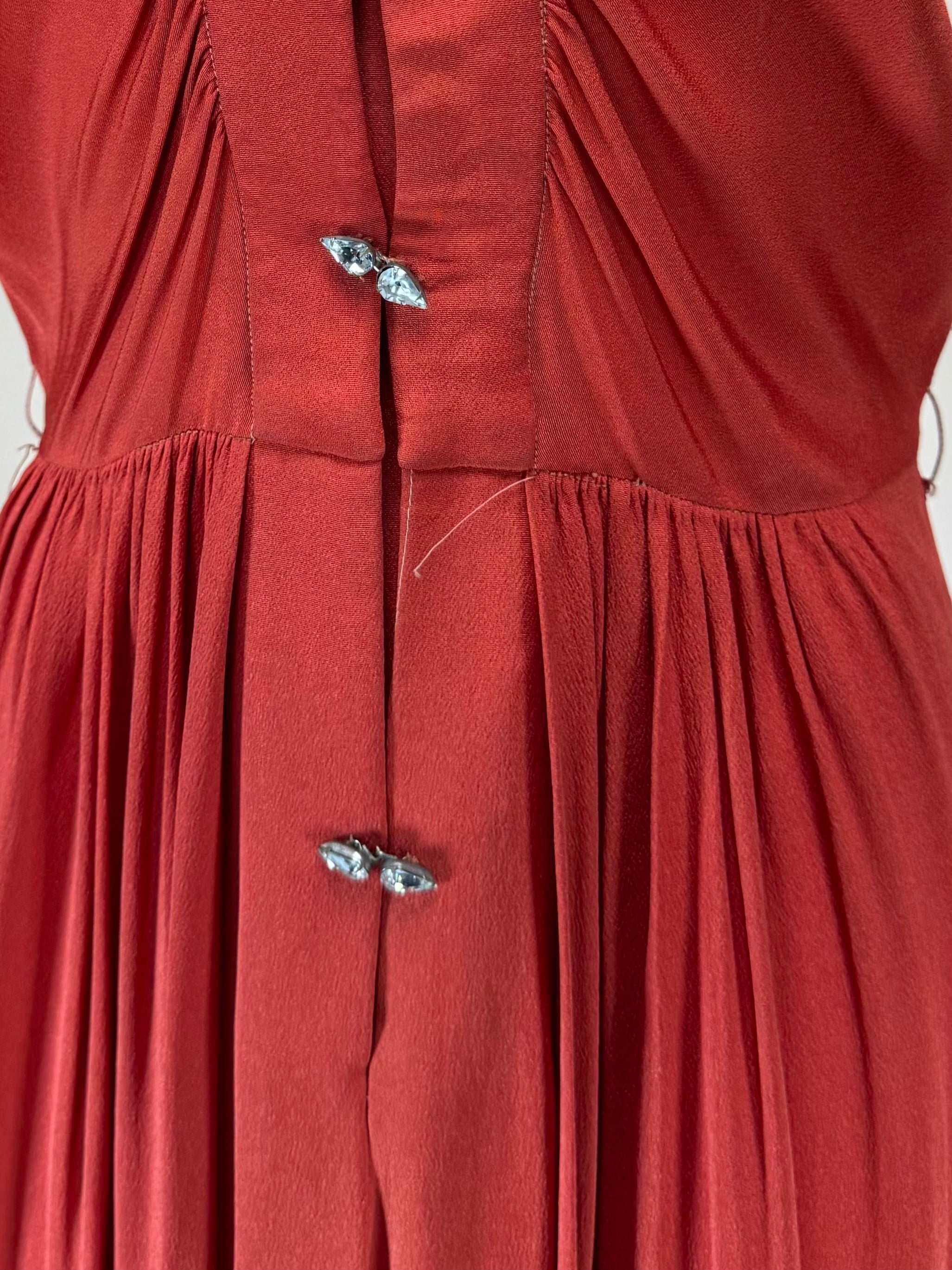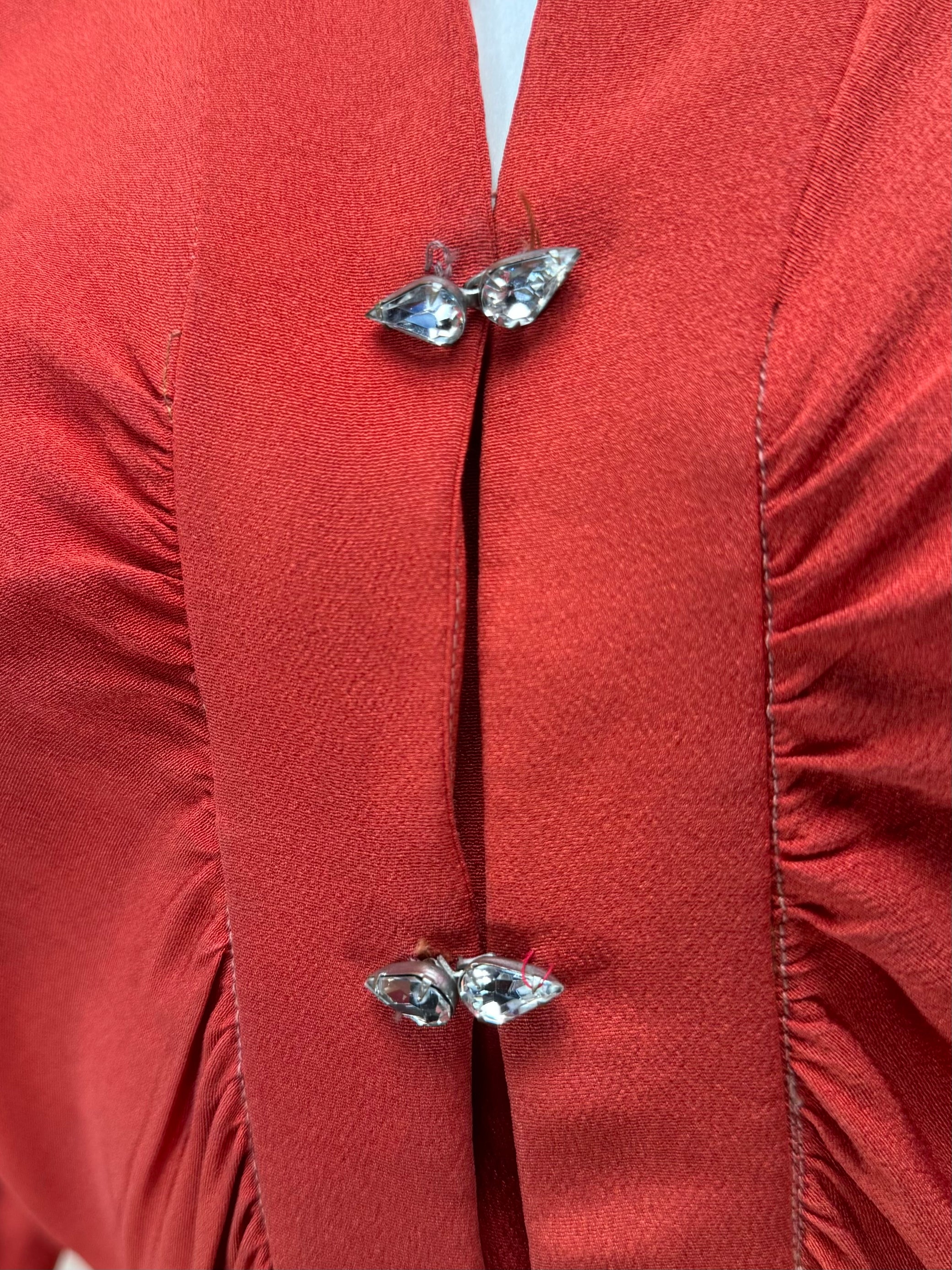 Vintage 1940s | Orange Day Dress w/ Rhinestone Closure