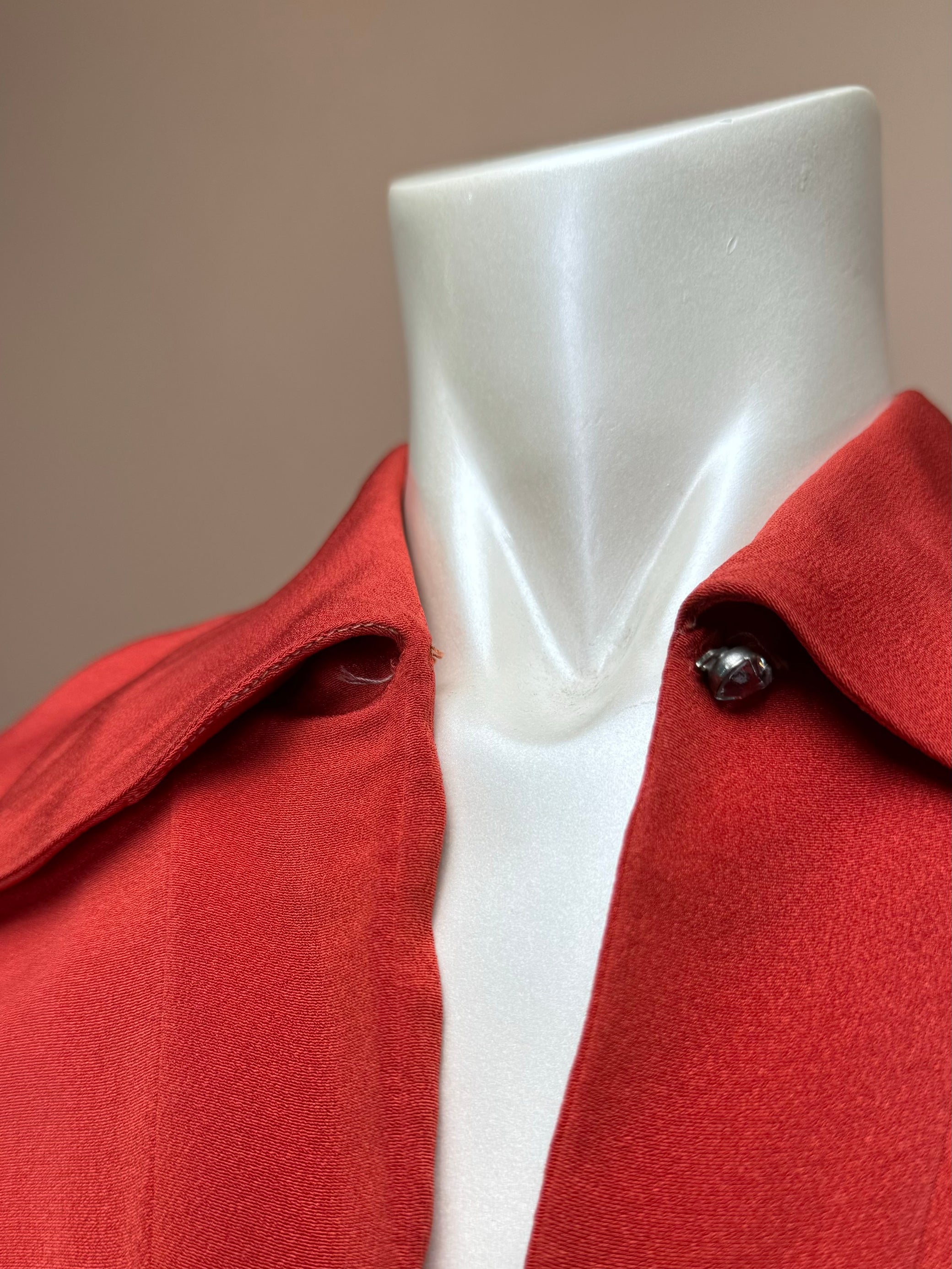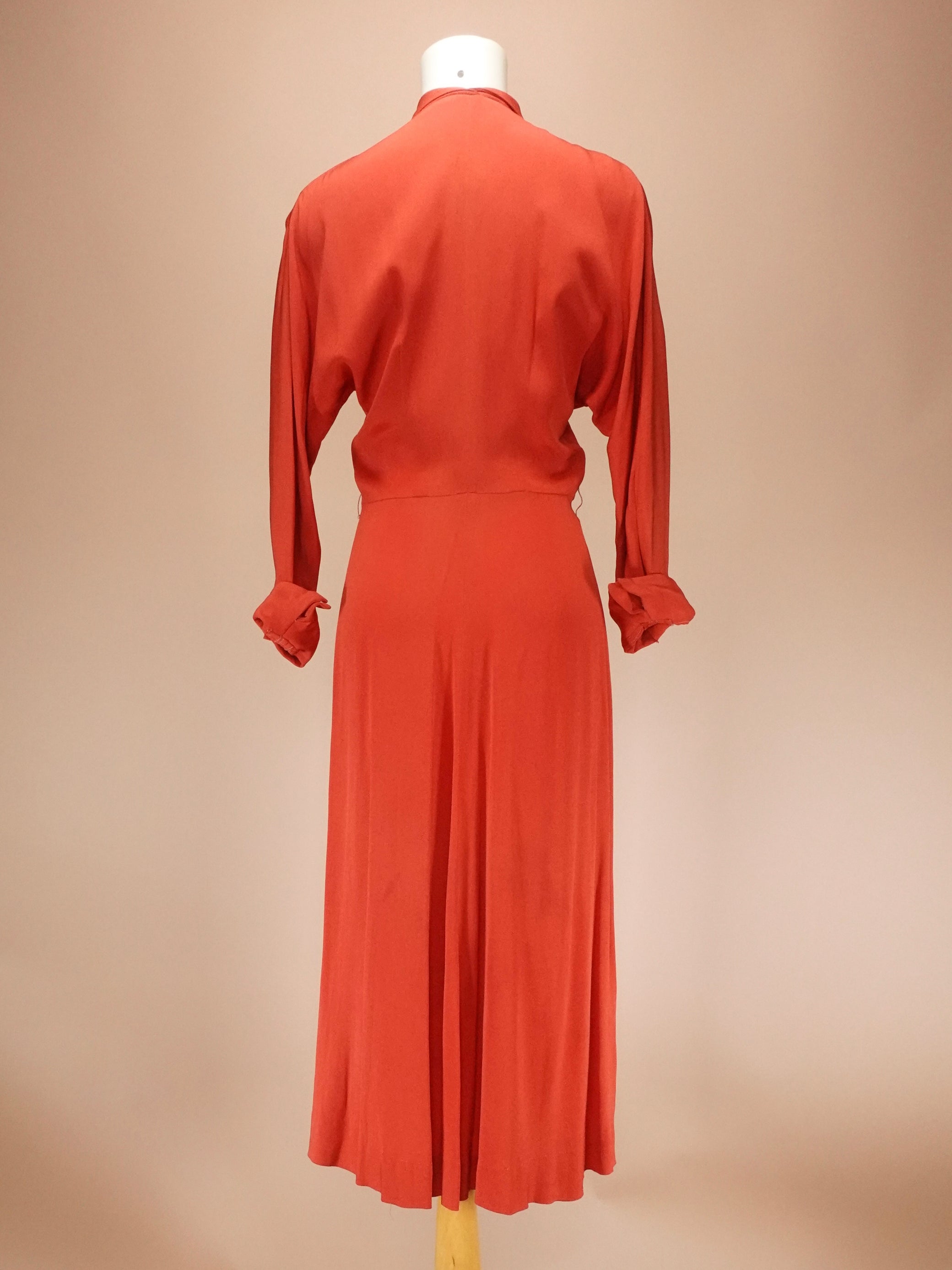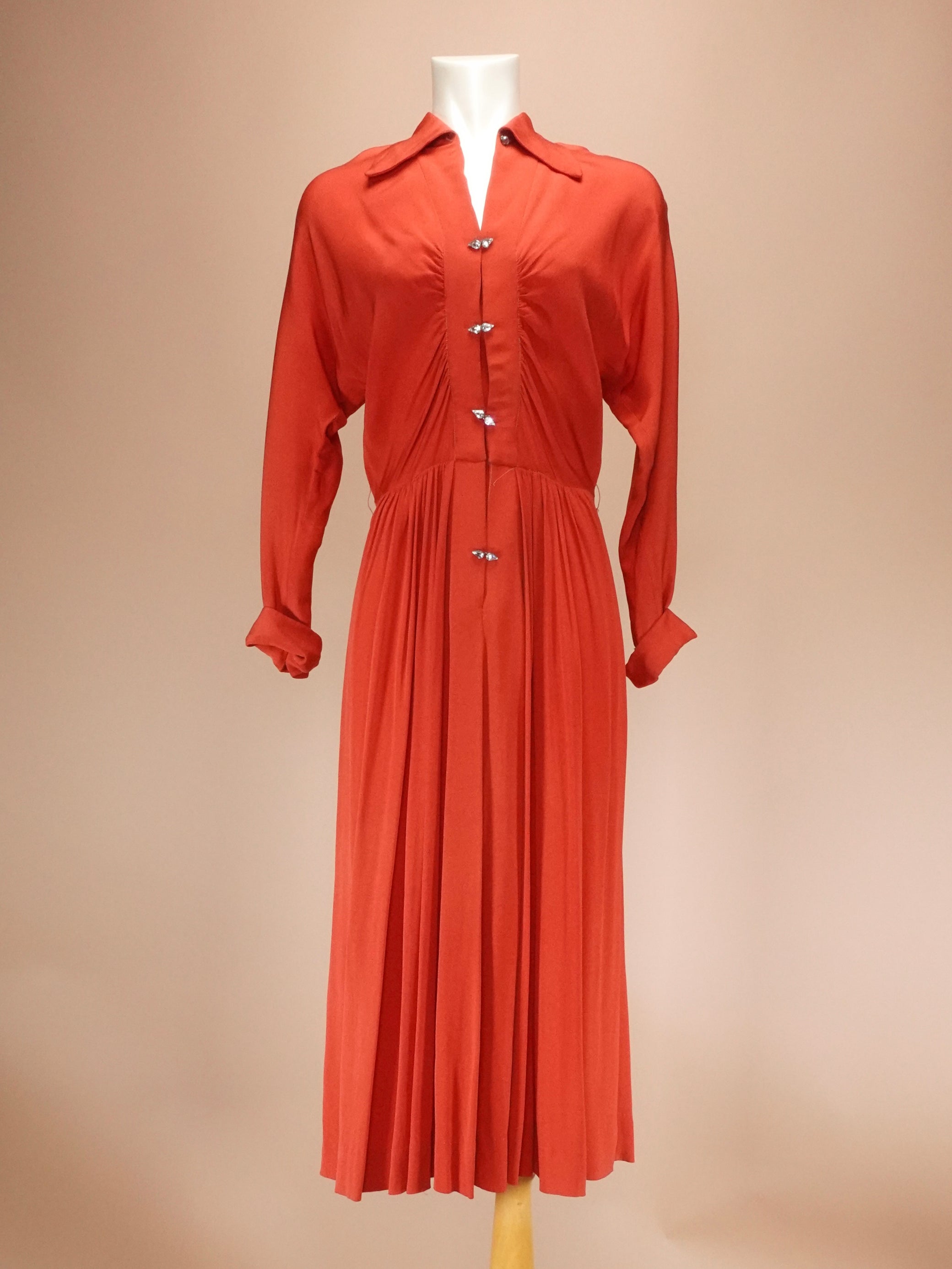 Vintage 1940s | Orange Day Dress w/ Rhinestone Closure