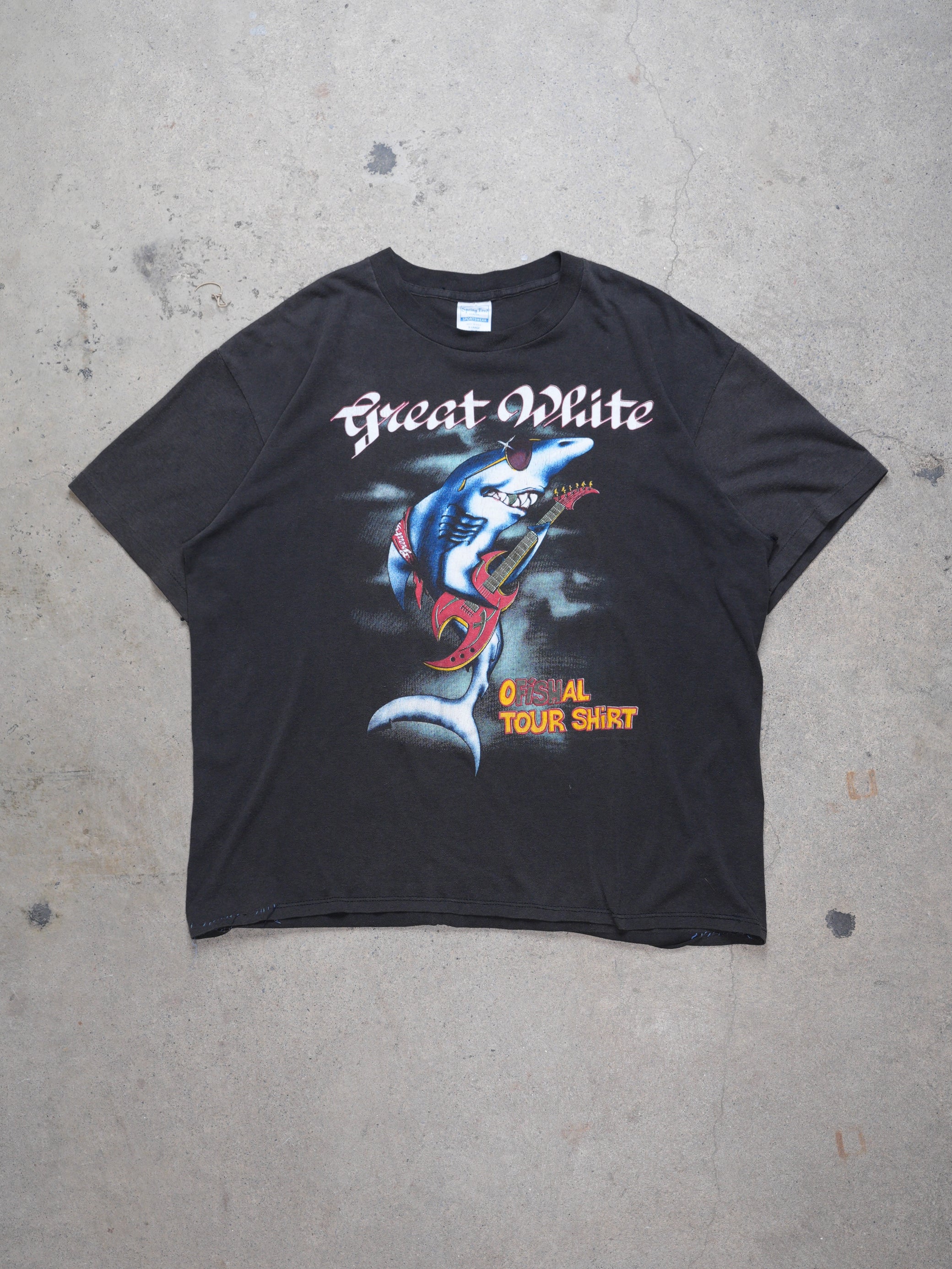 SPRING FORD Great White Band Tour T-Shirt from the 90s. Black with graphic design, size XL, made of cotton with a crew neckline. Casual and comfortable with short sleeves. Picture and text included.