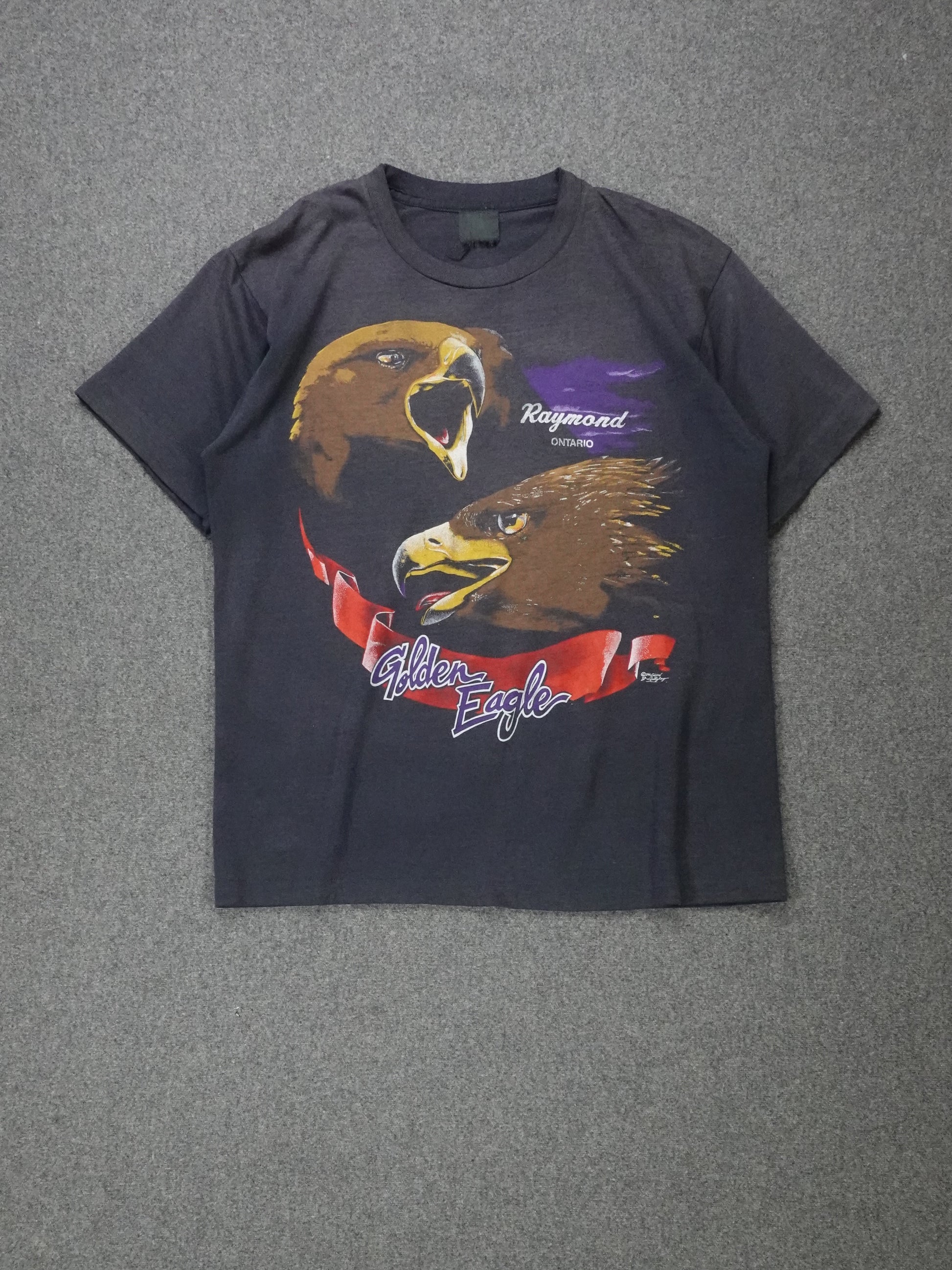 1980s - "Golden Eagle Raymon Ontario" 3D Emblem Style Biker T-Shirt